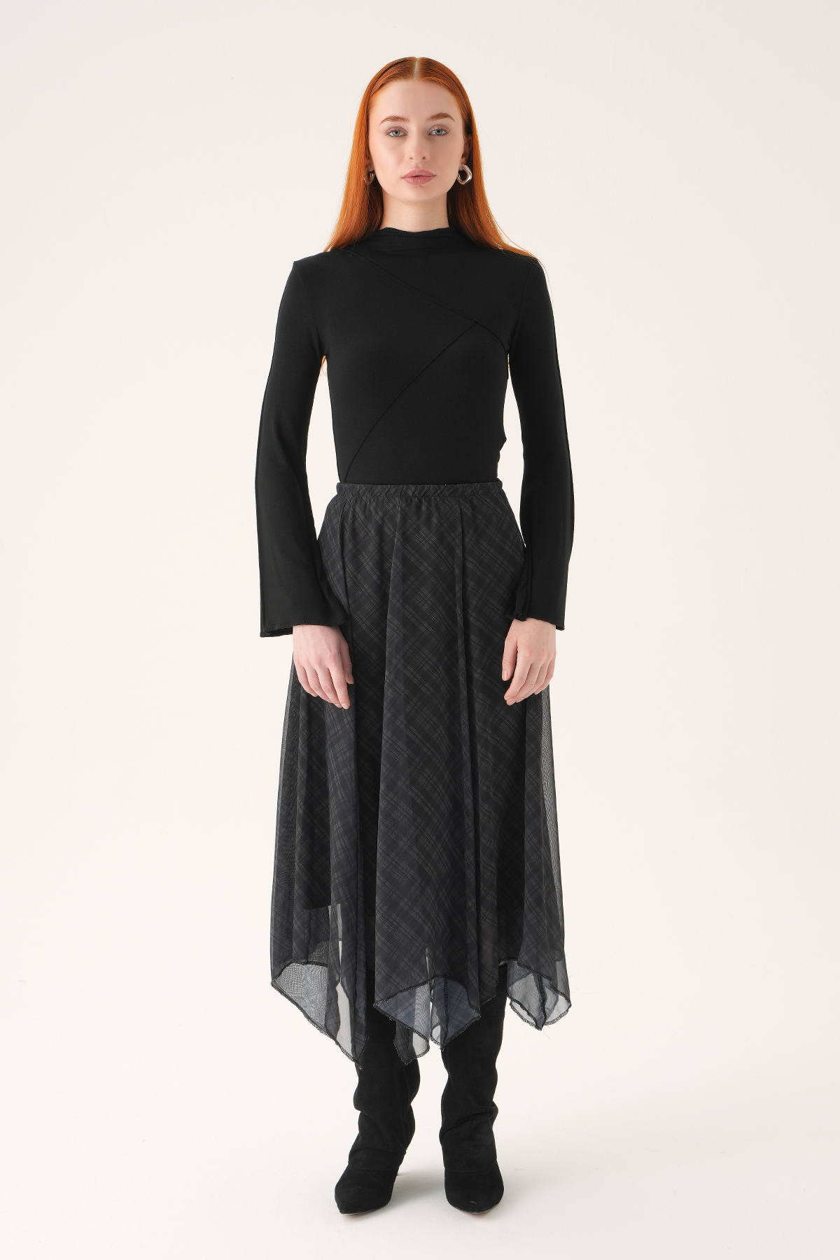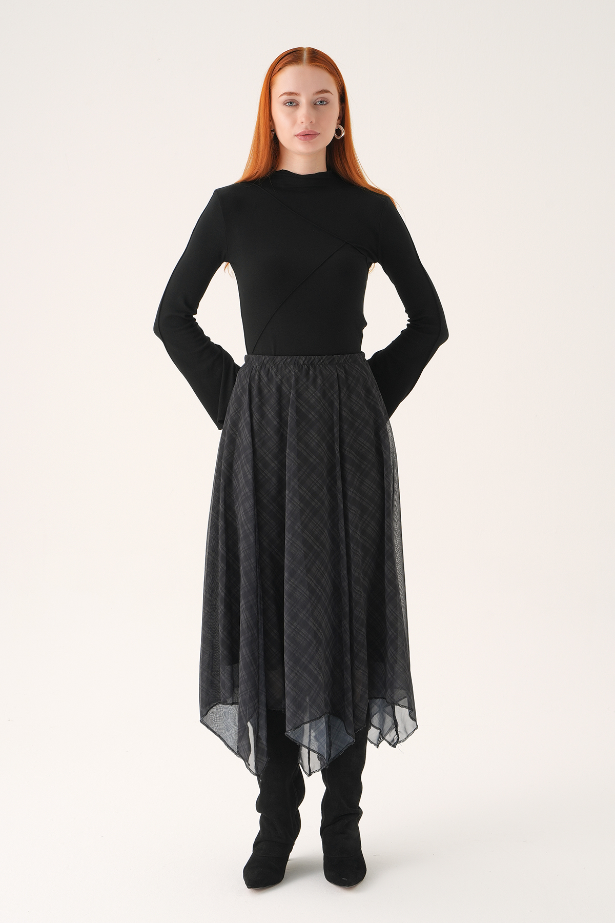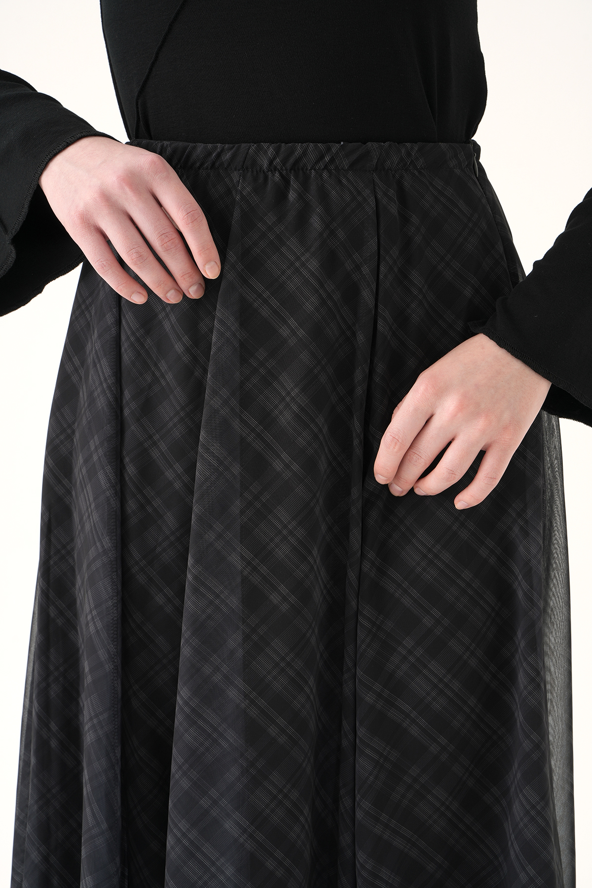 Siyah Asimetrik Şifon Etek 8459A