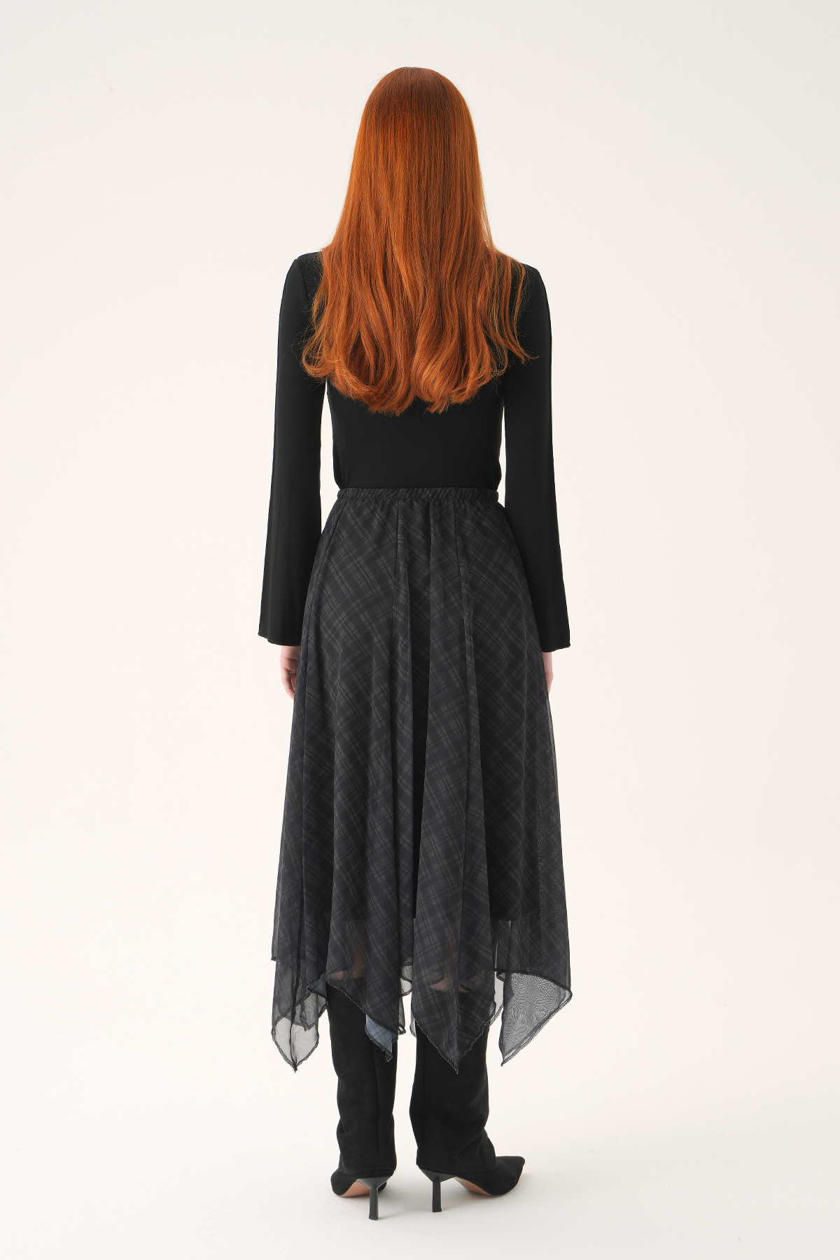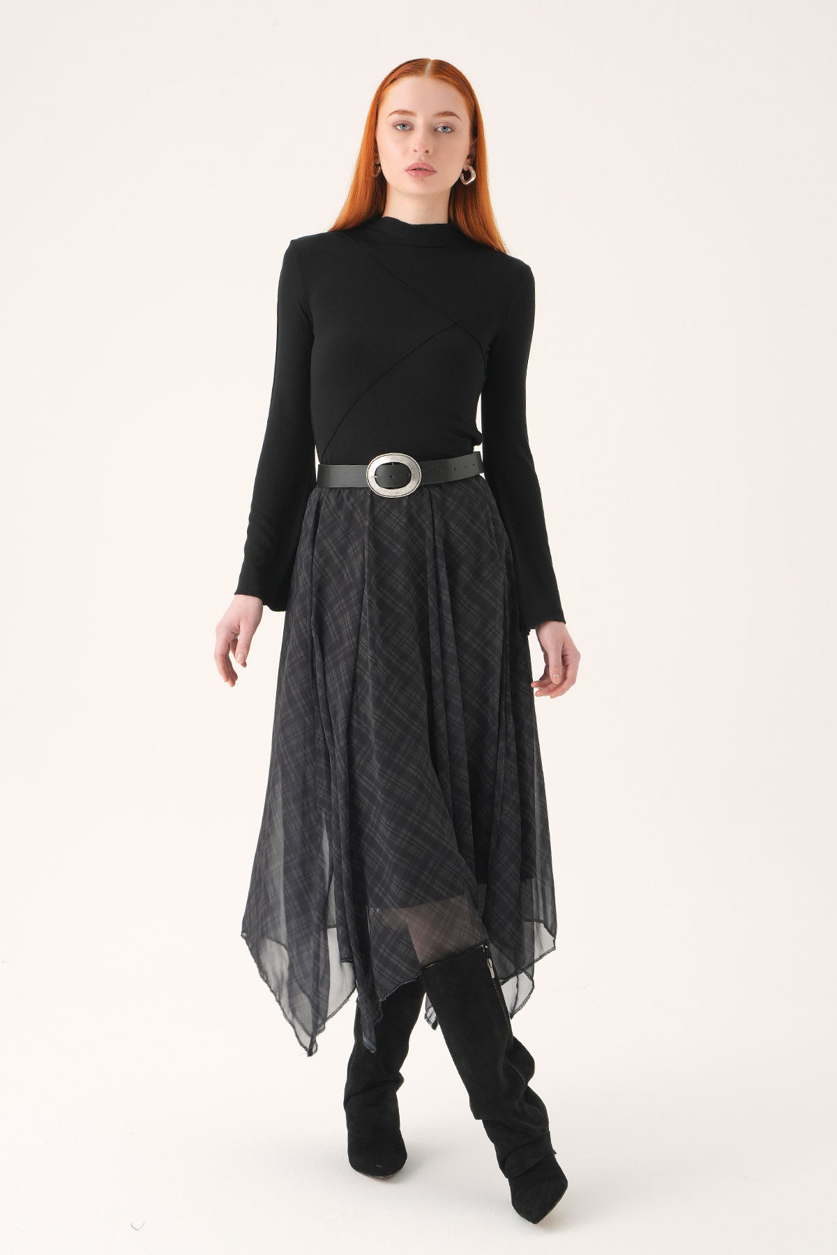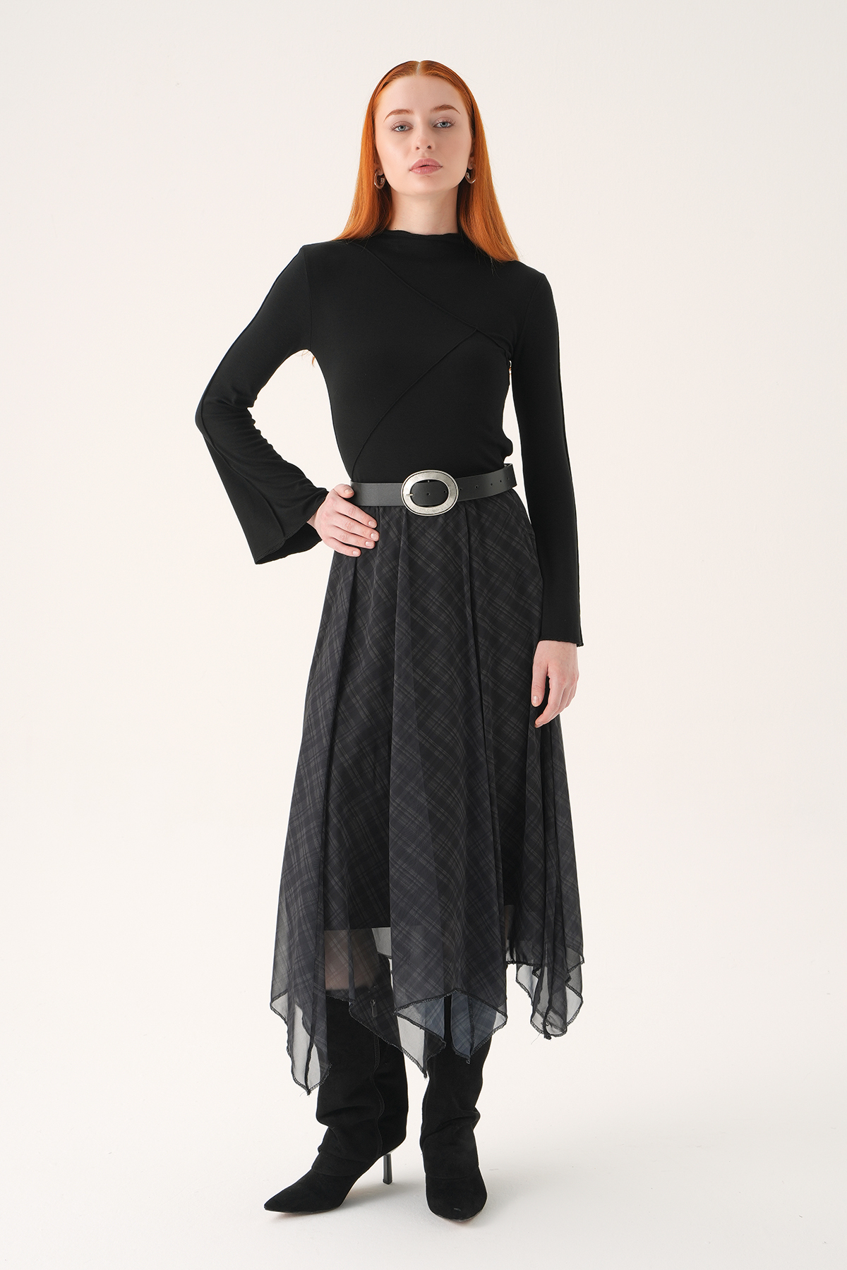 Siyah Asimetrik Şifon Etek 8459A