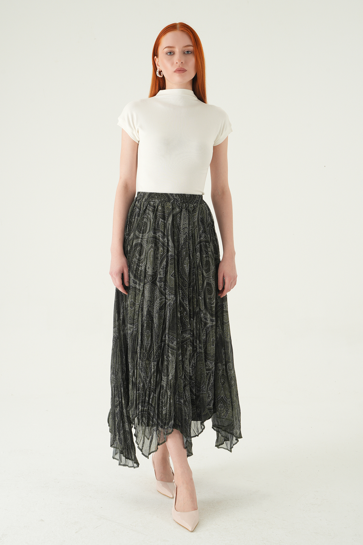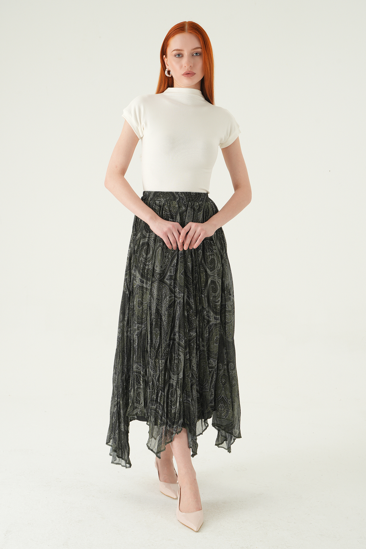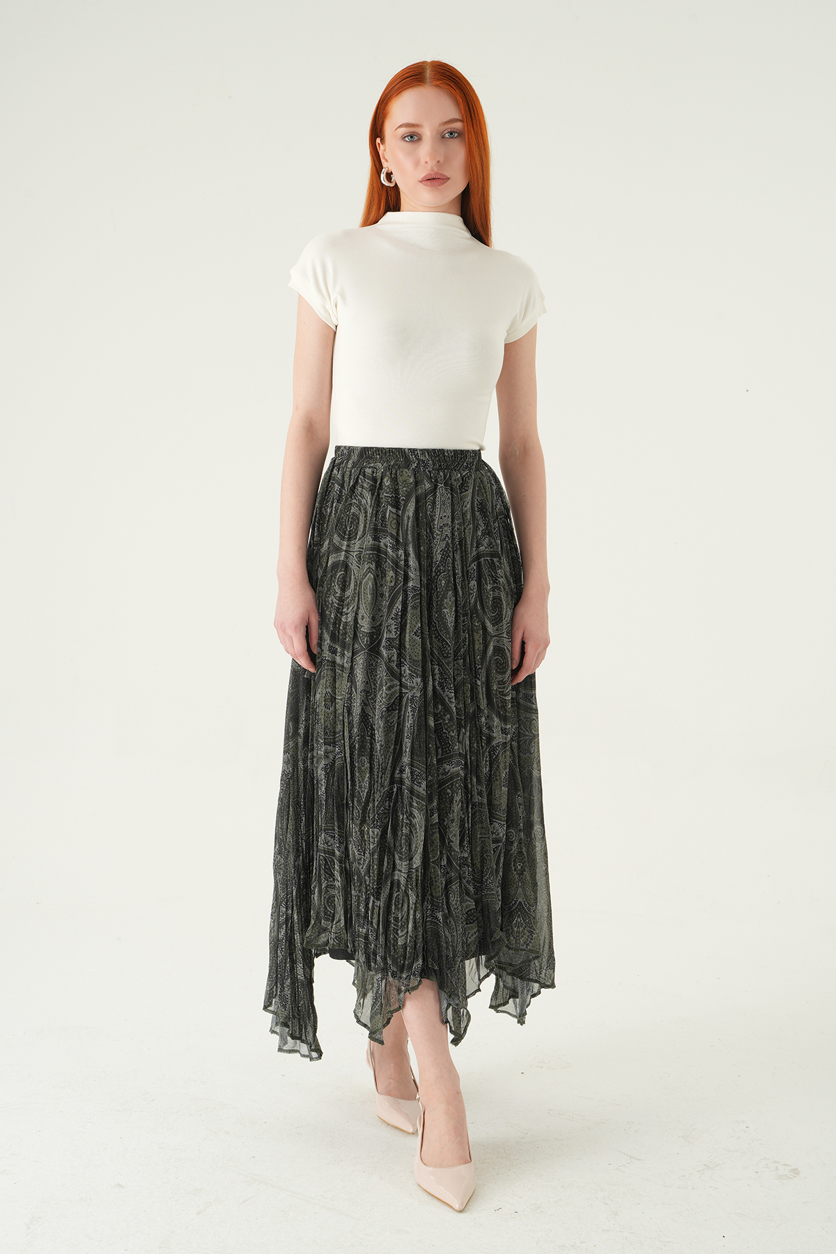 8461A Desenli Etek Haki