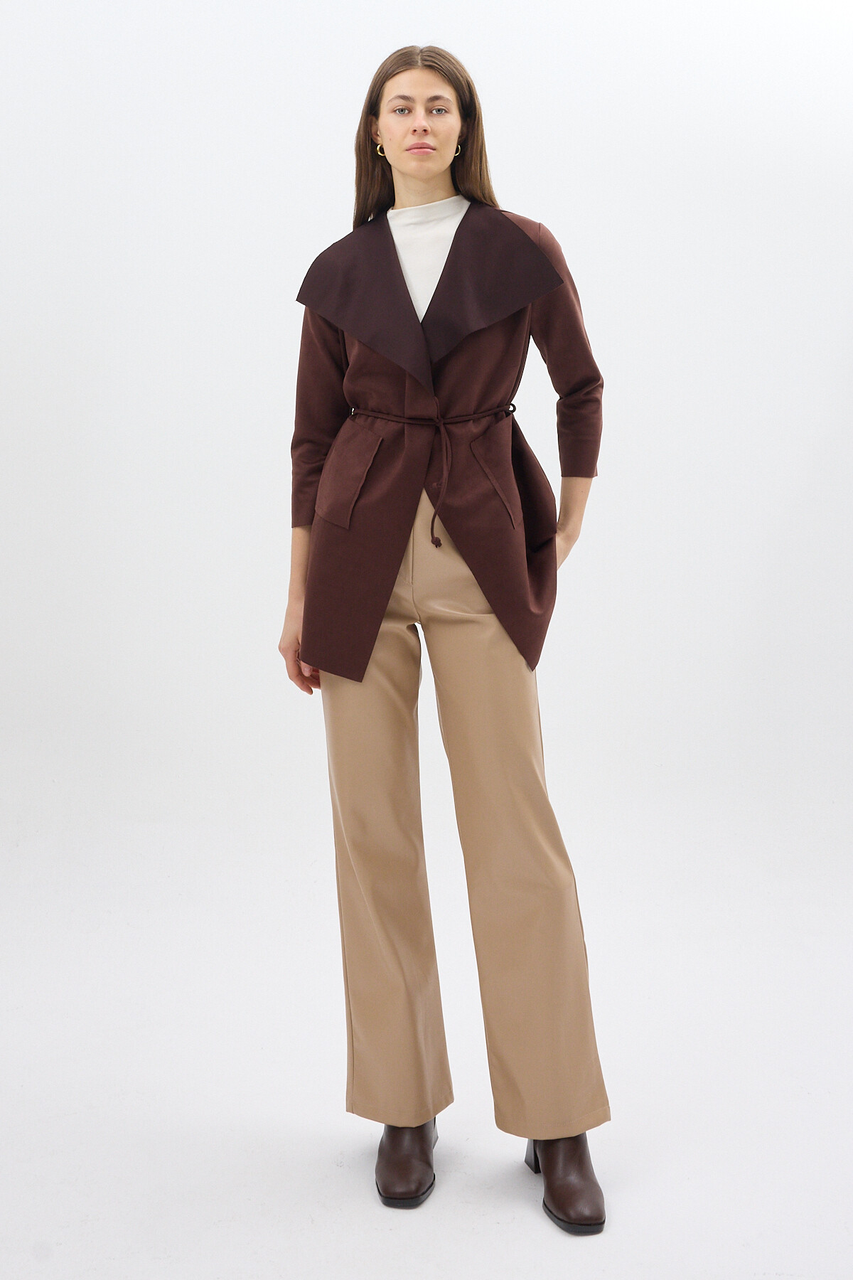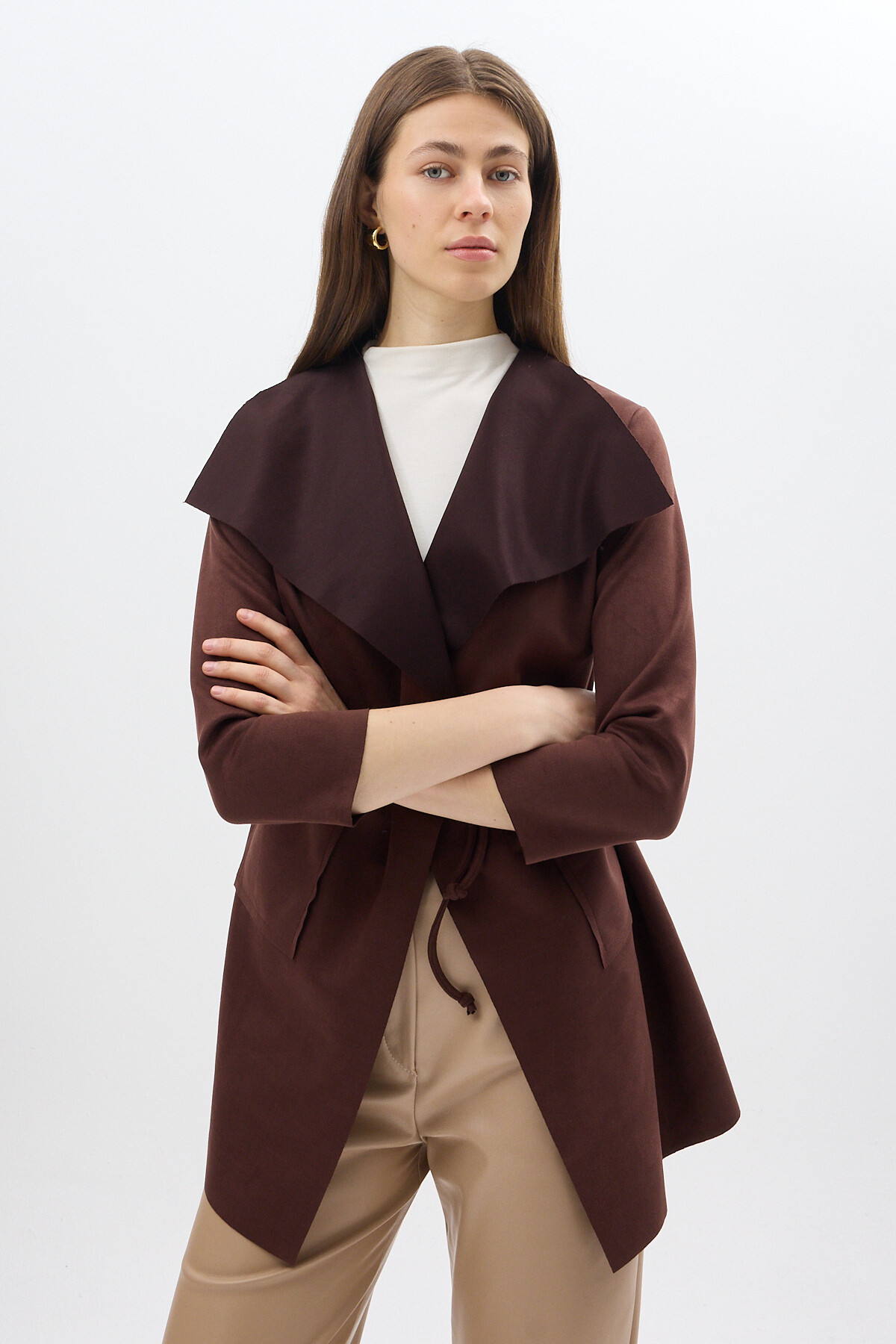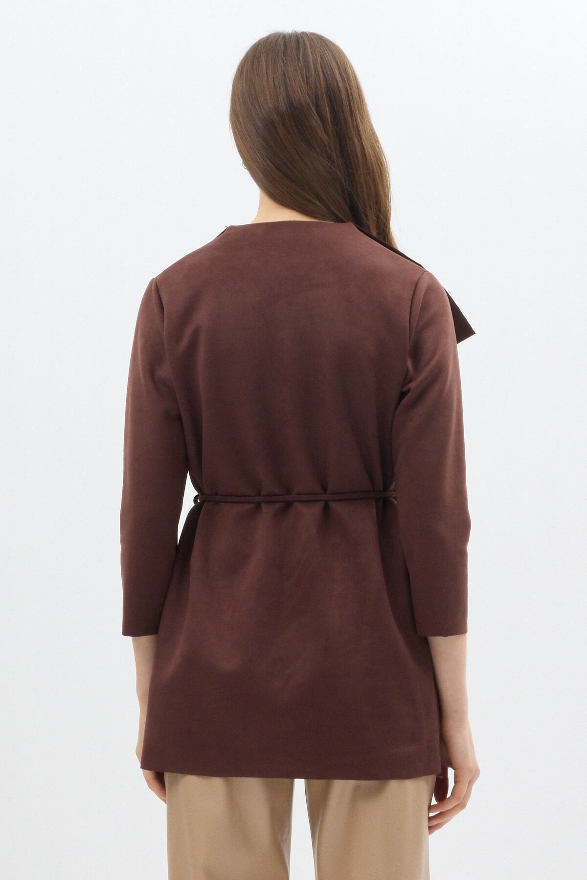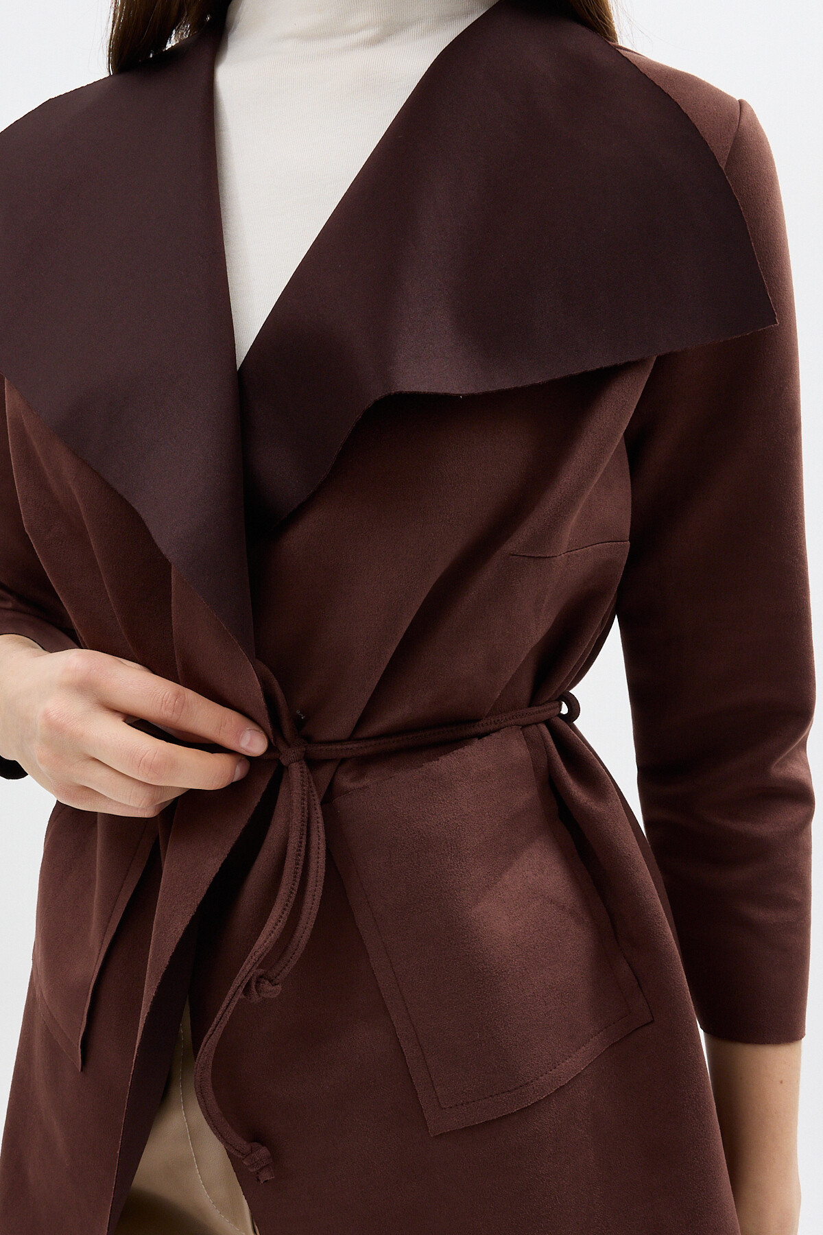 Kahverengi Bel Bağlamalı Şal Yaka Kadın Kaban 8472