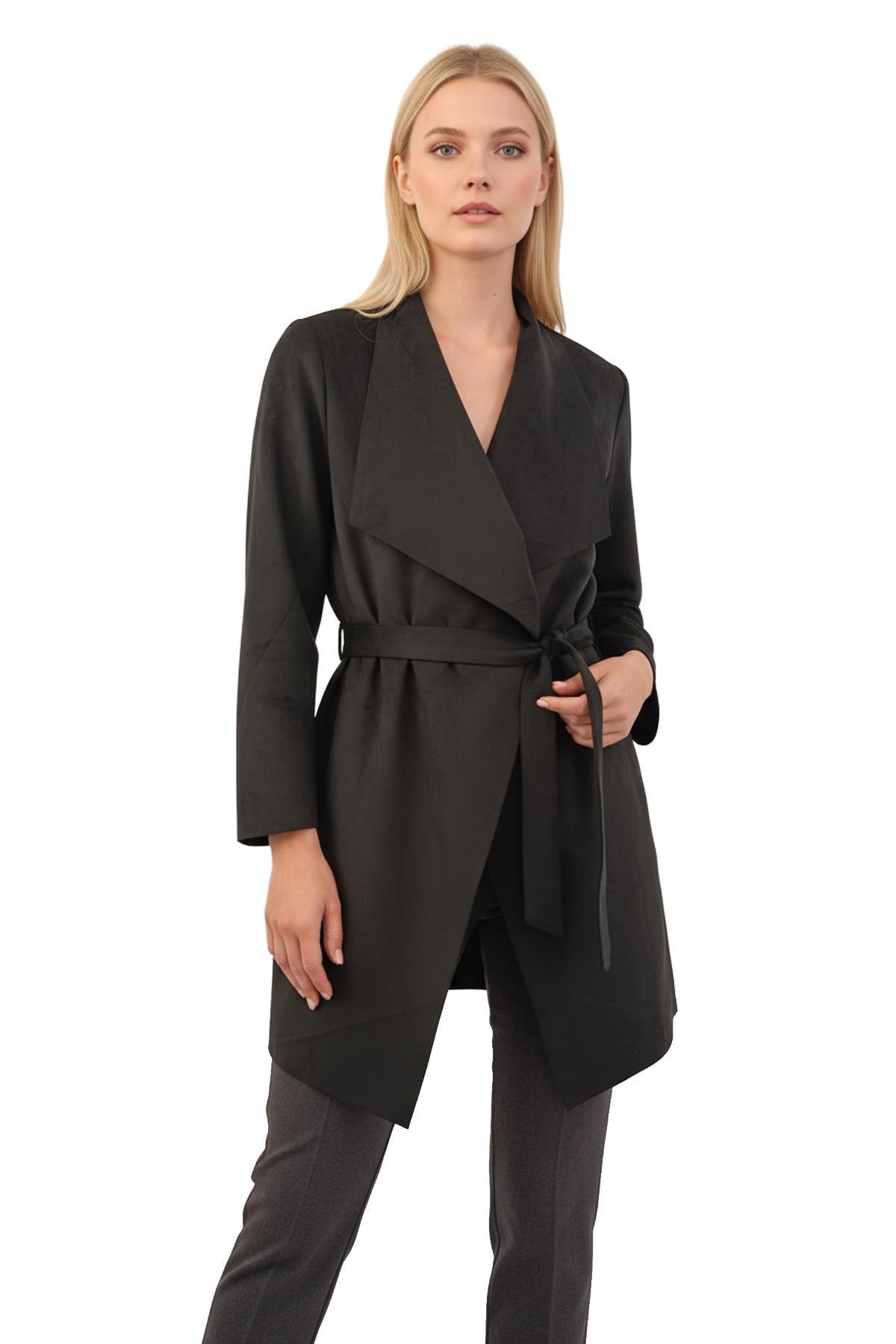 7242A Bel Bağlamalı Uzun Astarlı Kaban Siyah