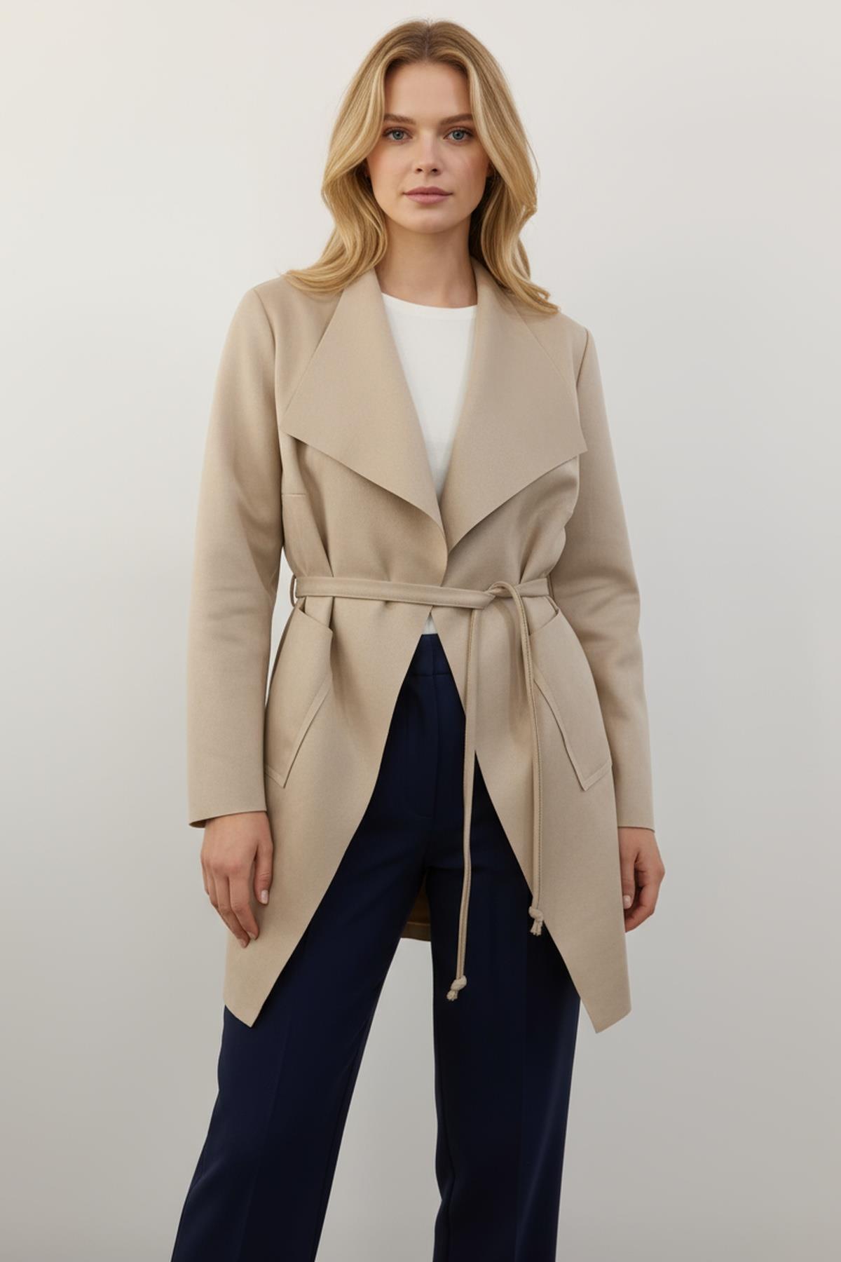 8471 Çıt Çıtlı Uzun Kol Kaban Ekru