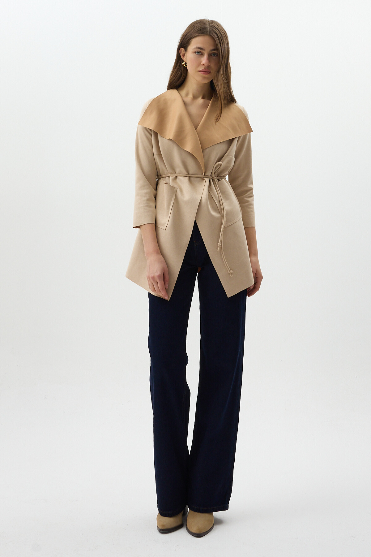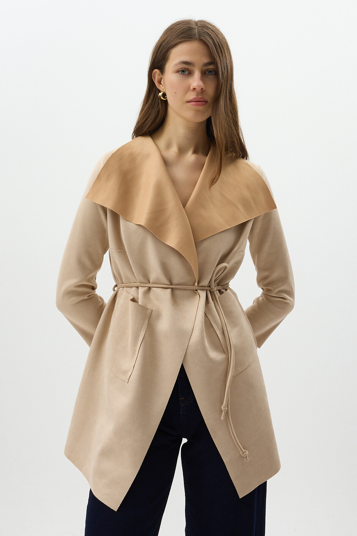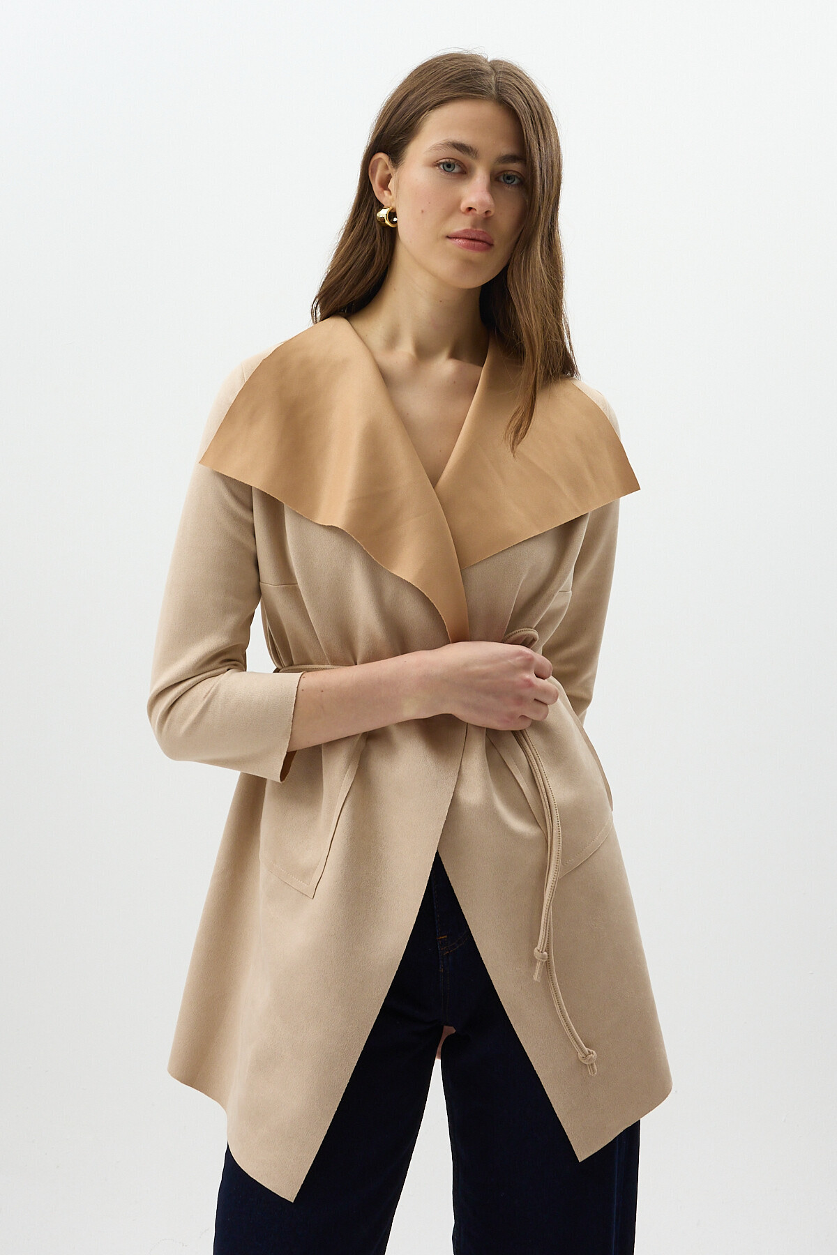 Taş Bel Bağlamalı Şal Yaka Kadın Kaban 8472