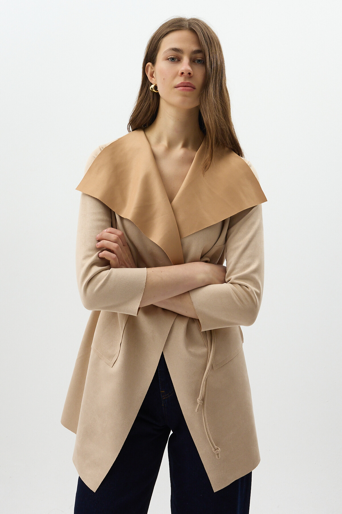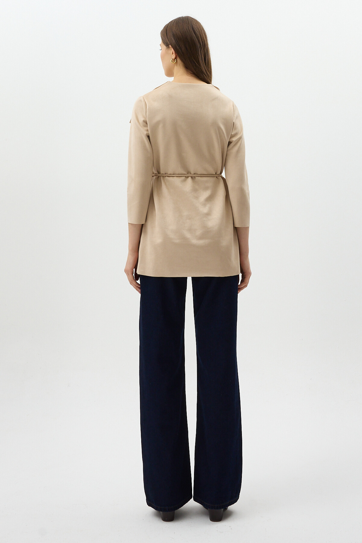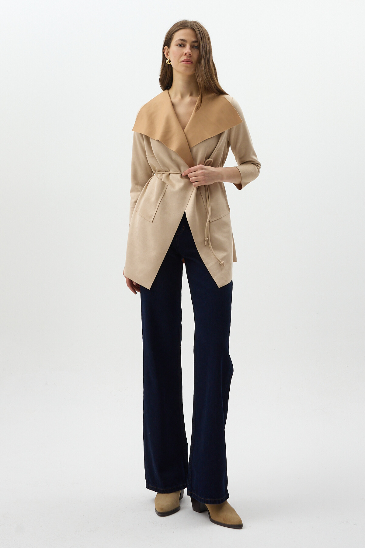 Taş Bel Bağlamalı Şal Yaka Kadın Kaban 8472
