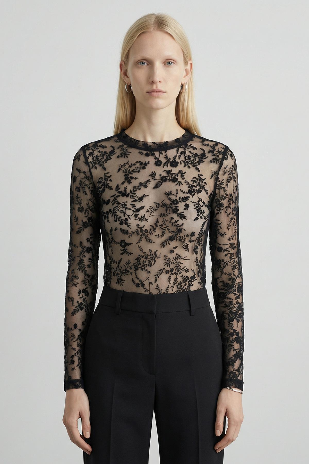 8473A Uzun Kol Flok Bluz Siyah