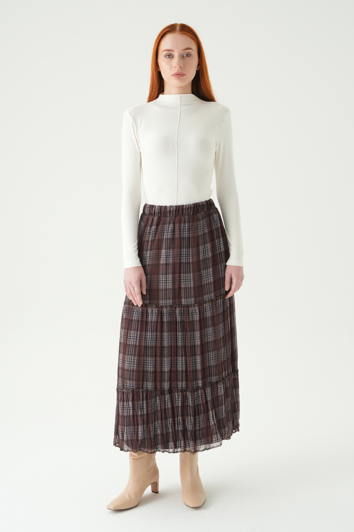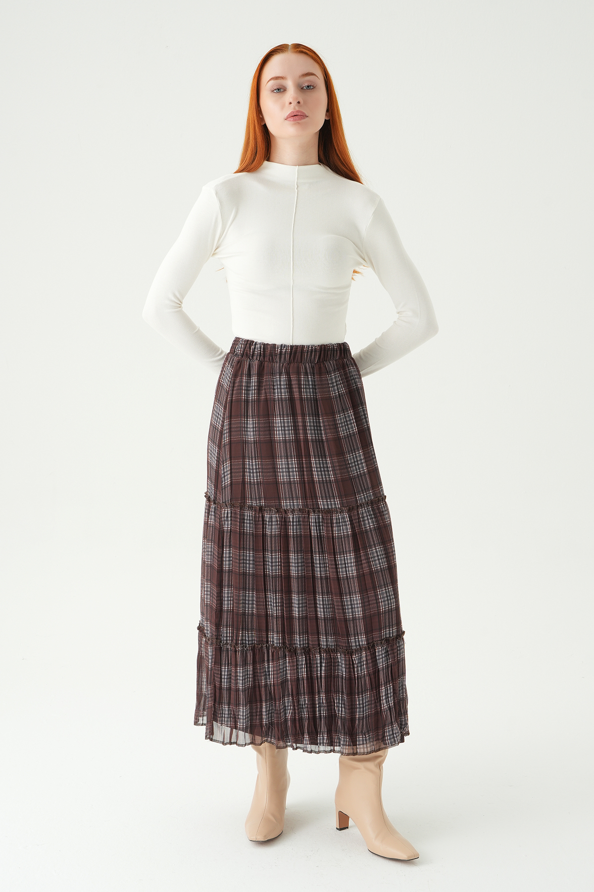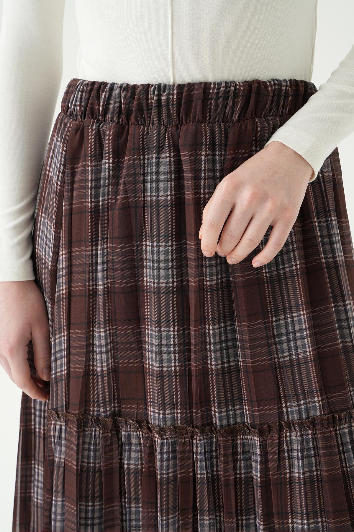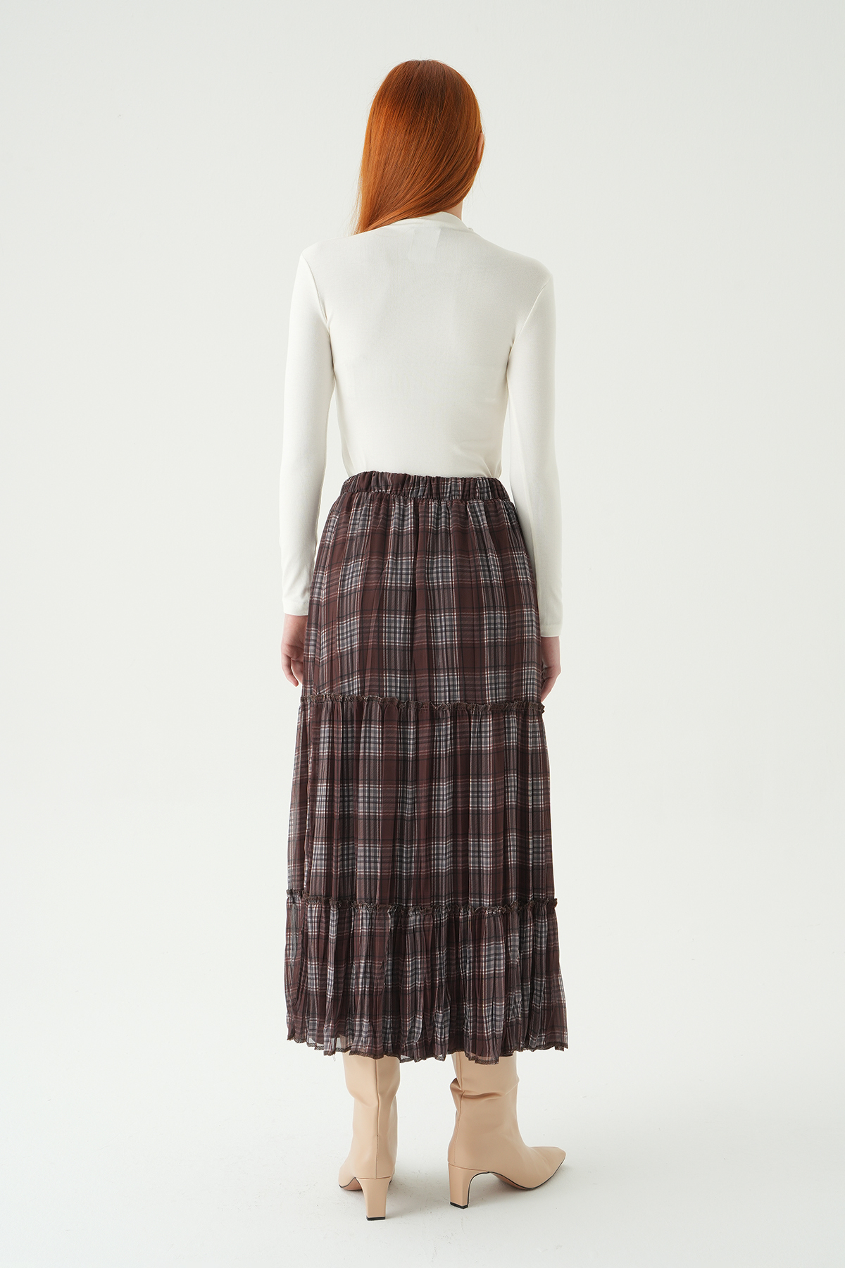 Acı Kahve Desenli Kemerli Etek 1344 - RAYS