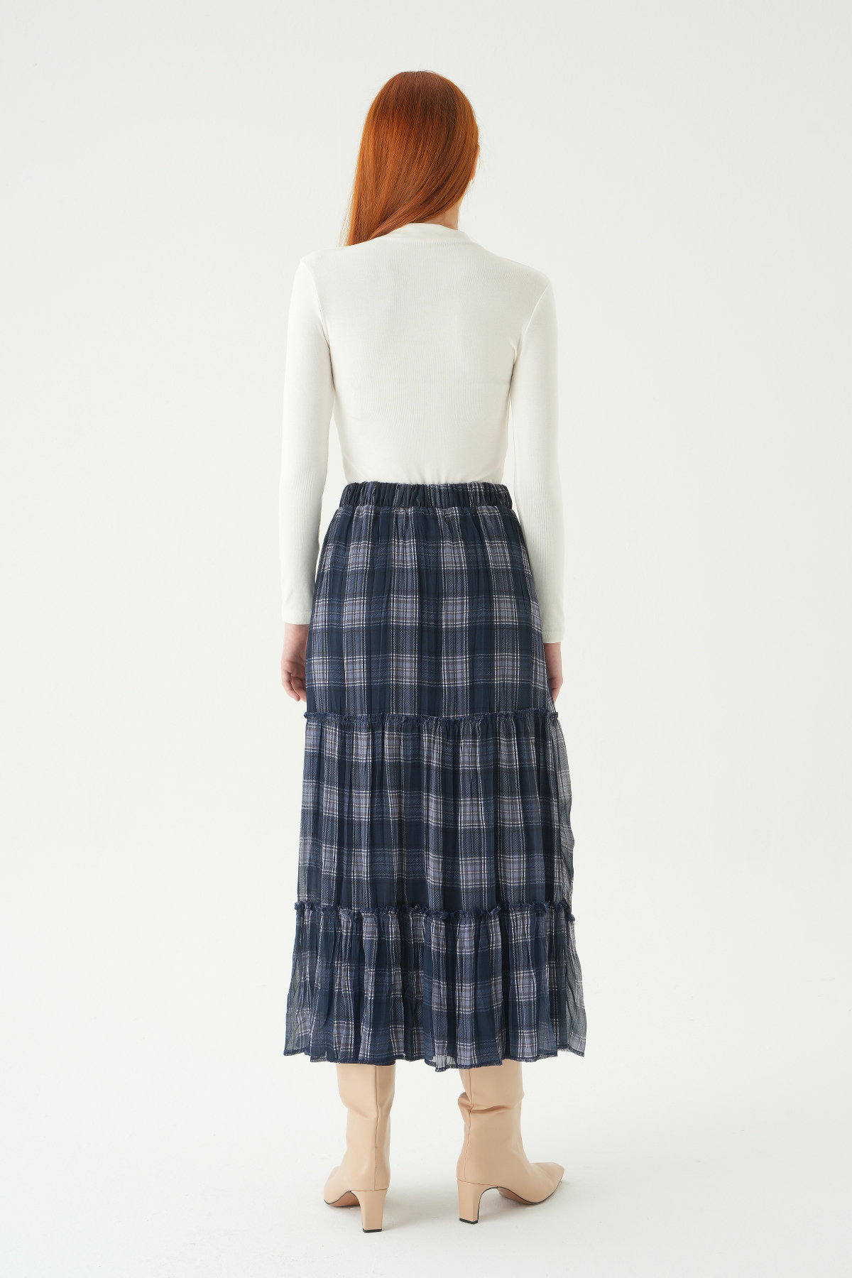 8483A Bel Lastikli Desenli Etek