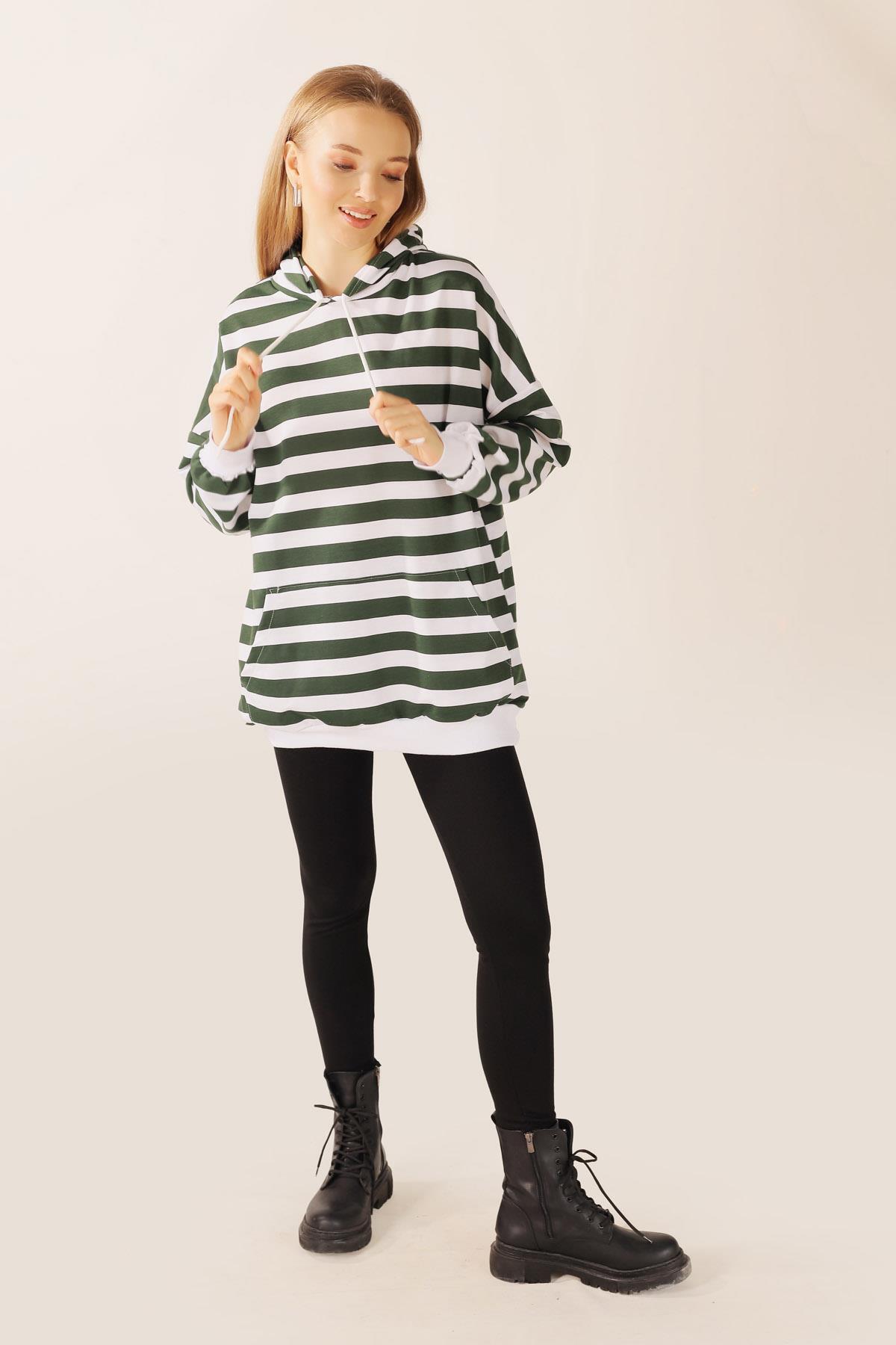 Nefti Kapüşonlu Çizgili Sweat 1770