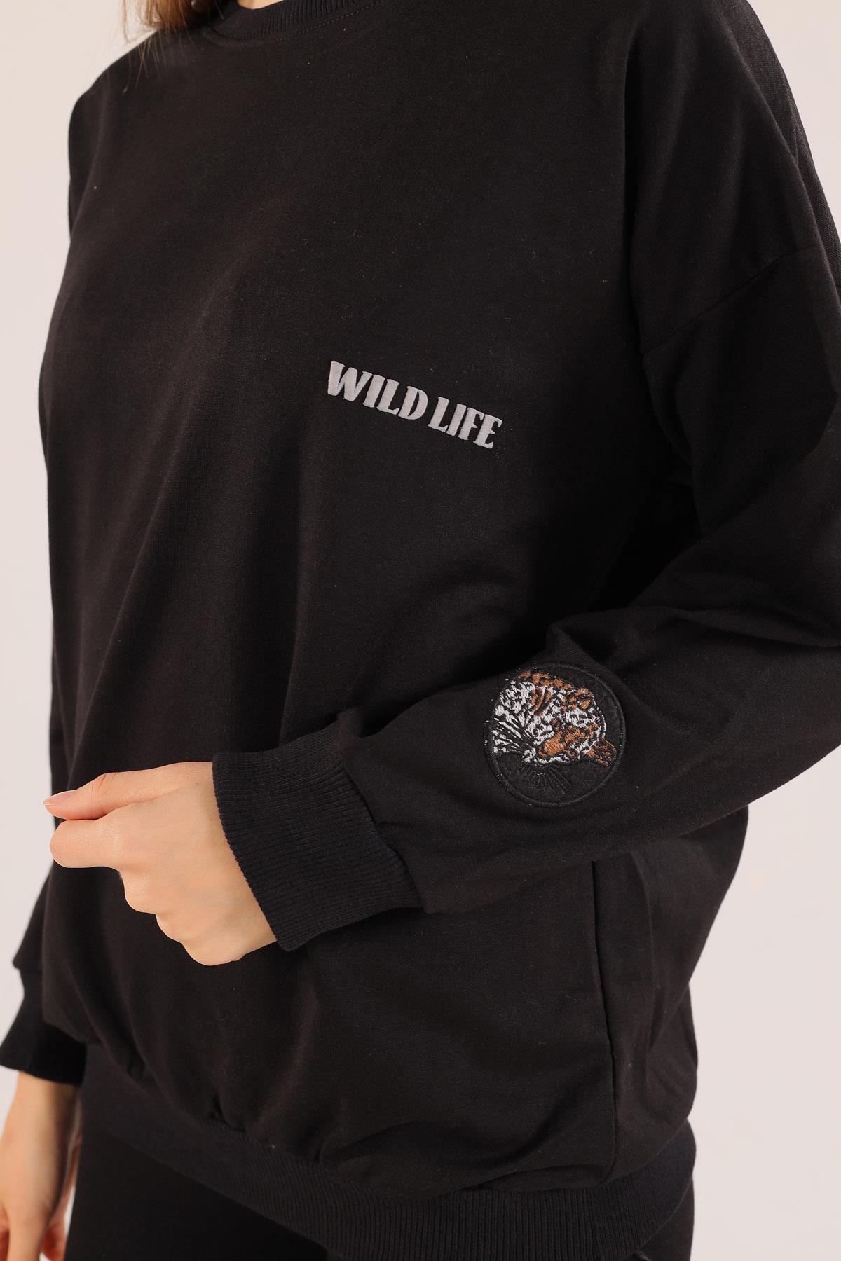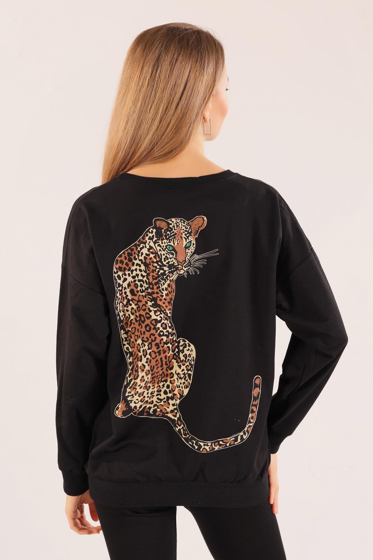 Siyah Arkası Kaplan Baskı Sweat 8632