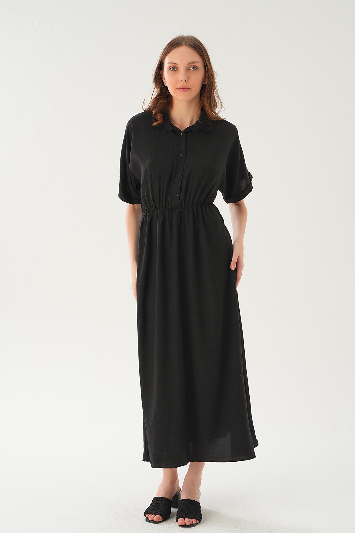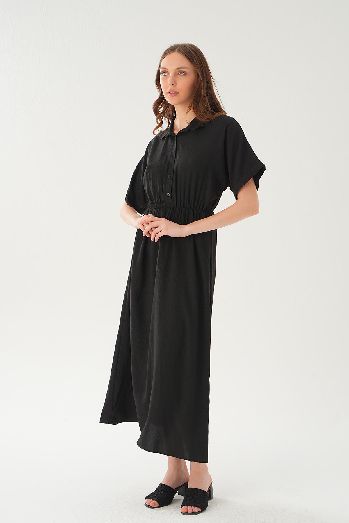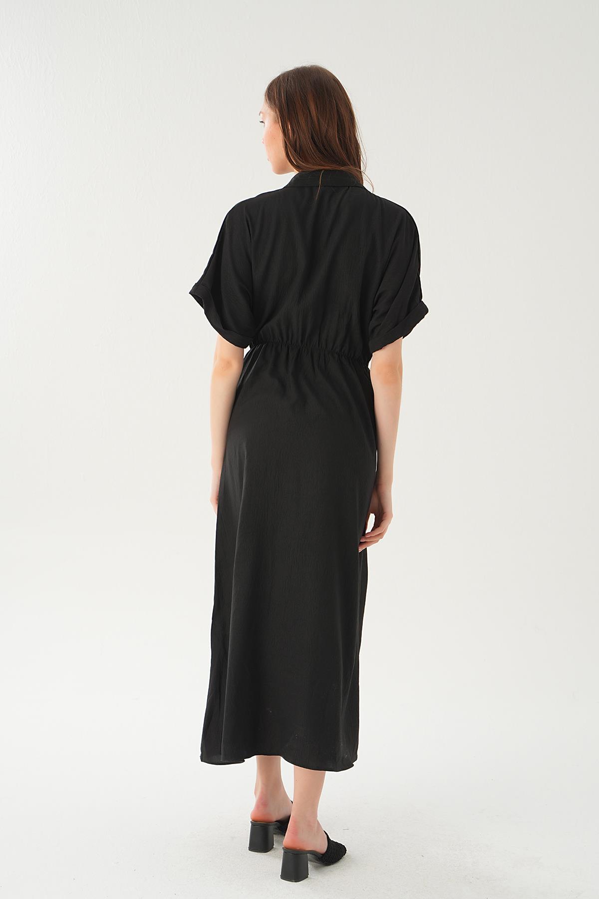 Siyah Vatkalı Bel Bağlama Elbise 261622 - RAYS