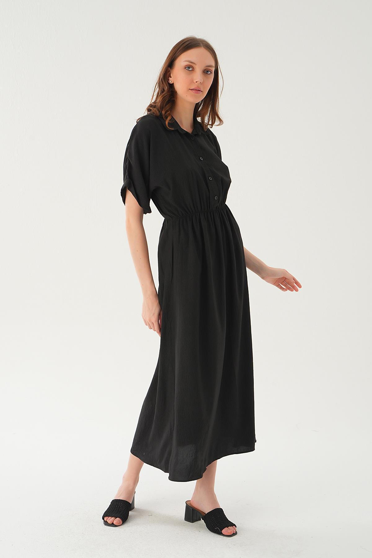 Siyah Vatkalı Omuz Büzgülü Elbise 252681 - RAYS