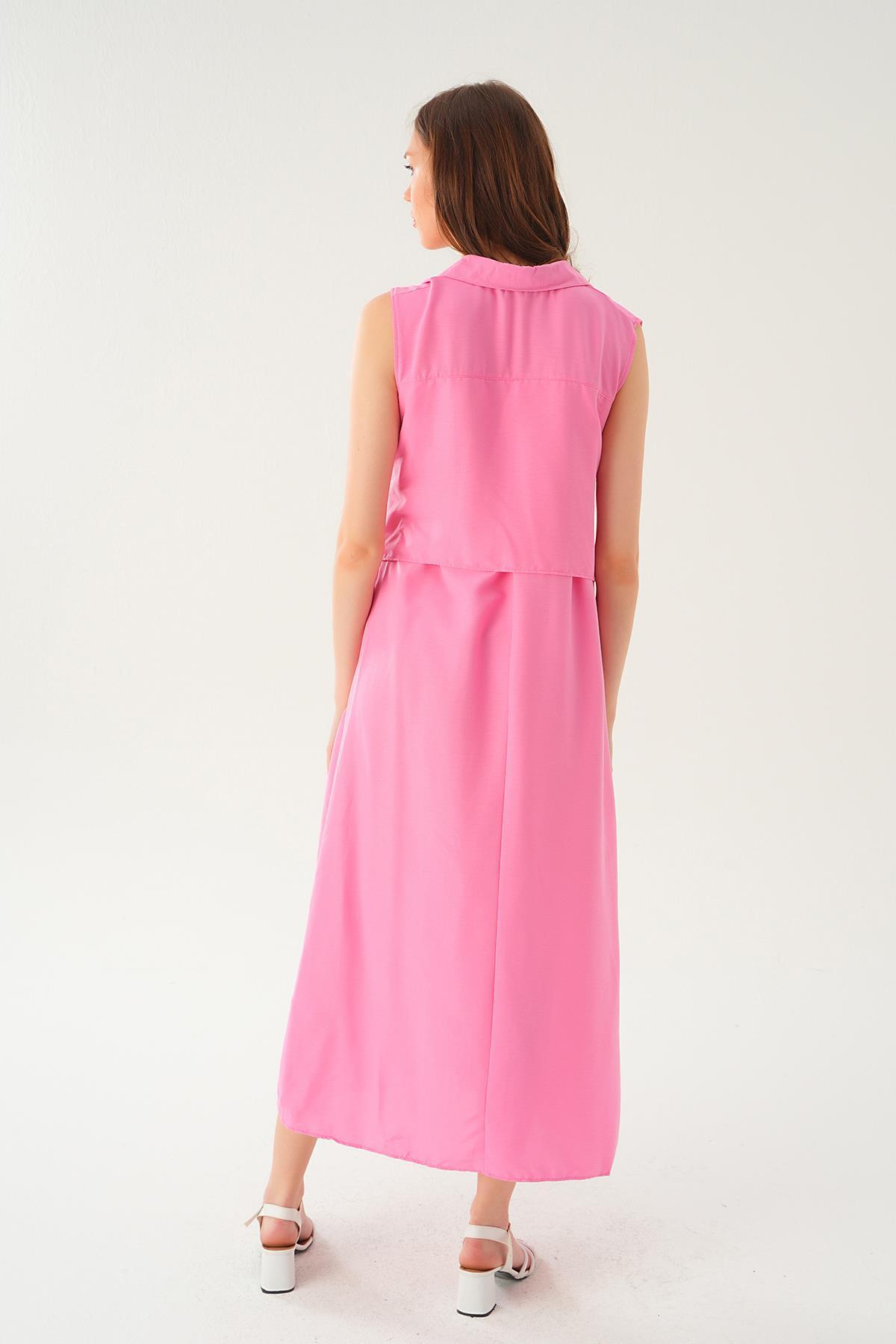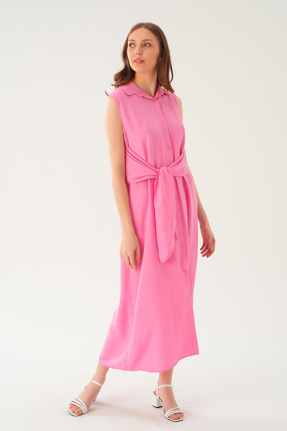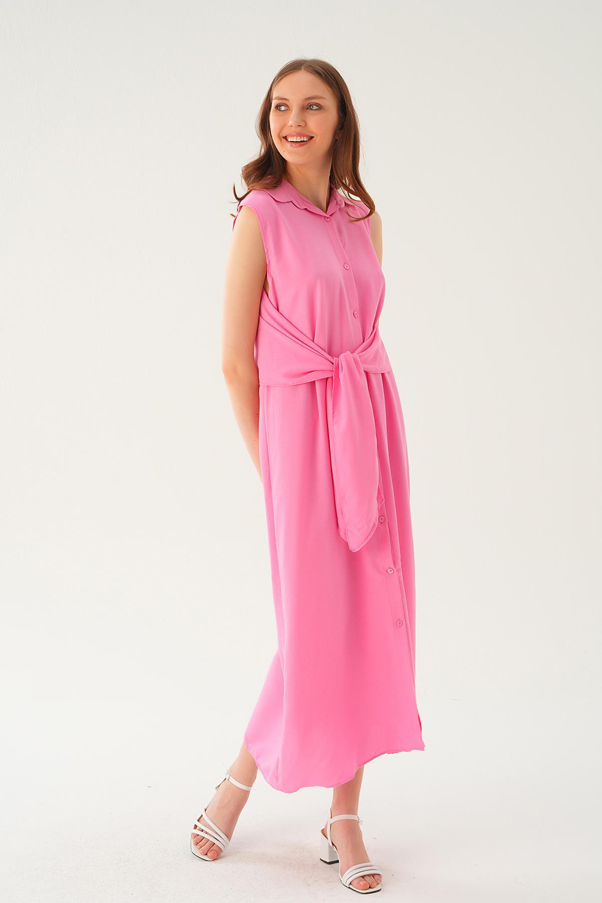 Pembe Bağlama Detay Elbise 8667