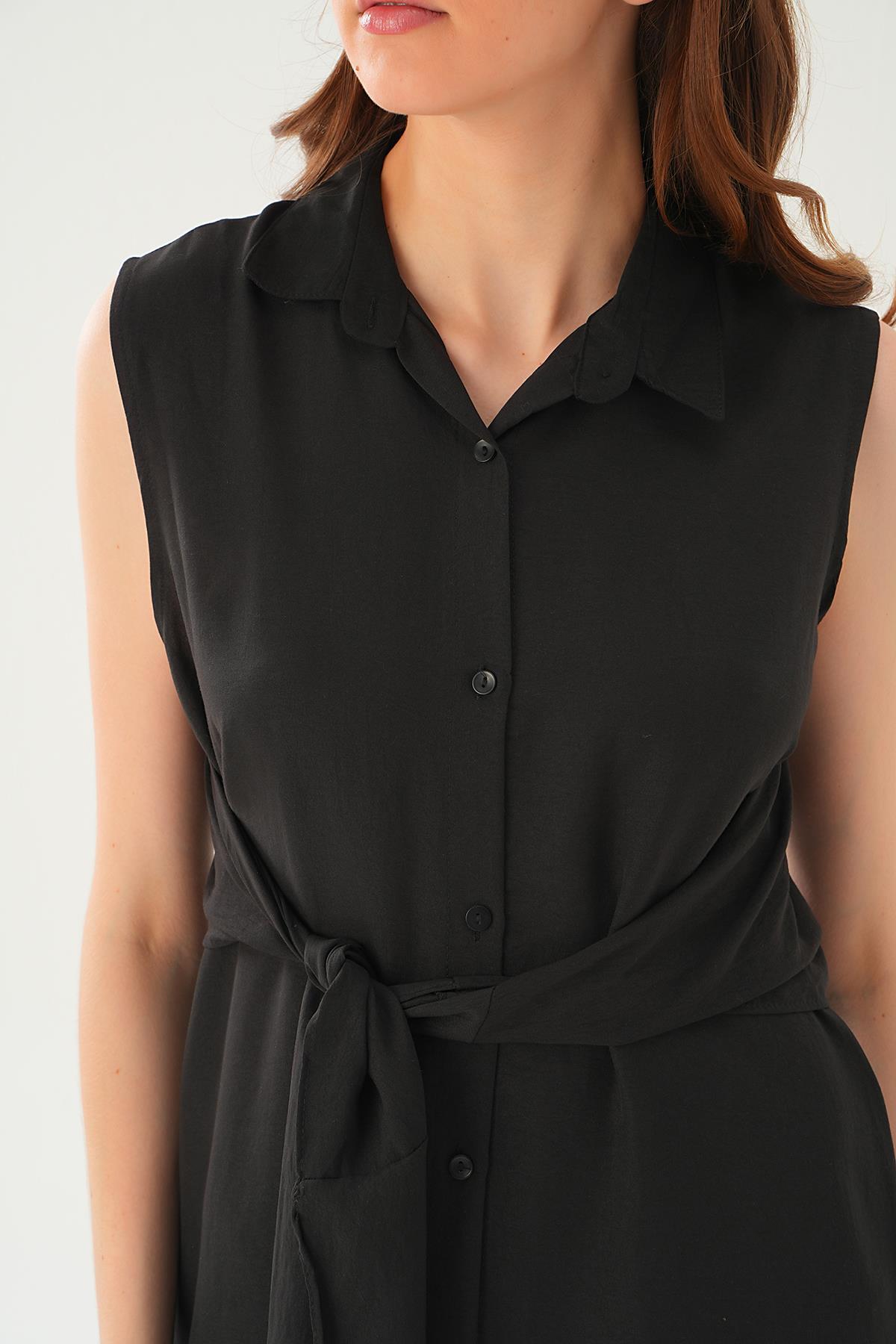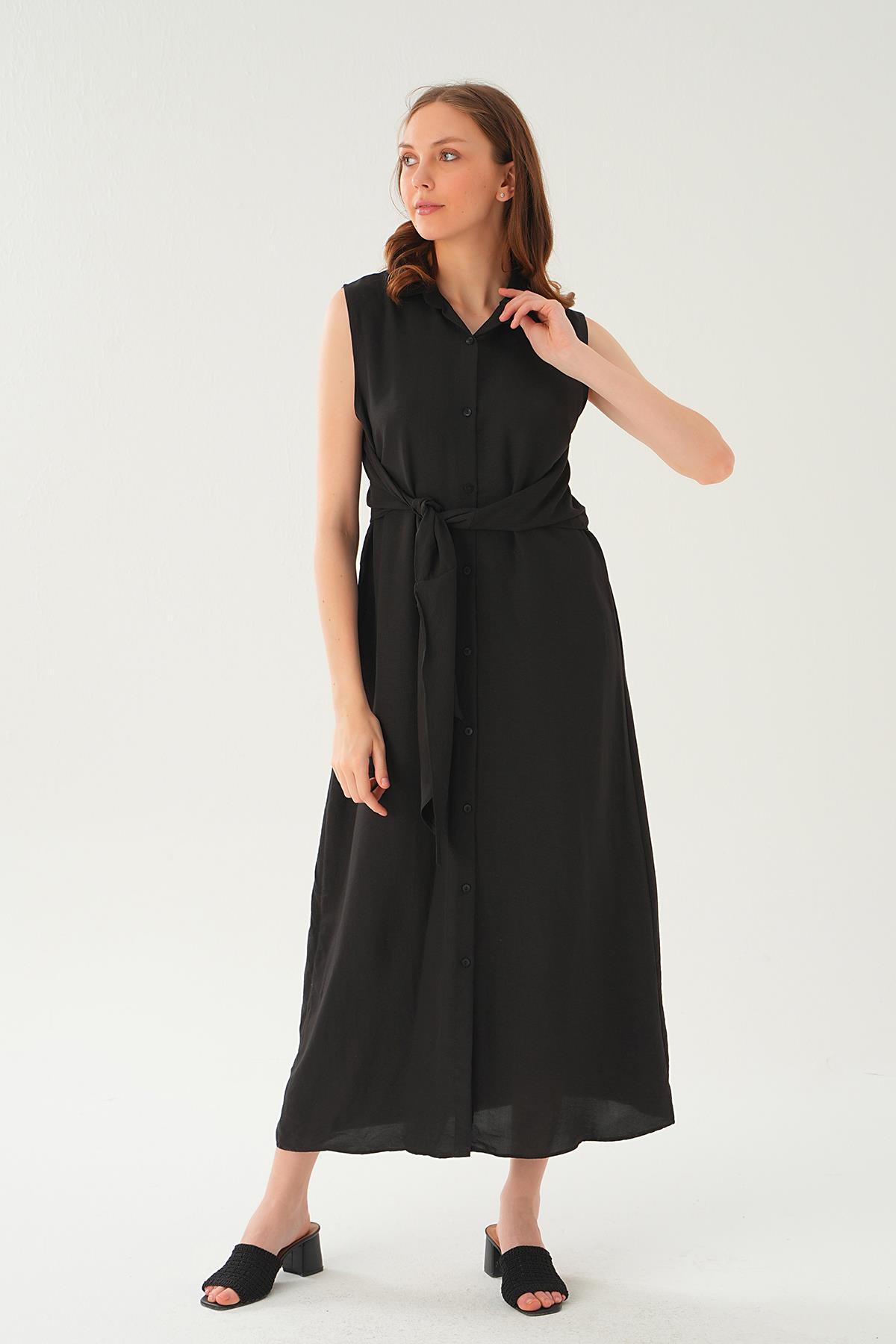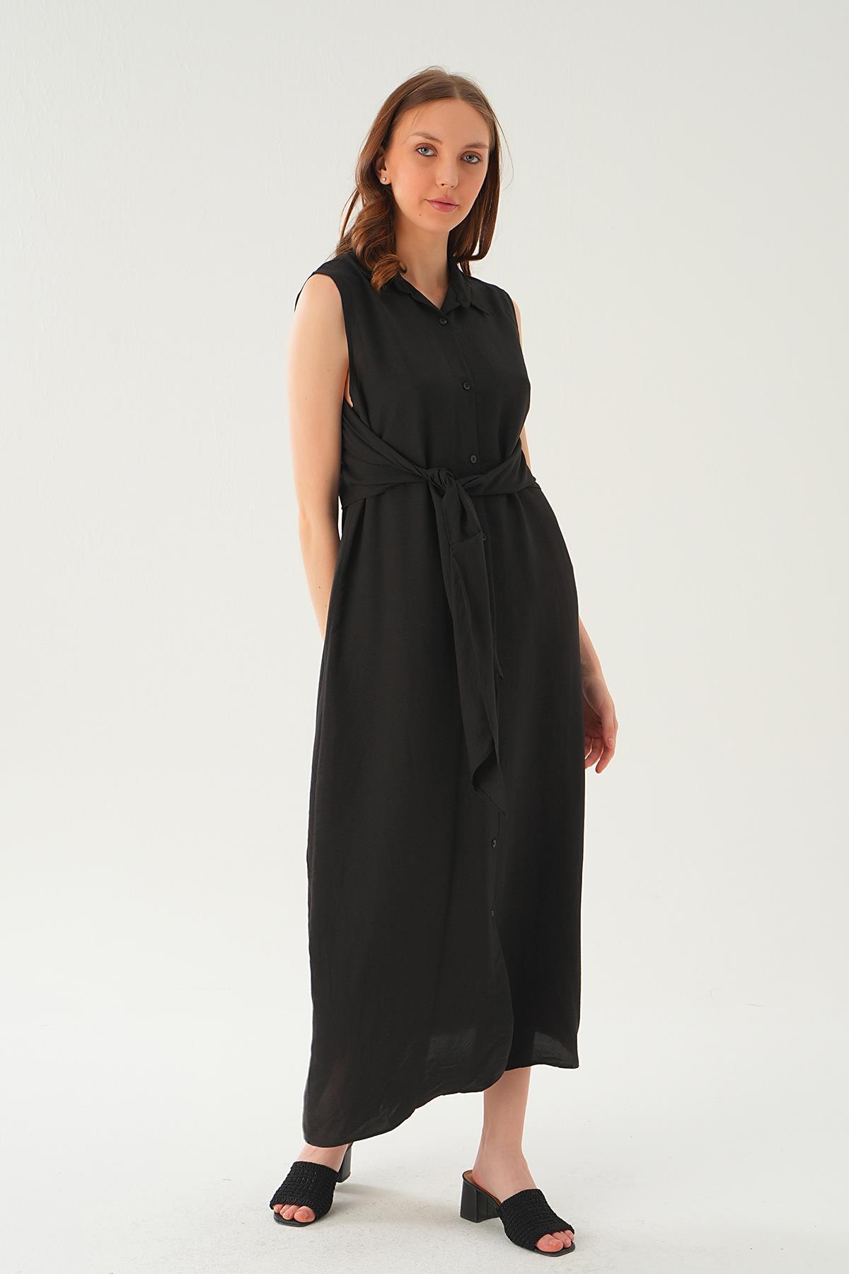 8667 Bağlama Detay Elbise Siyah