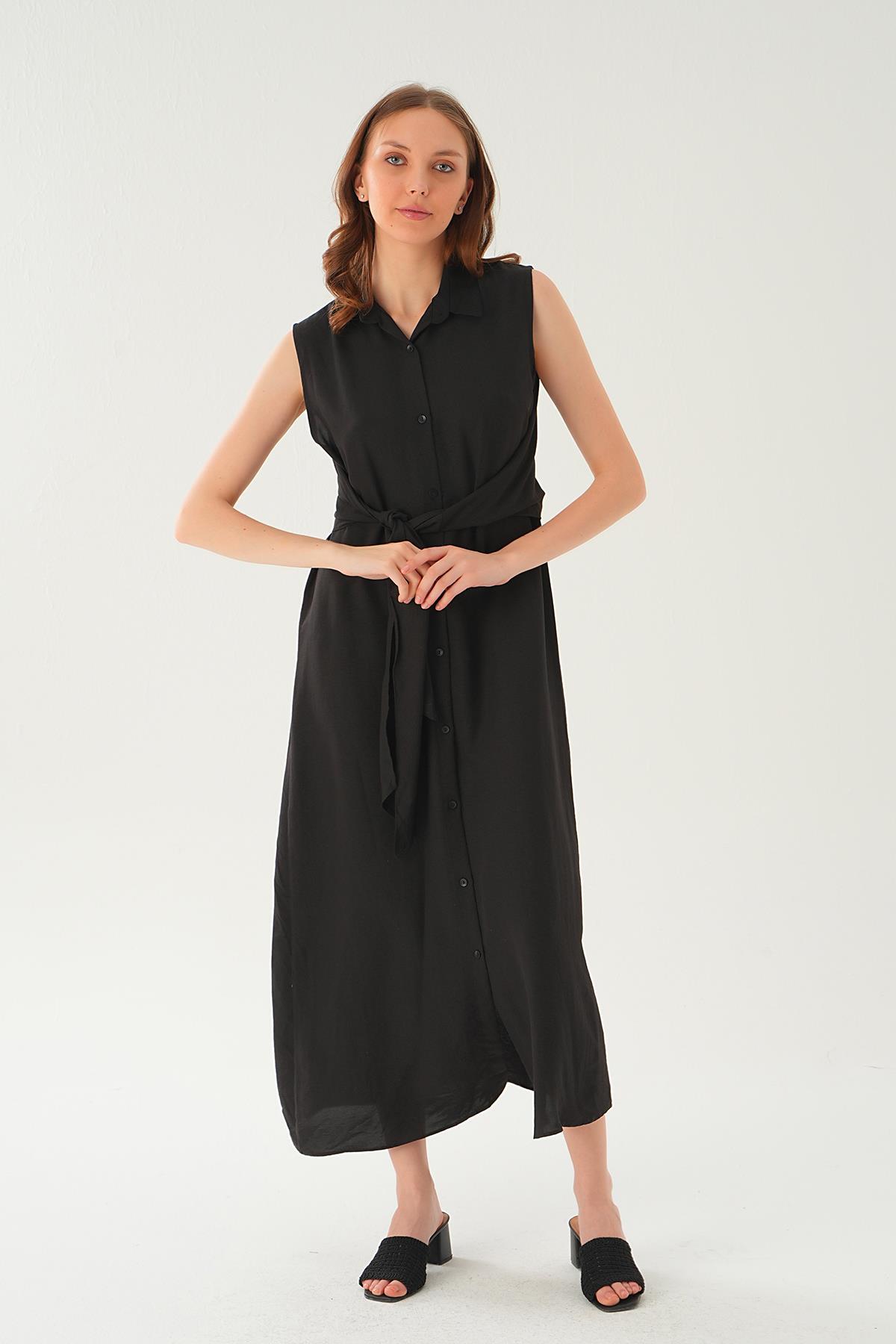 Siyah Bağlama Detay Elbise 8667