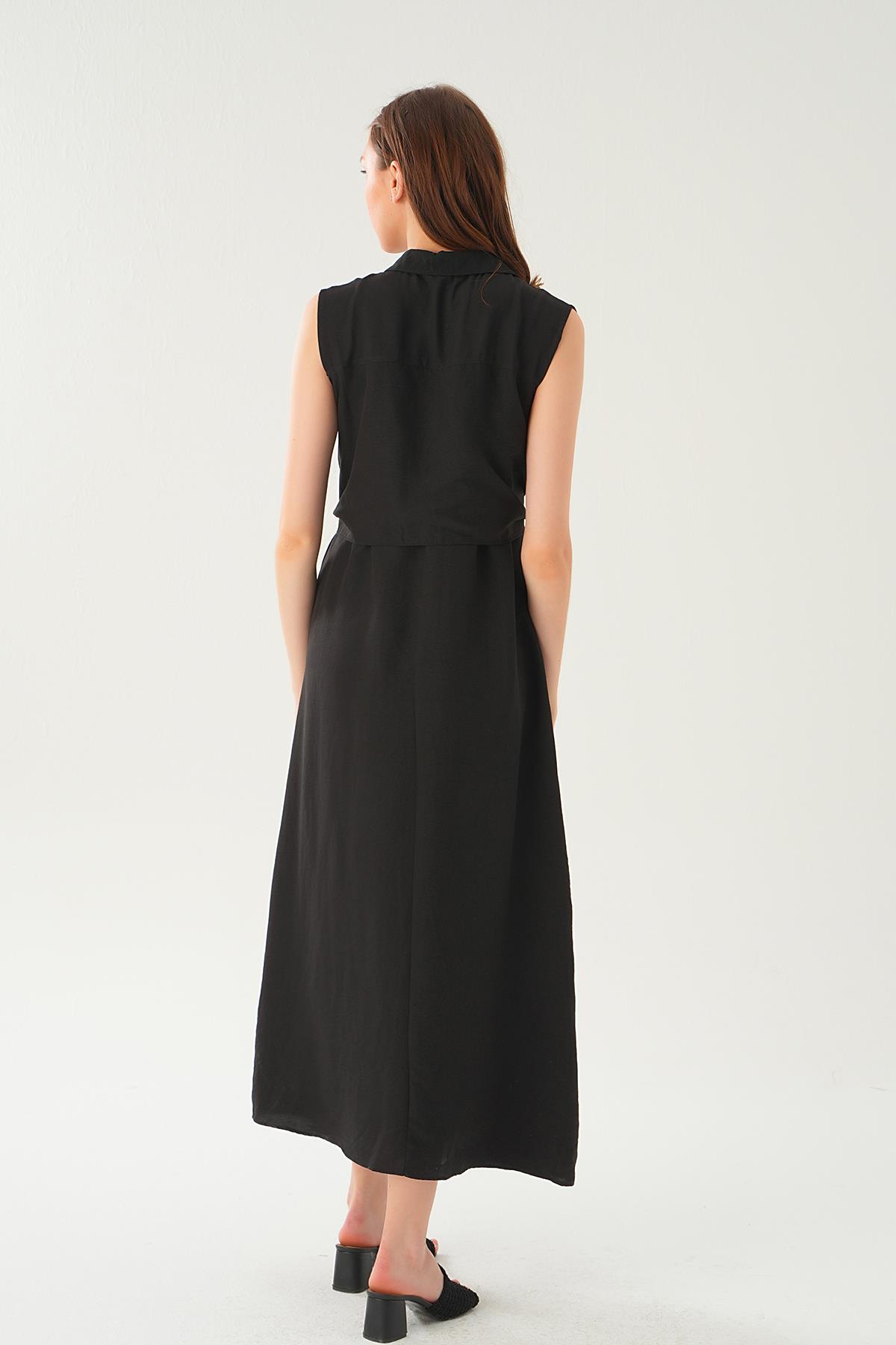 Siyah V Yaka Bel Detay Elbise 252732