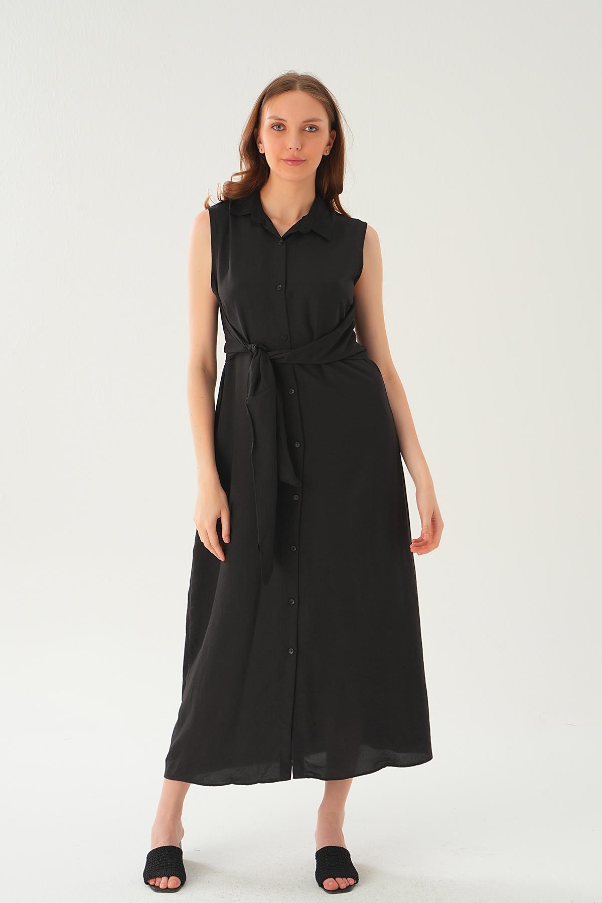 Siyah Vatkalı Bel Bağlama Elbise 261622 - RAYS