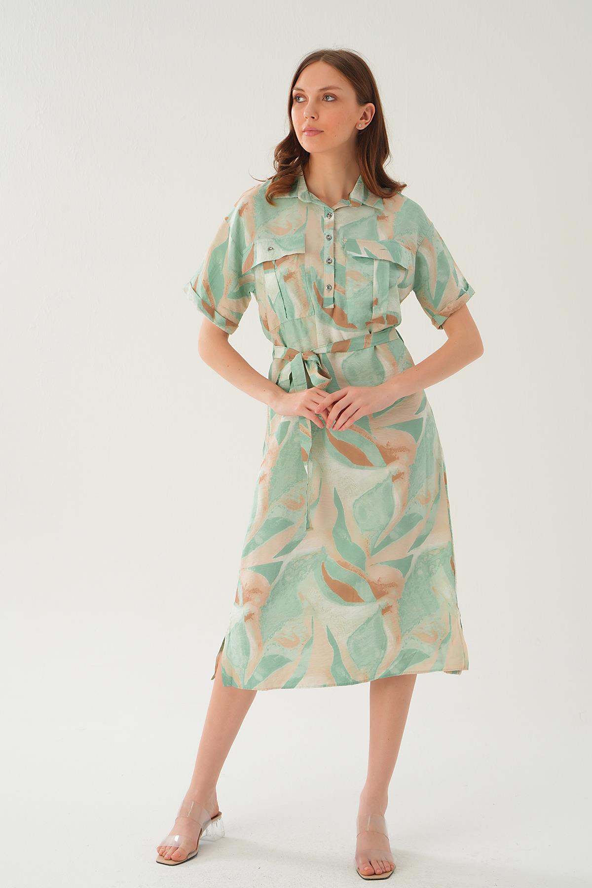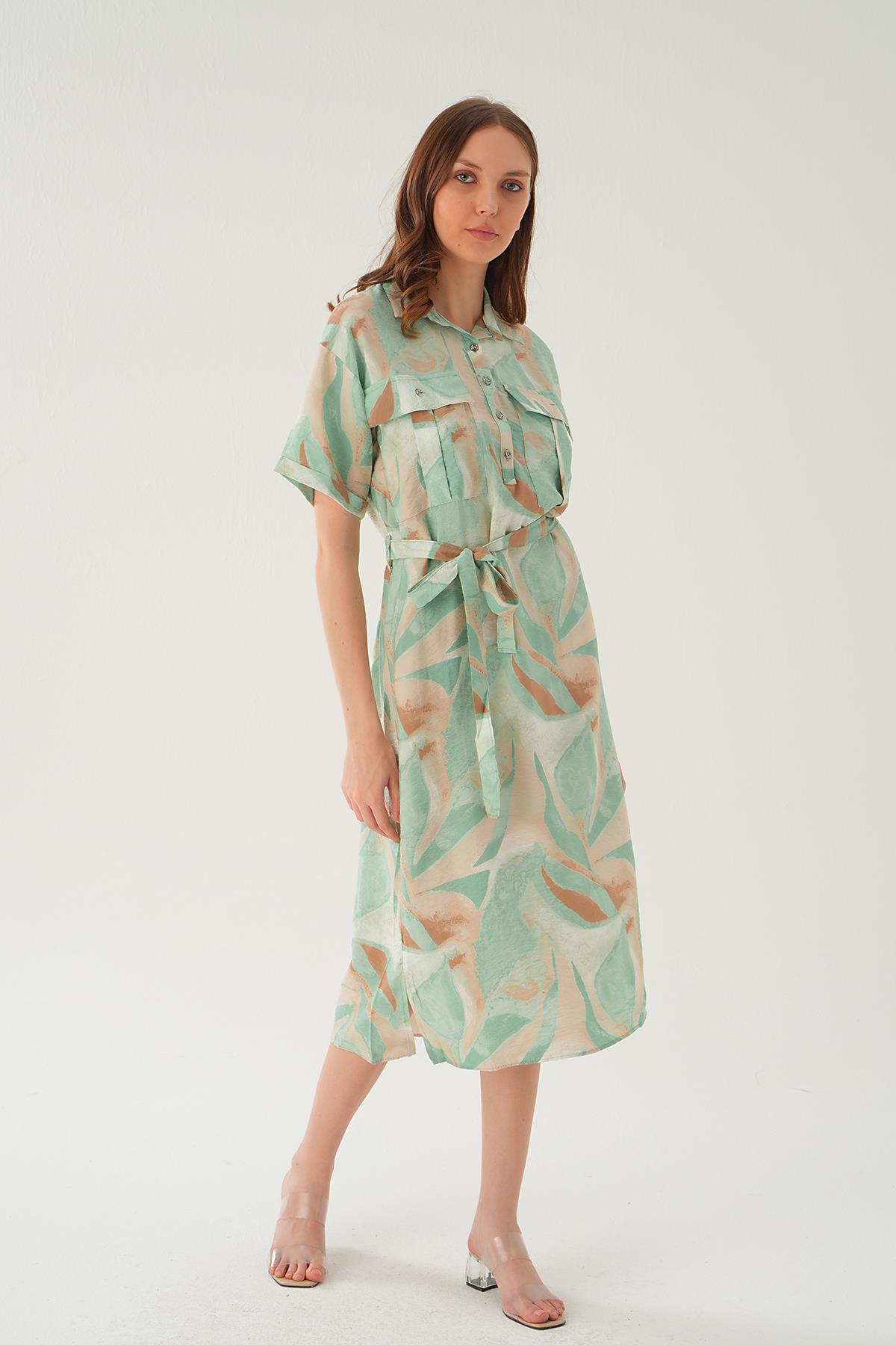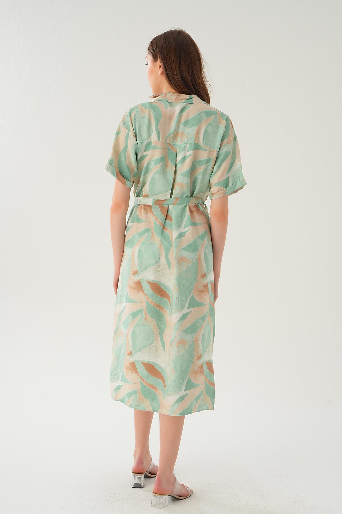 Kahve Desenli Bel Bağlama Elbise 2808 - RAYS Kahve Desenli Bel Bağlama Elbise 2808 - RAYS (1)