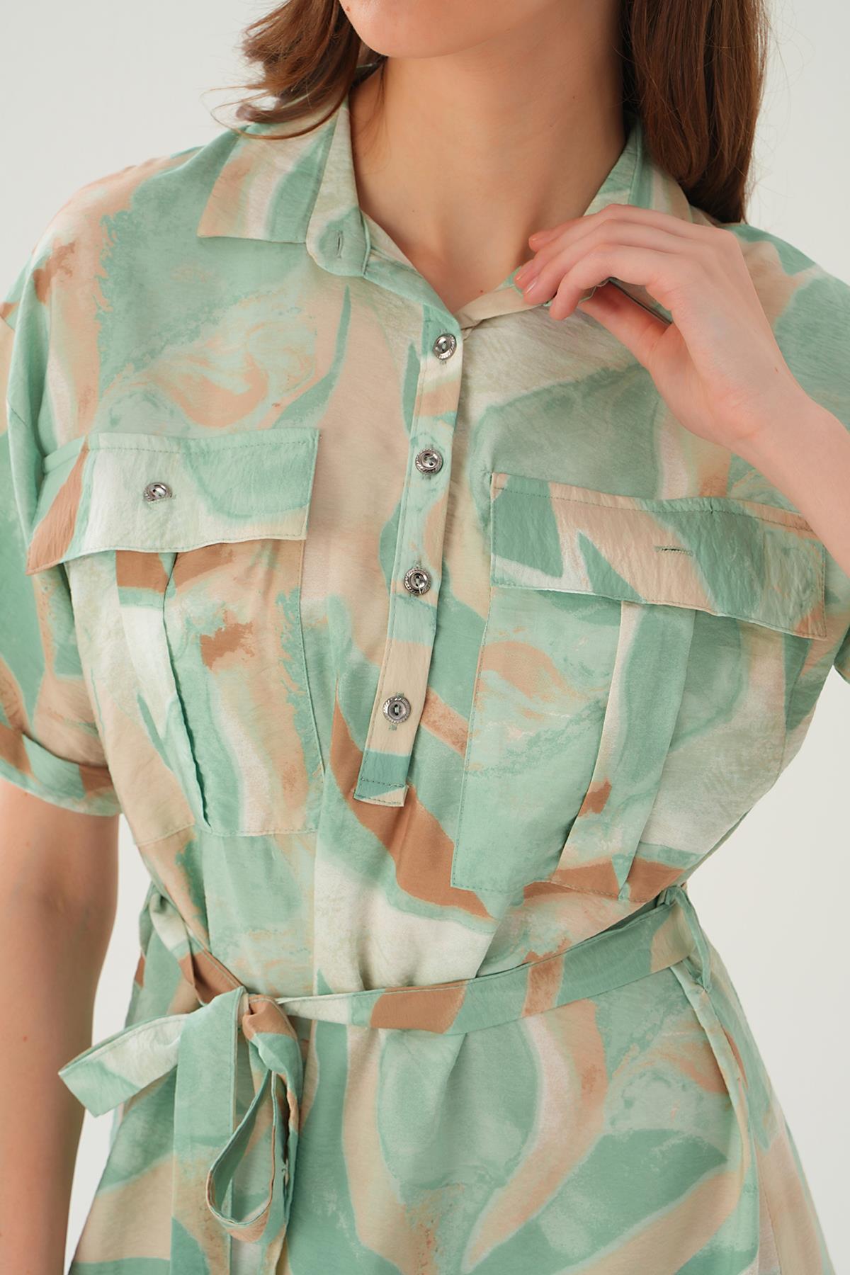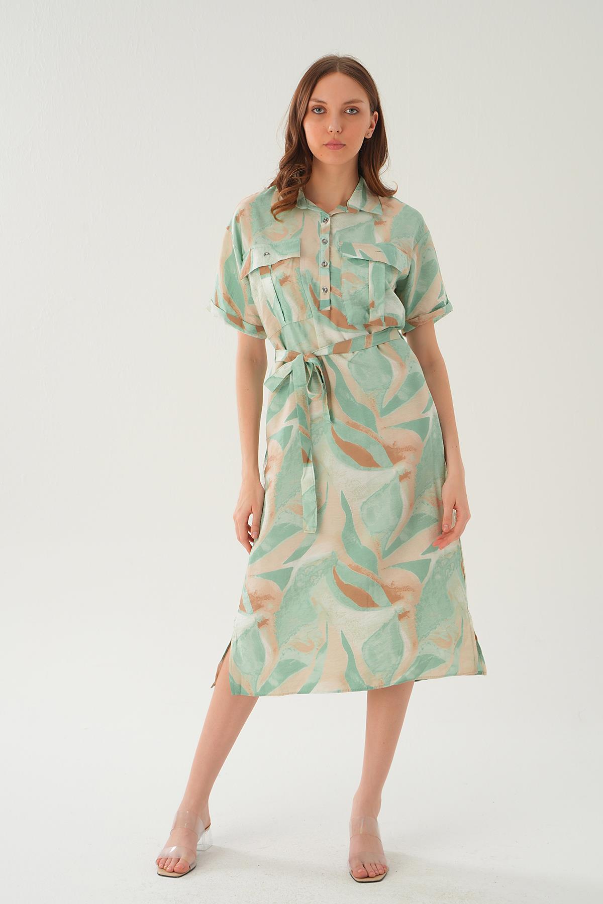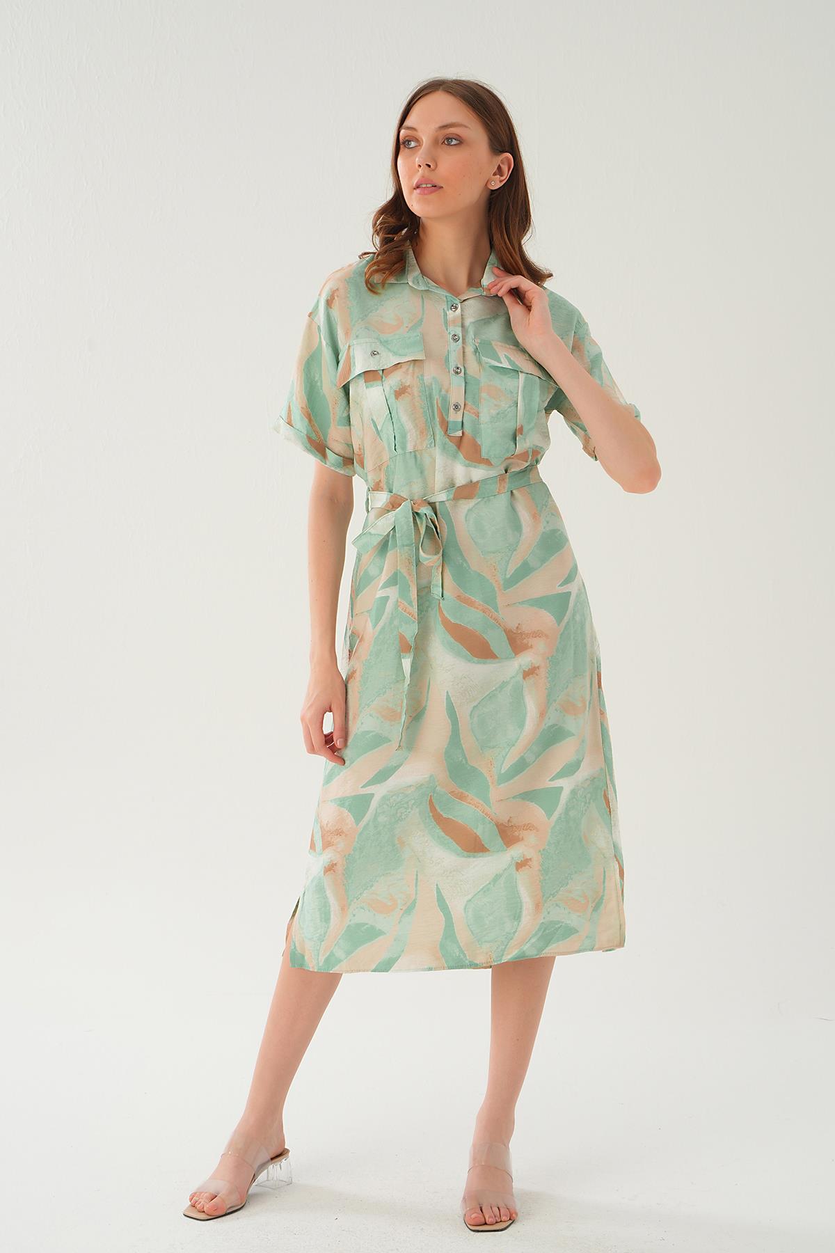 Kahve Desenli Bel Bağlama Elbise 2808 - RAYS Kahve Desenli Bel Bağlama Elbise 2808 - RAYS (1)