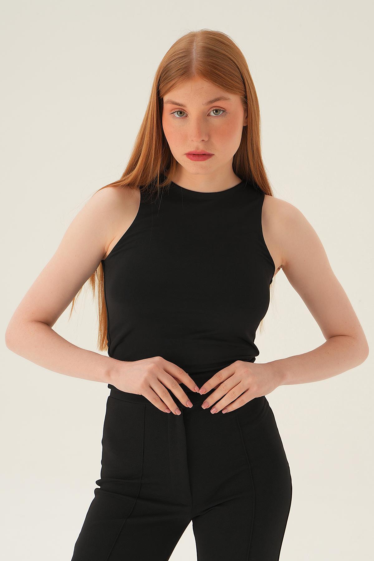 Siyah Bisiklet Yaka Bluz 8867