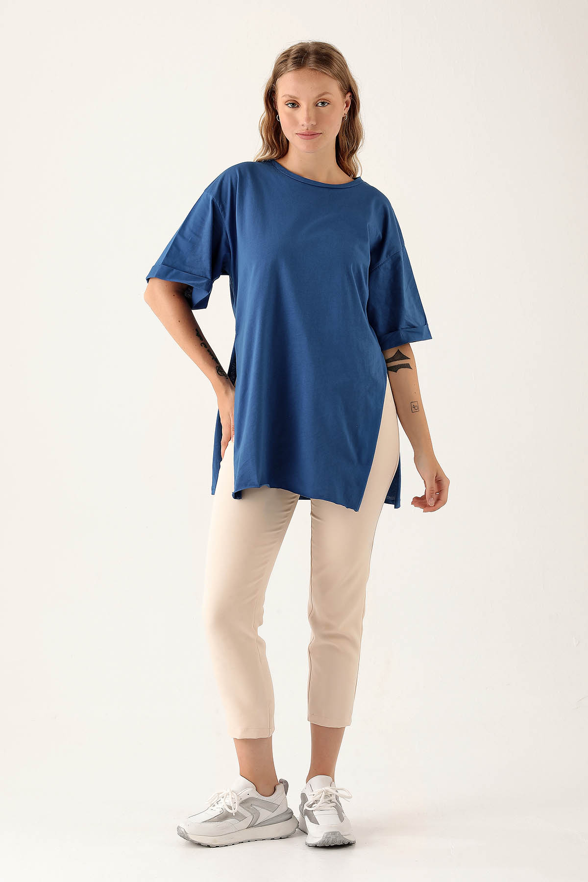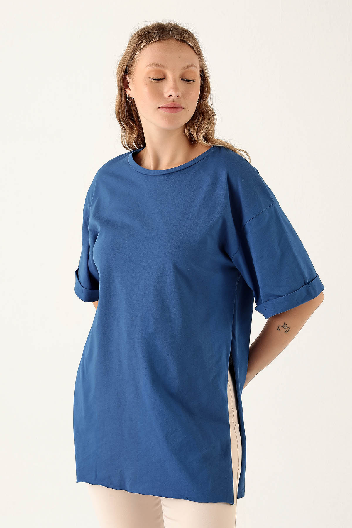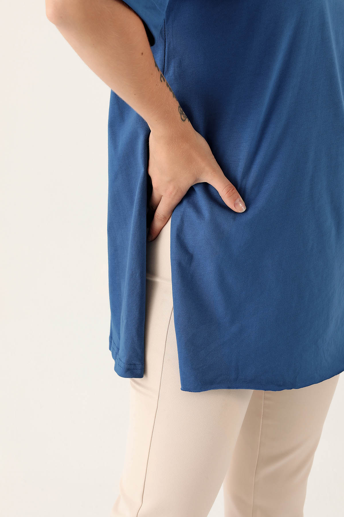 Saks Yan Yırtmaç Dubble Kol Tişört 9000M