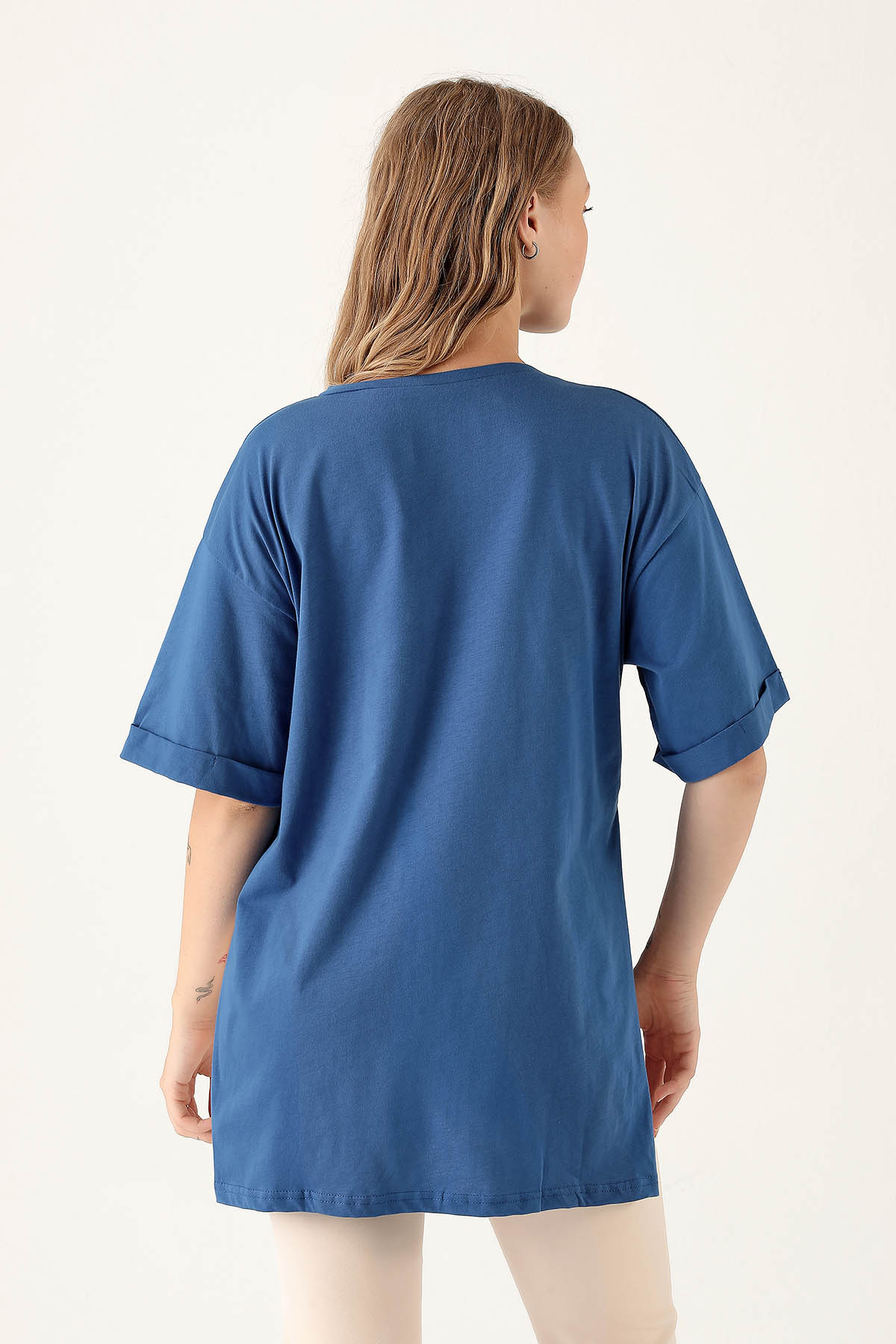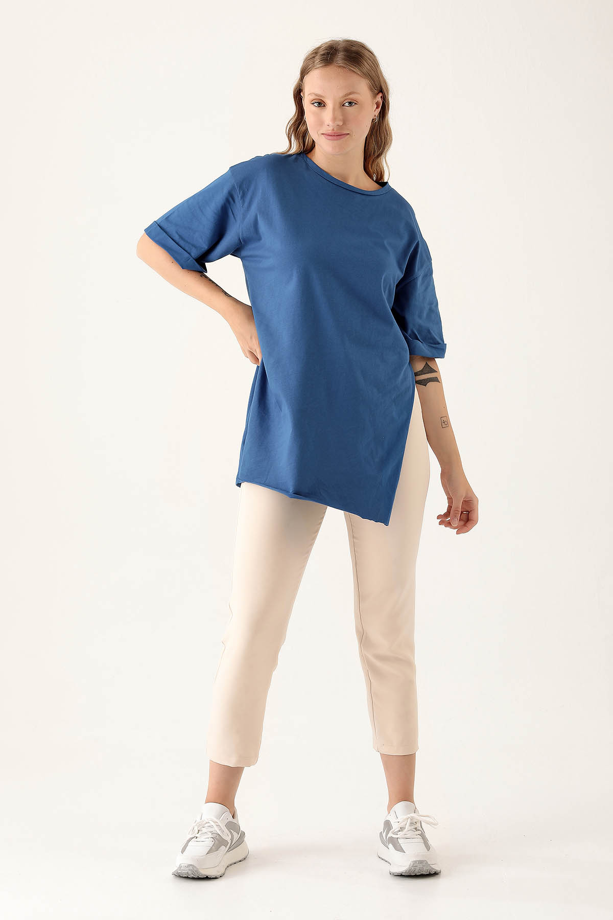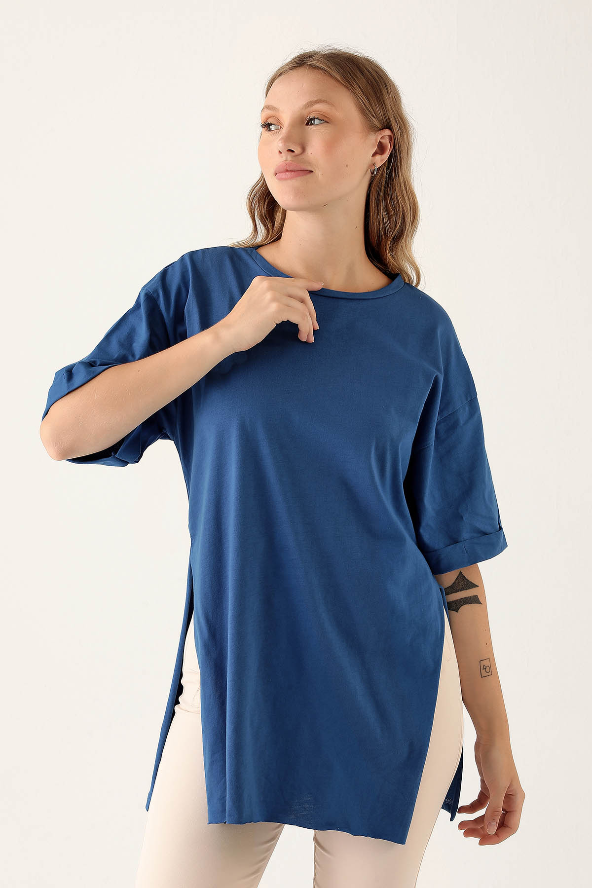 Saks Yan Yırtmaç Dubble Kol Tişört 9000M