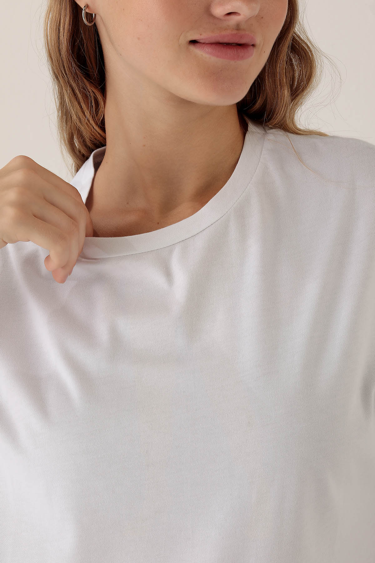 Ekru Bisiklet Yaka Oversize Tişört 9001M