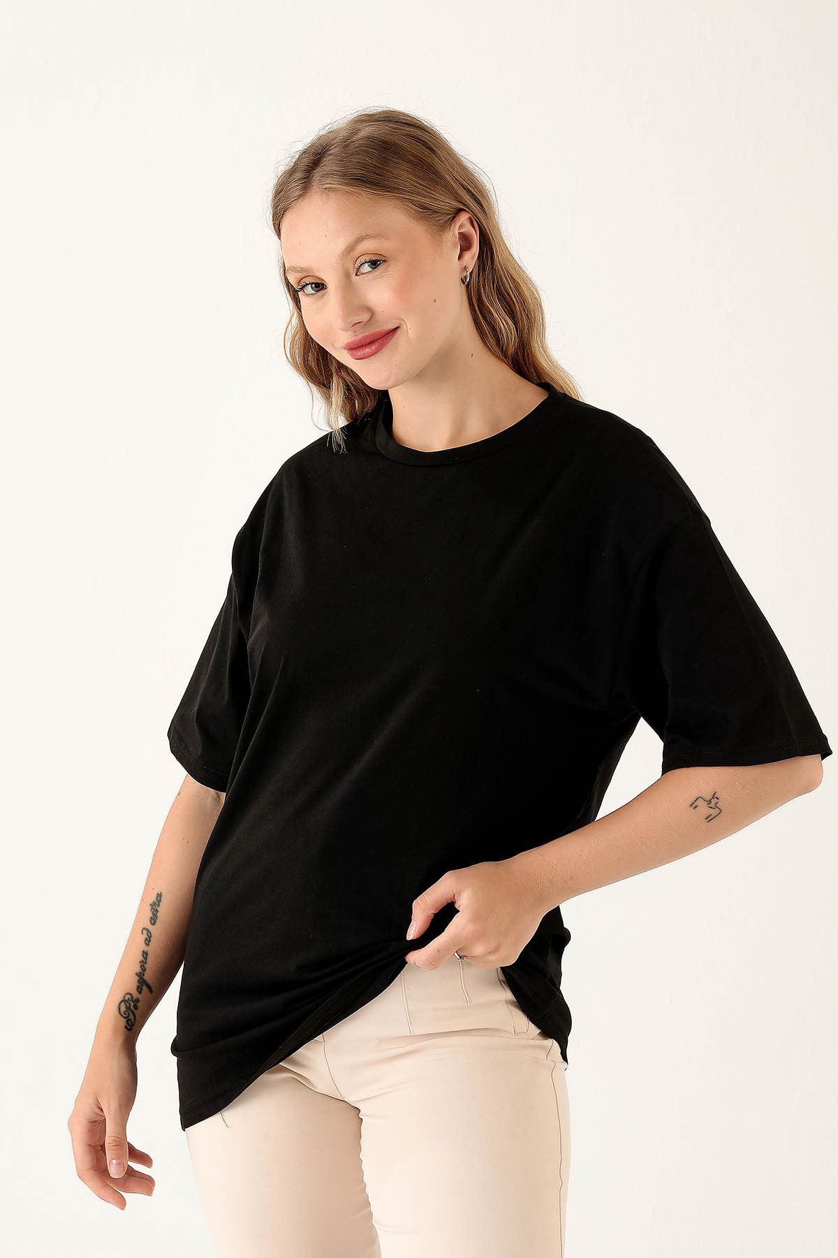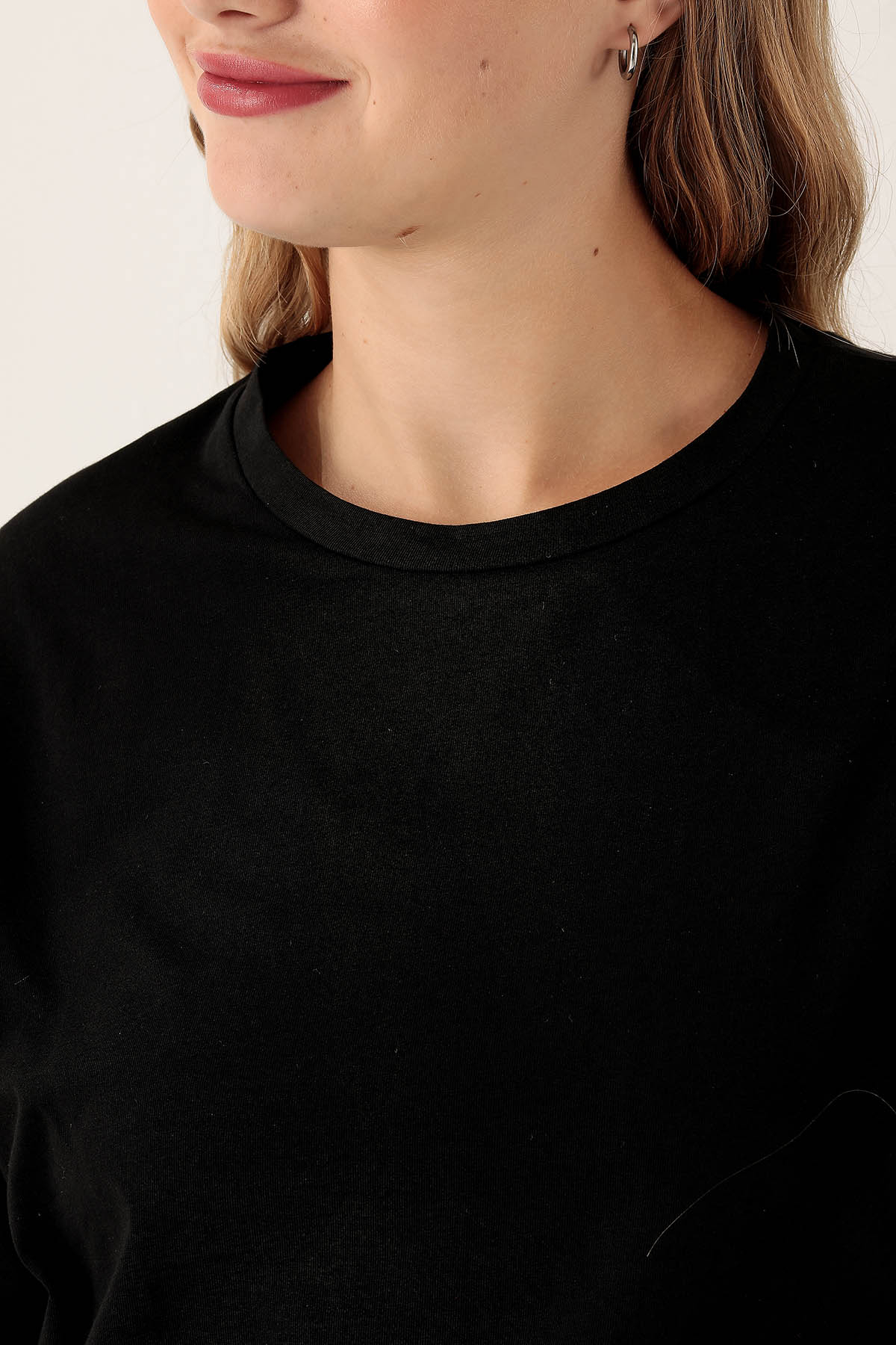 Siyah Bisiklet Yaka Oversize Tişört 9001M