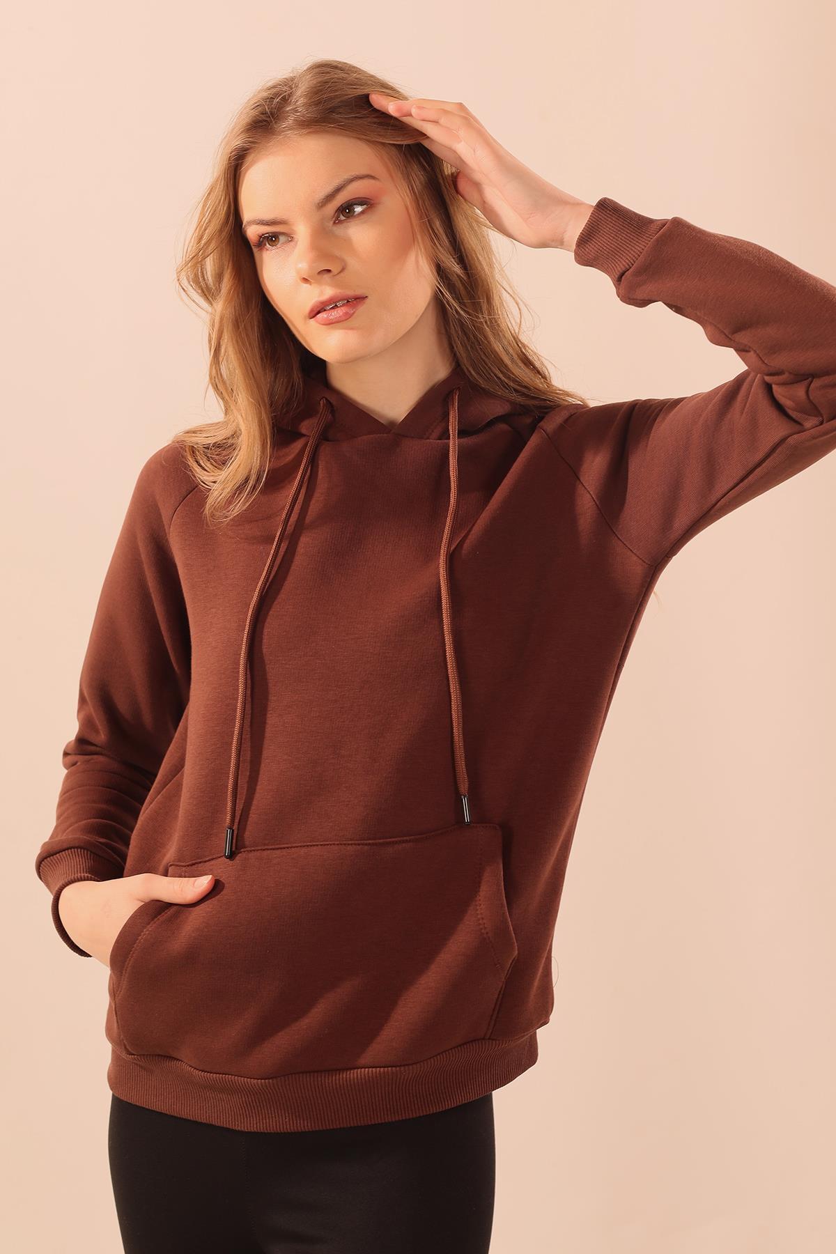 Acı Kahve Kapüşonlu Cep Detay Sweat 9018M