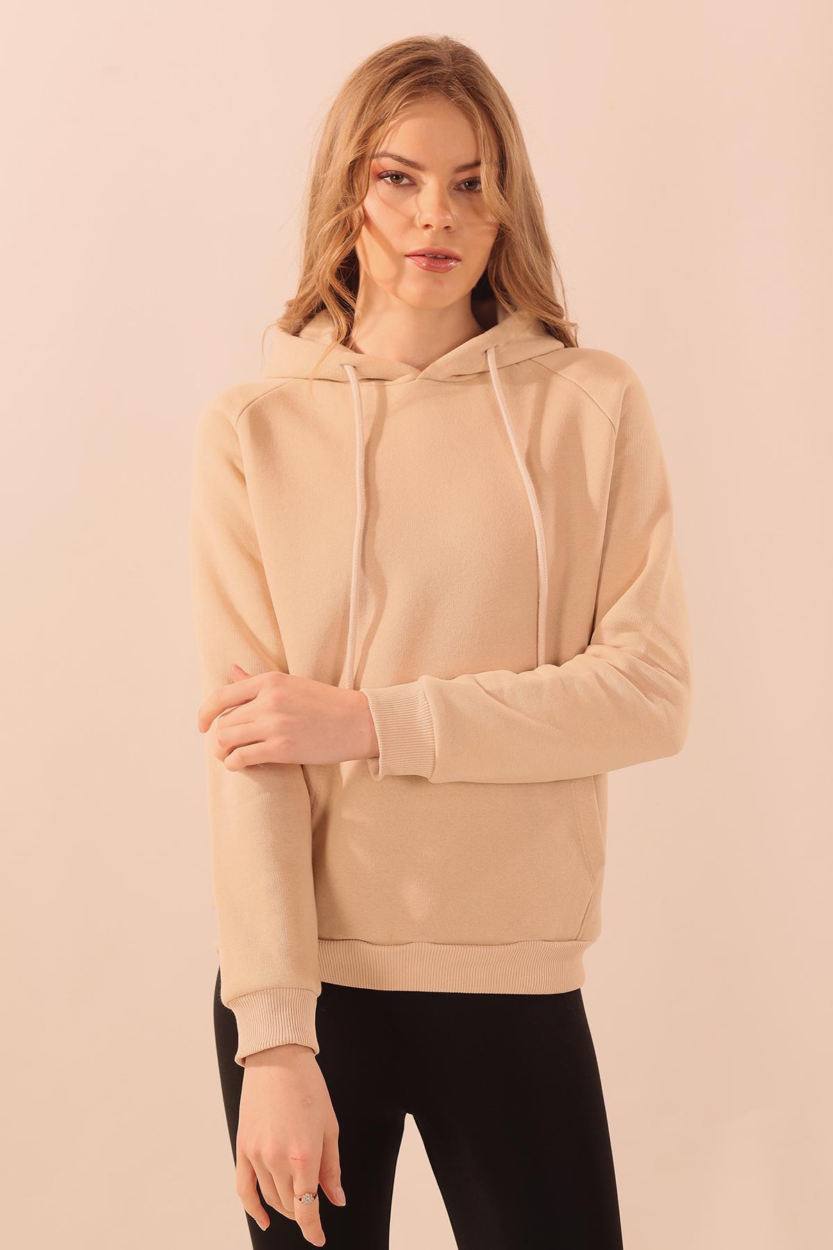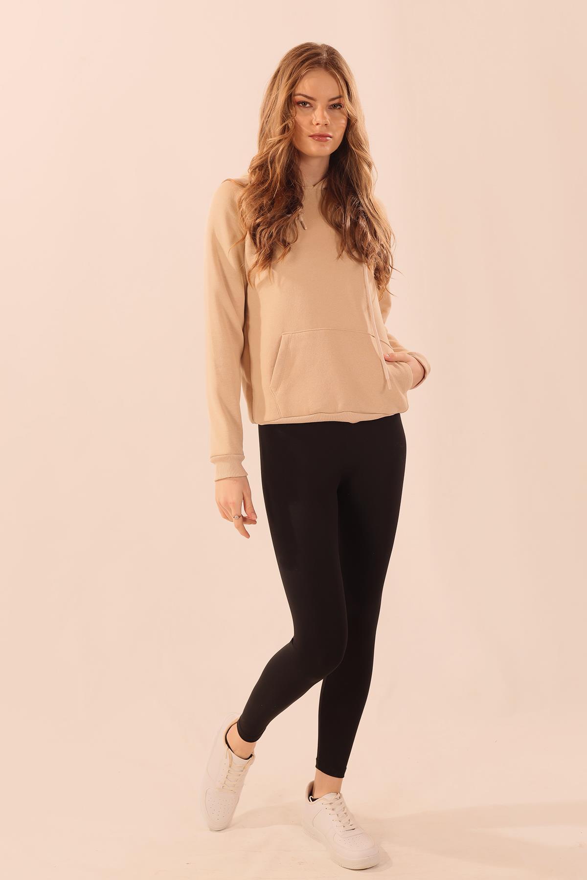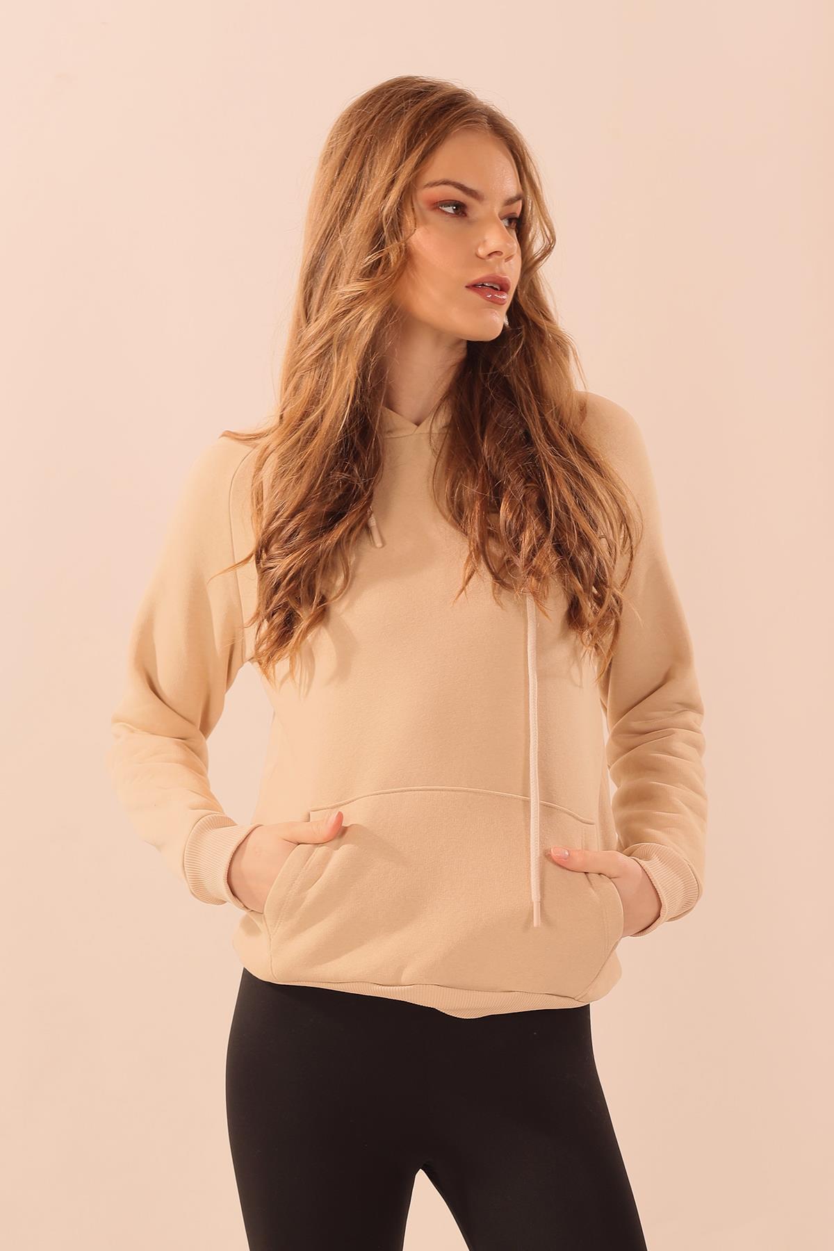 Bej Kapüşonlu Cep Detay Sweat 9018M