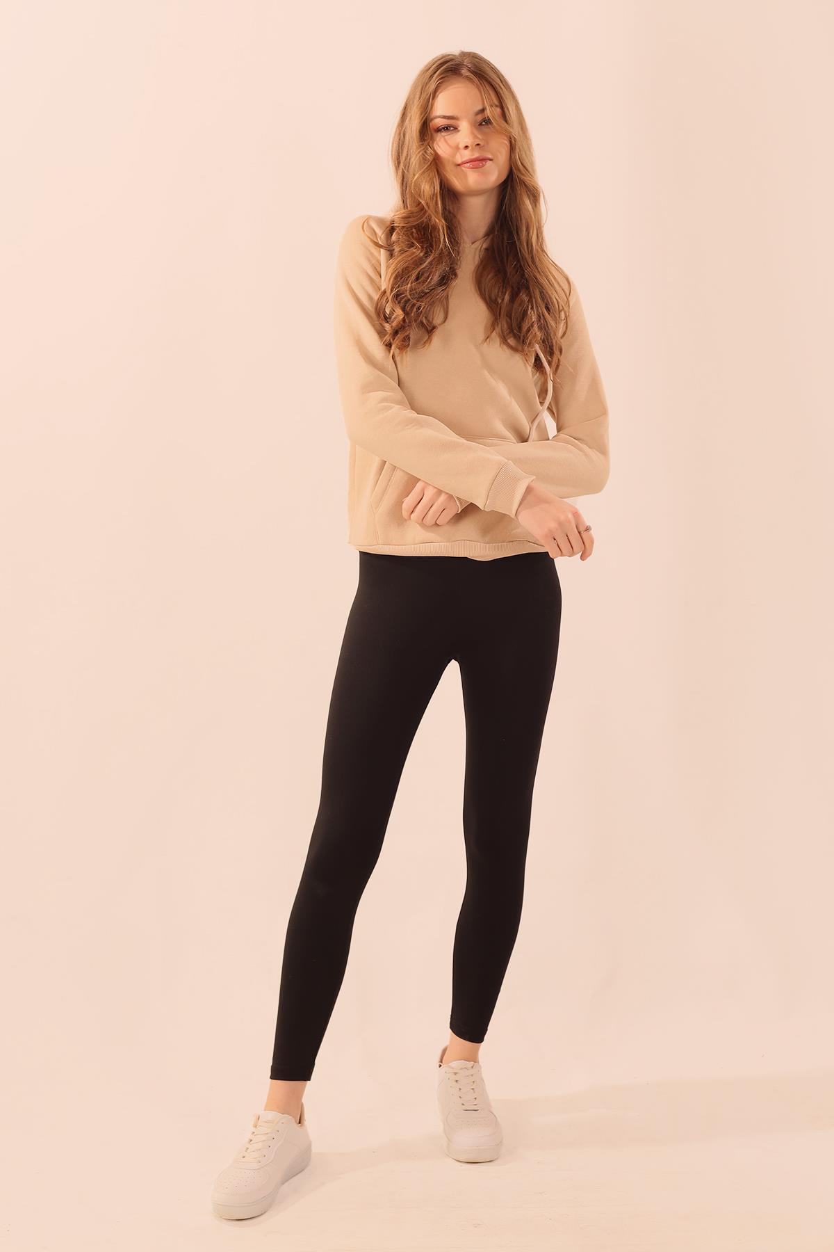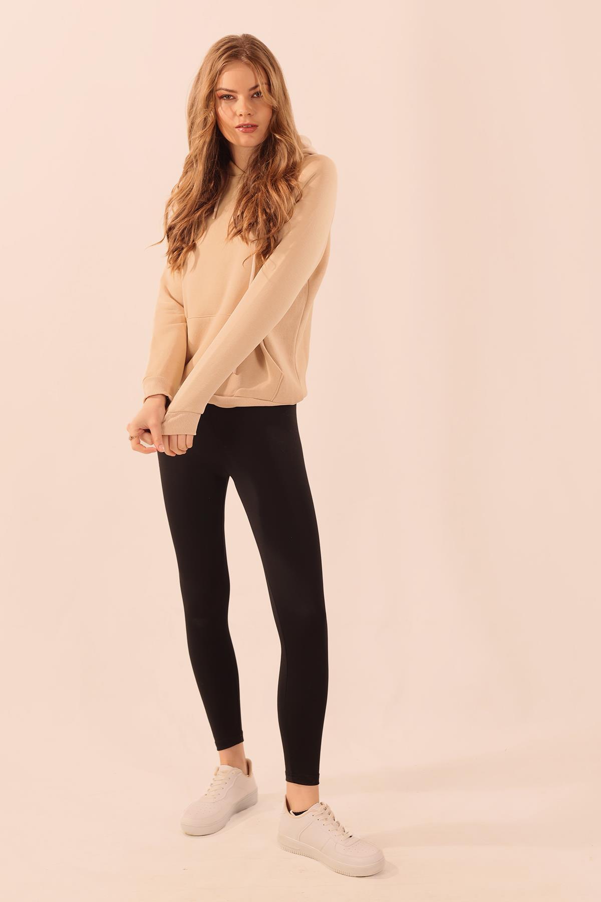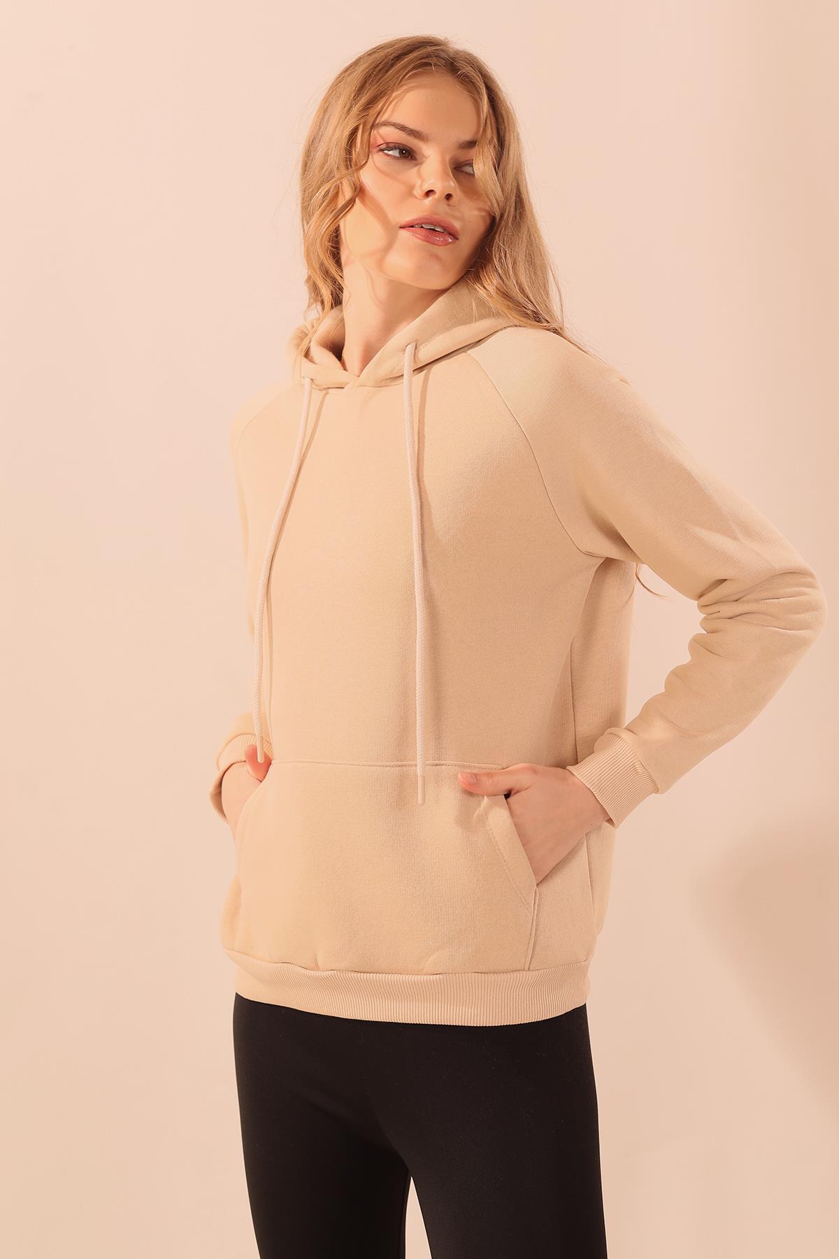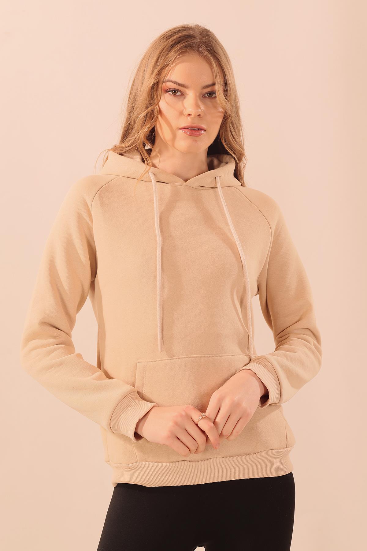 Bej Kapüşonlu Cep Detay Sweat 9018M
