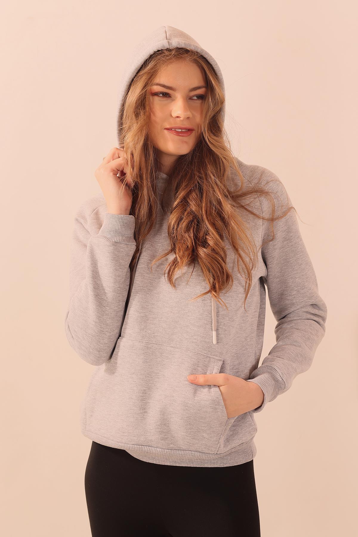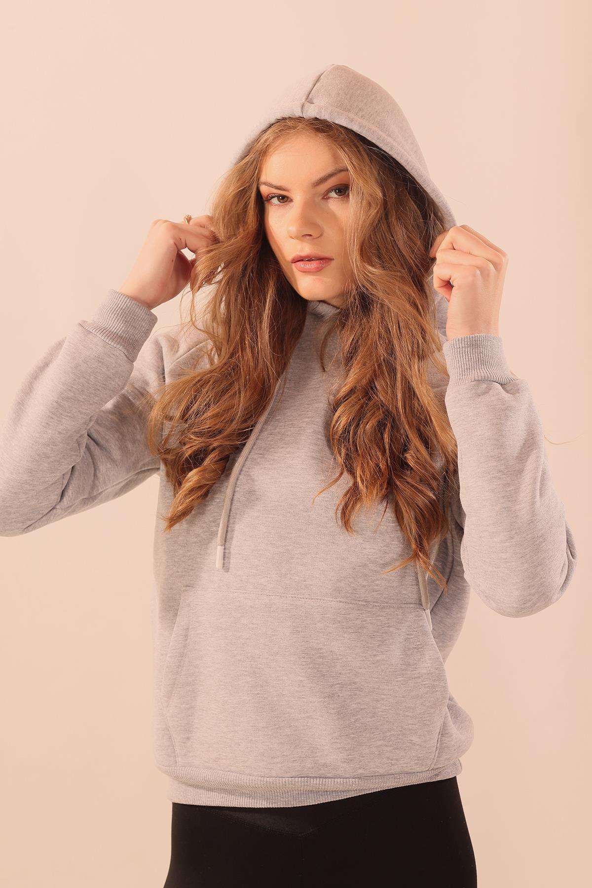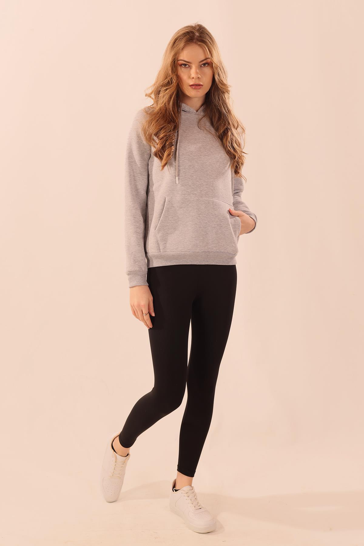 Gri Kapüşonlu Cep Detay Sweat 9018M