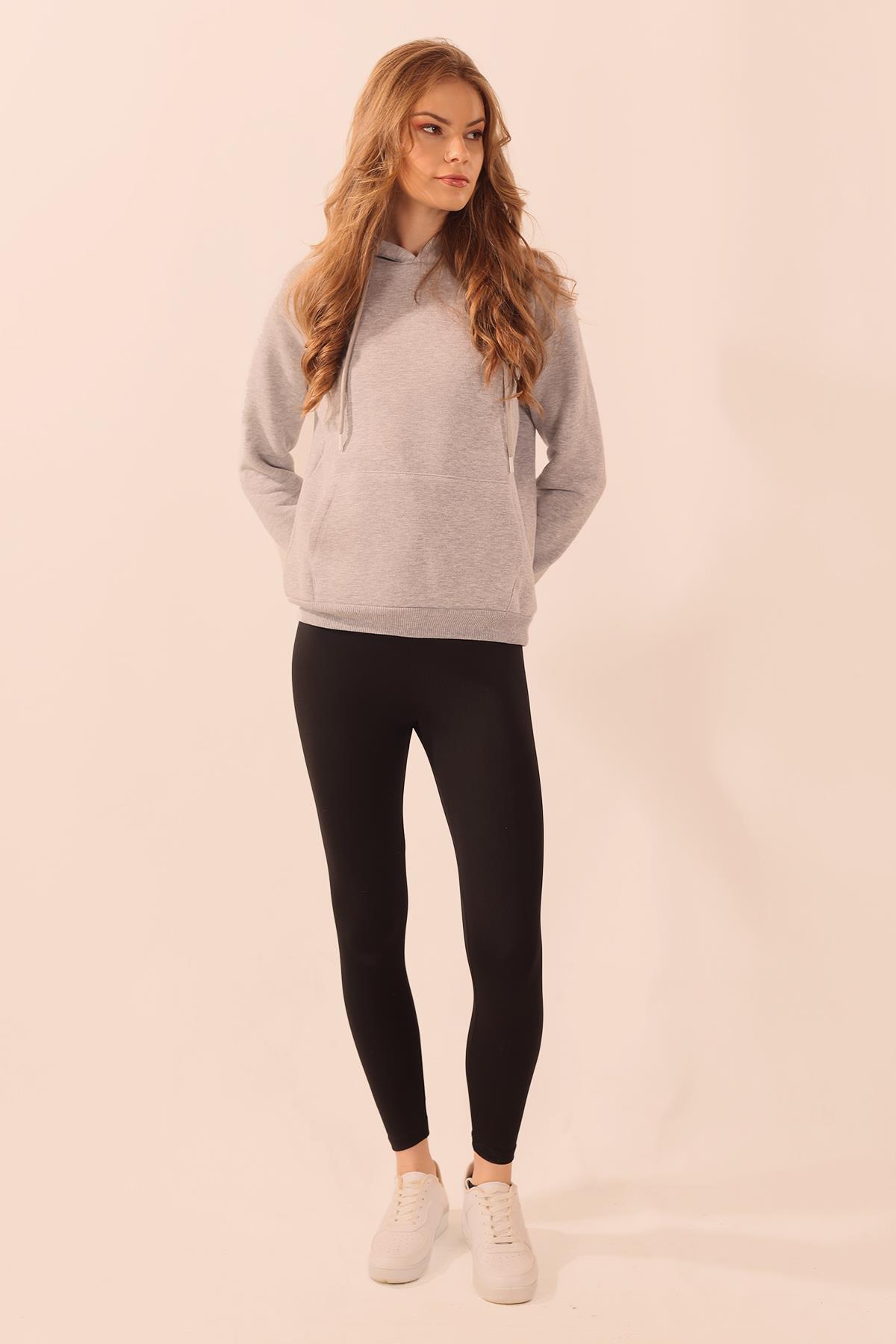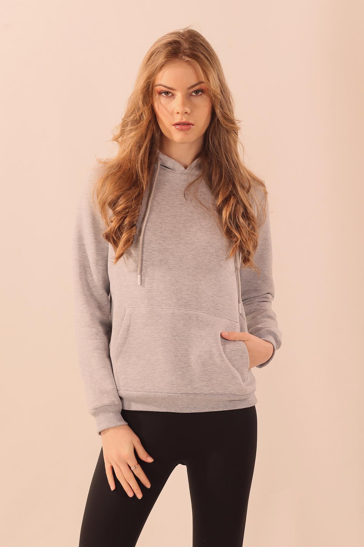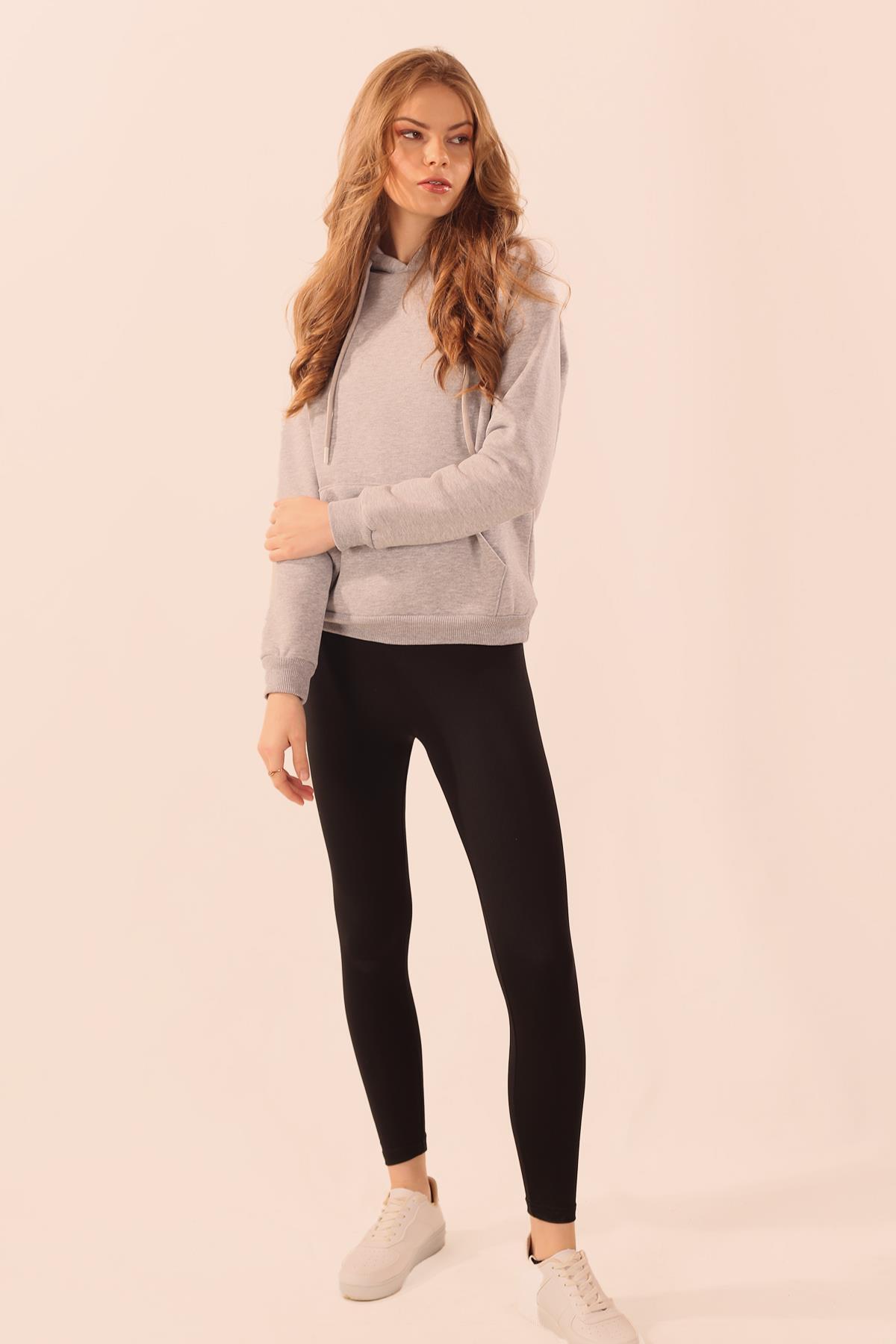 Gri Kapüşonlu Cep Detay Sweat 9018M