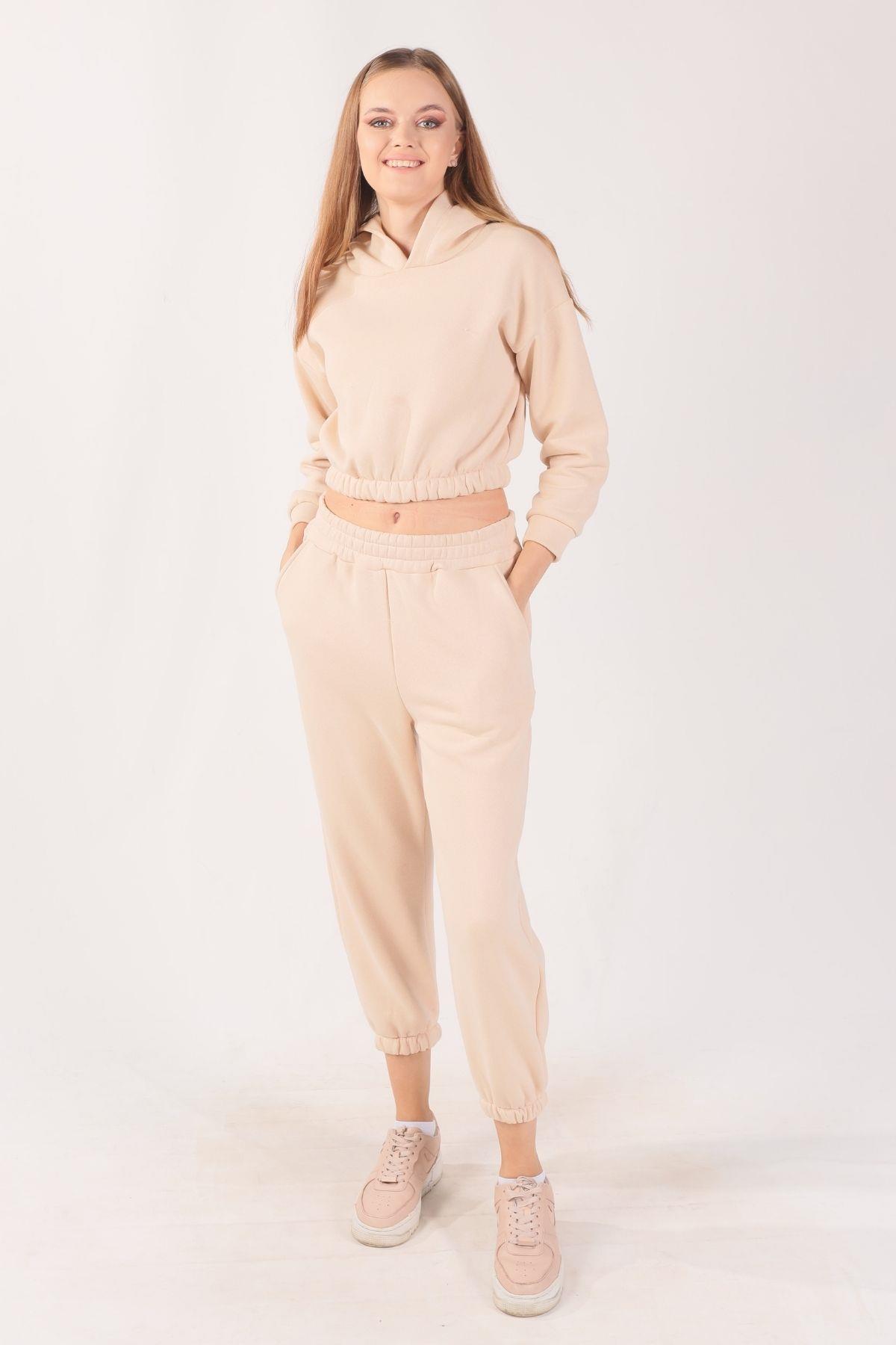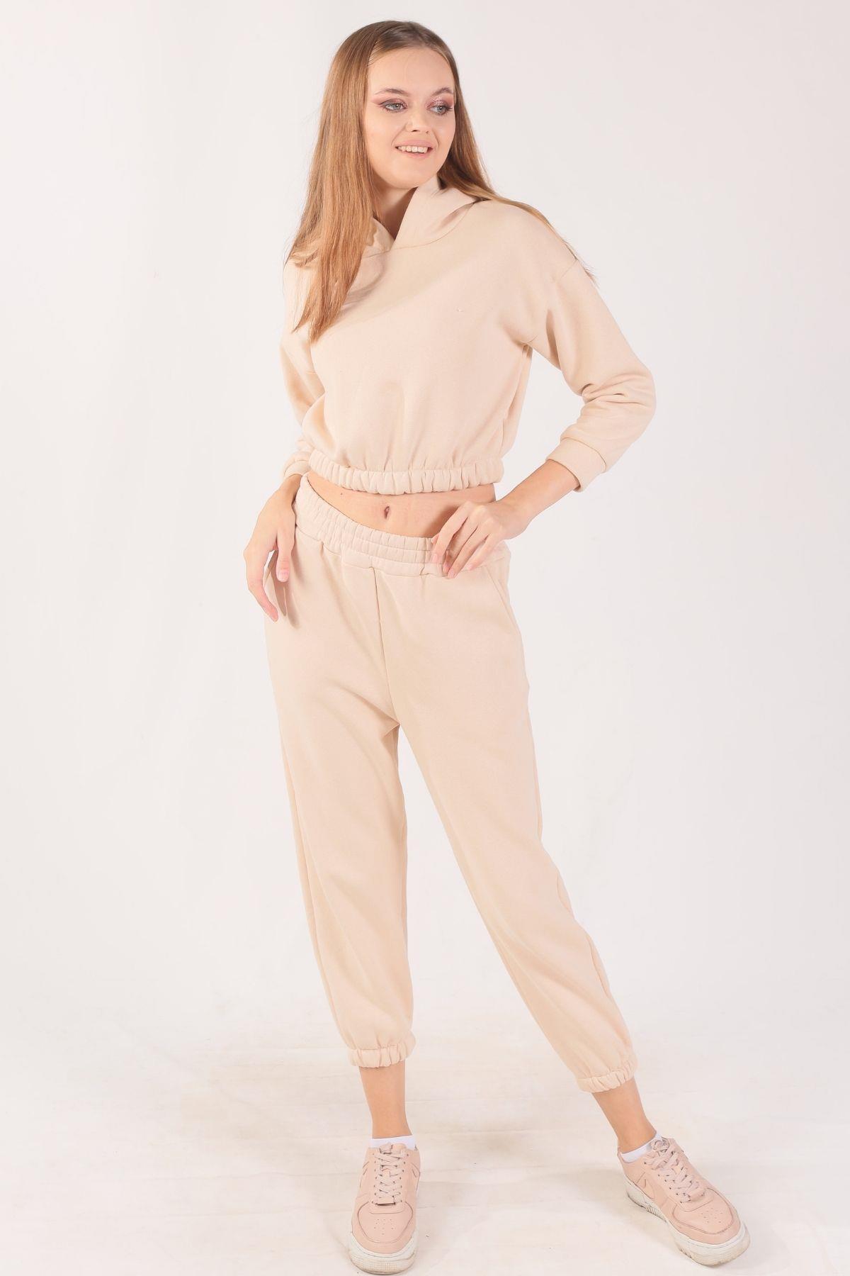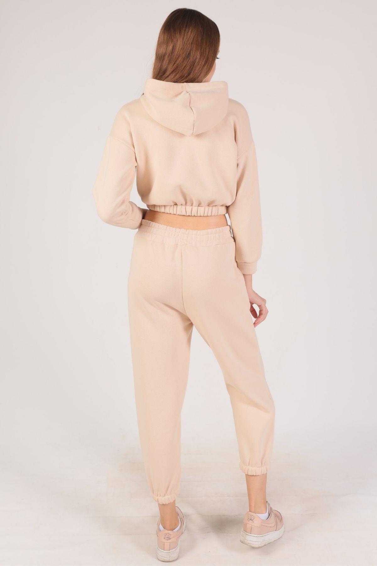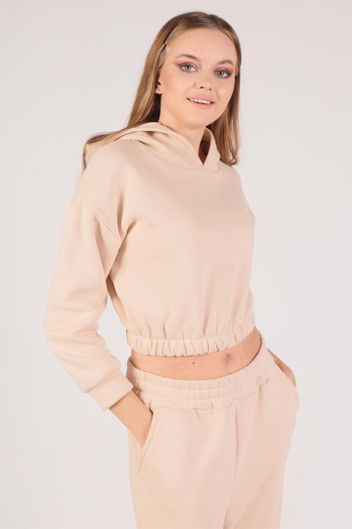 Bej Kapüşonlu Bel Lastik Eşofman Takımı 9023M
