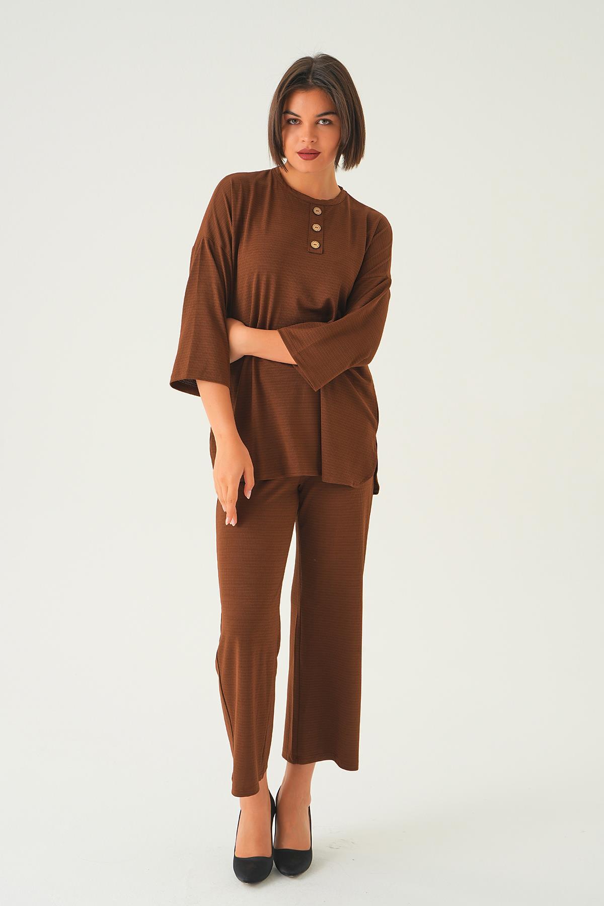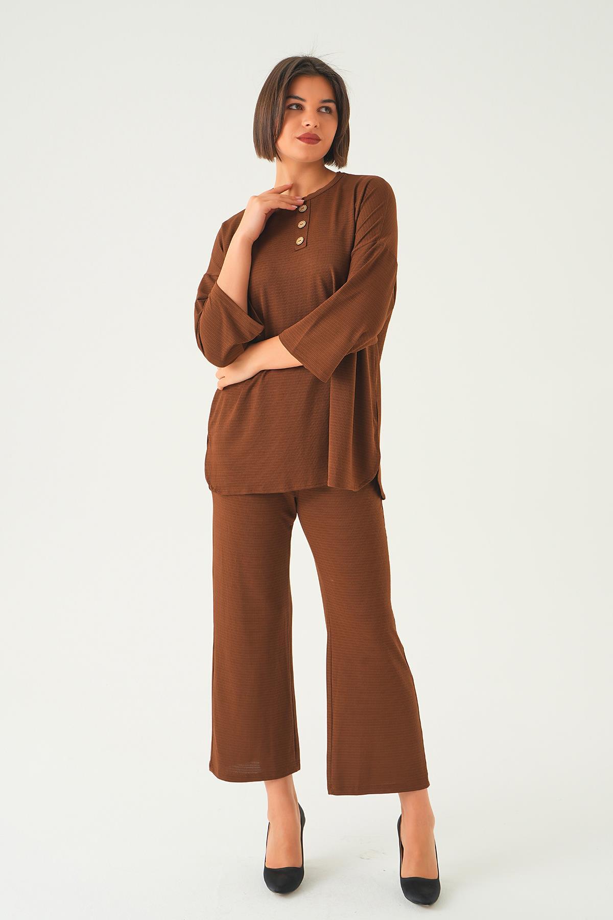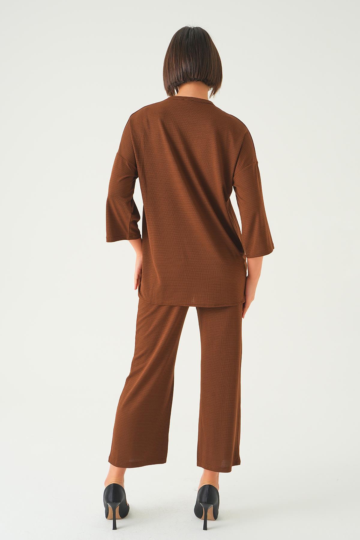 Kahve Bisiklet Yaka Pantolon Takım 9028M