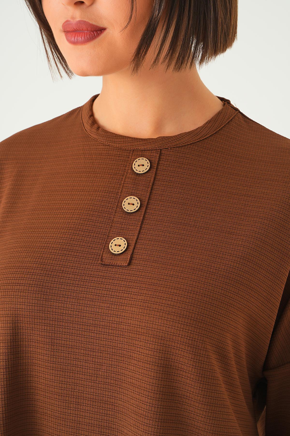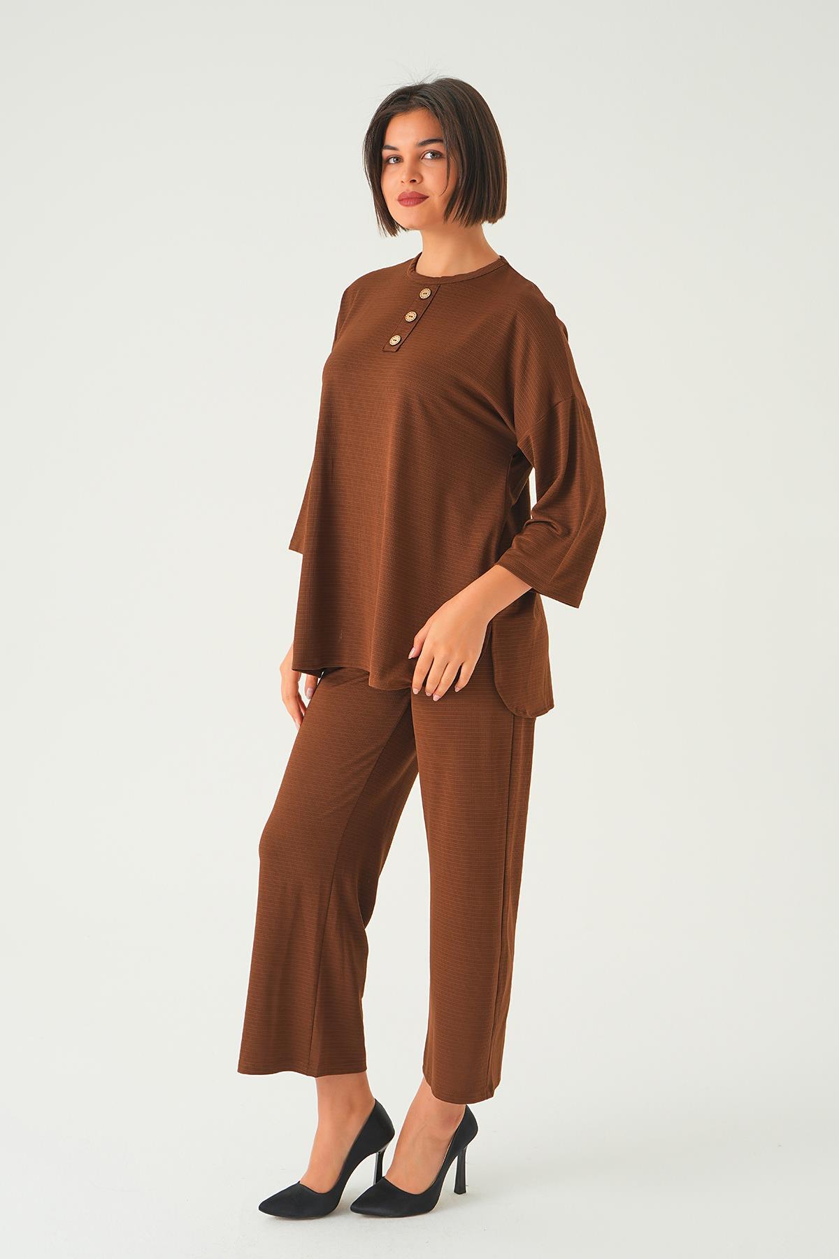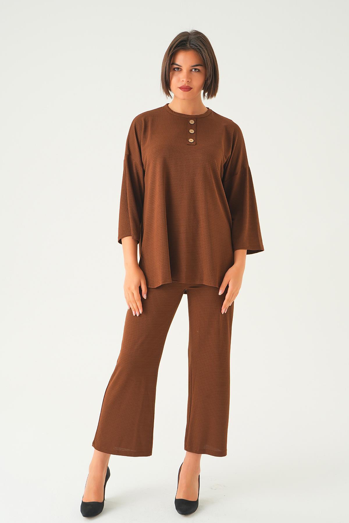 Kahve Bisiklet Yaka Pantolon Takım 9028M