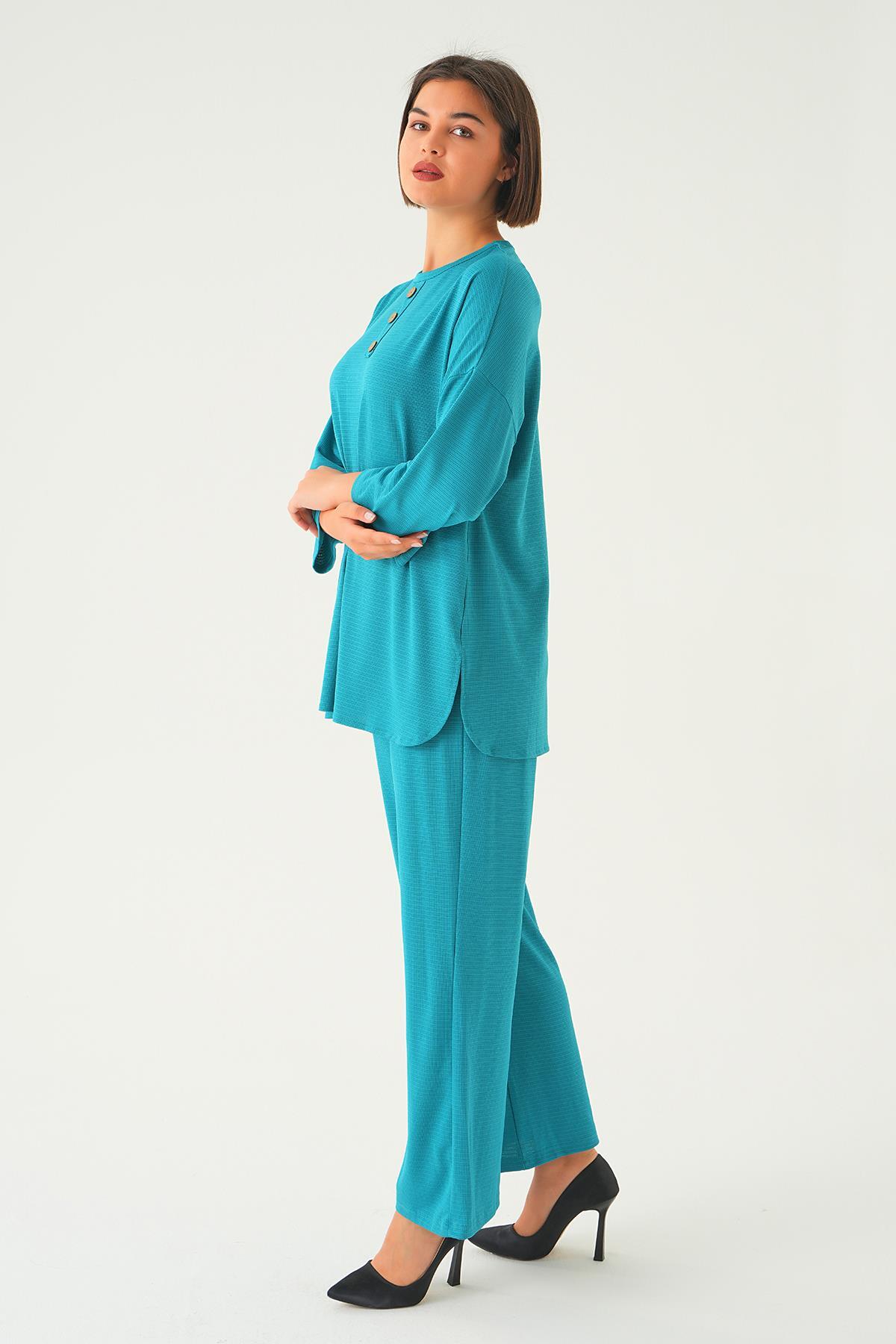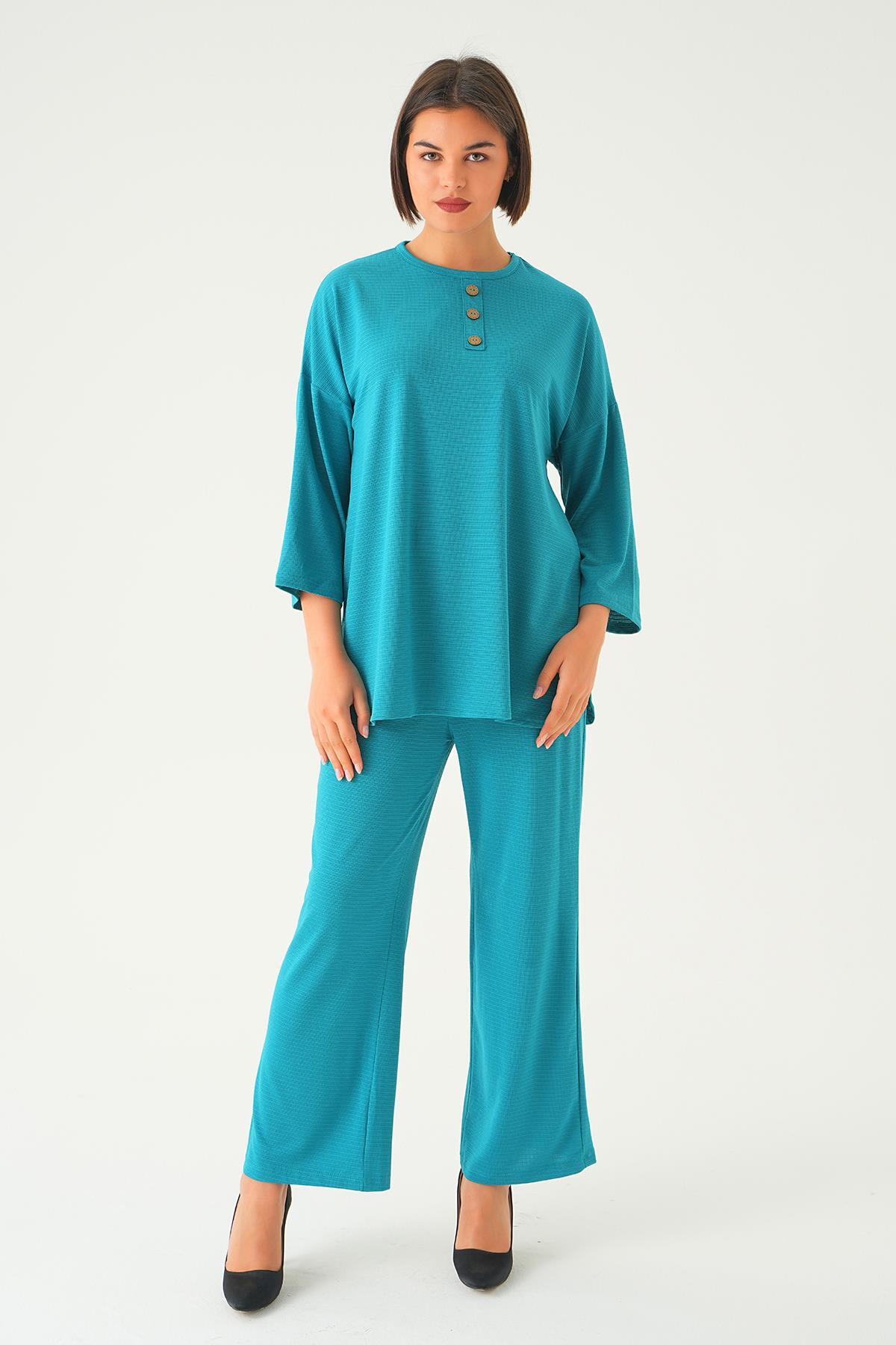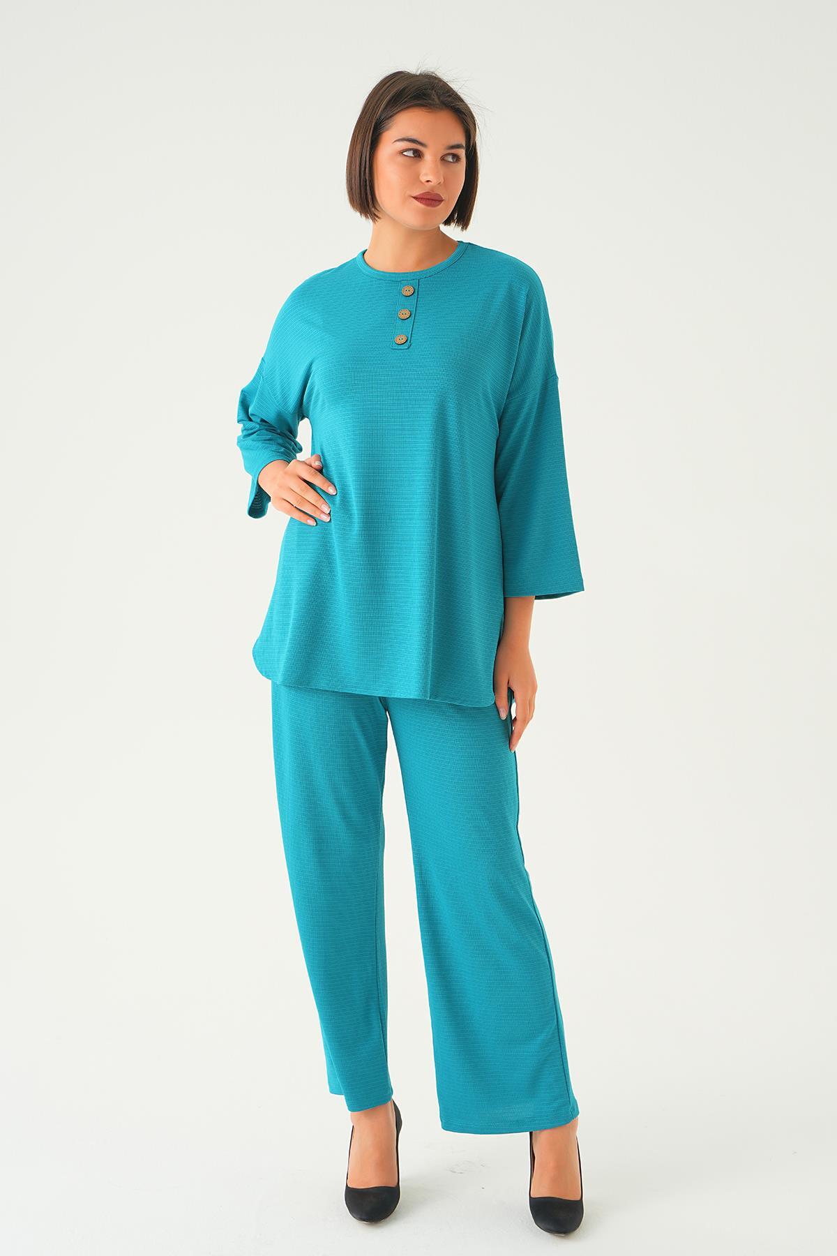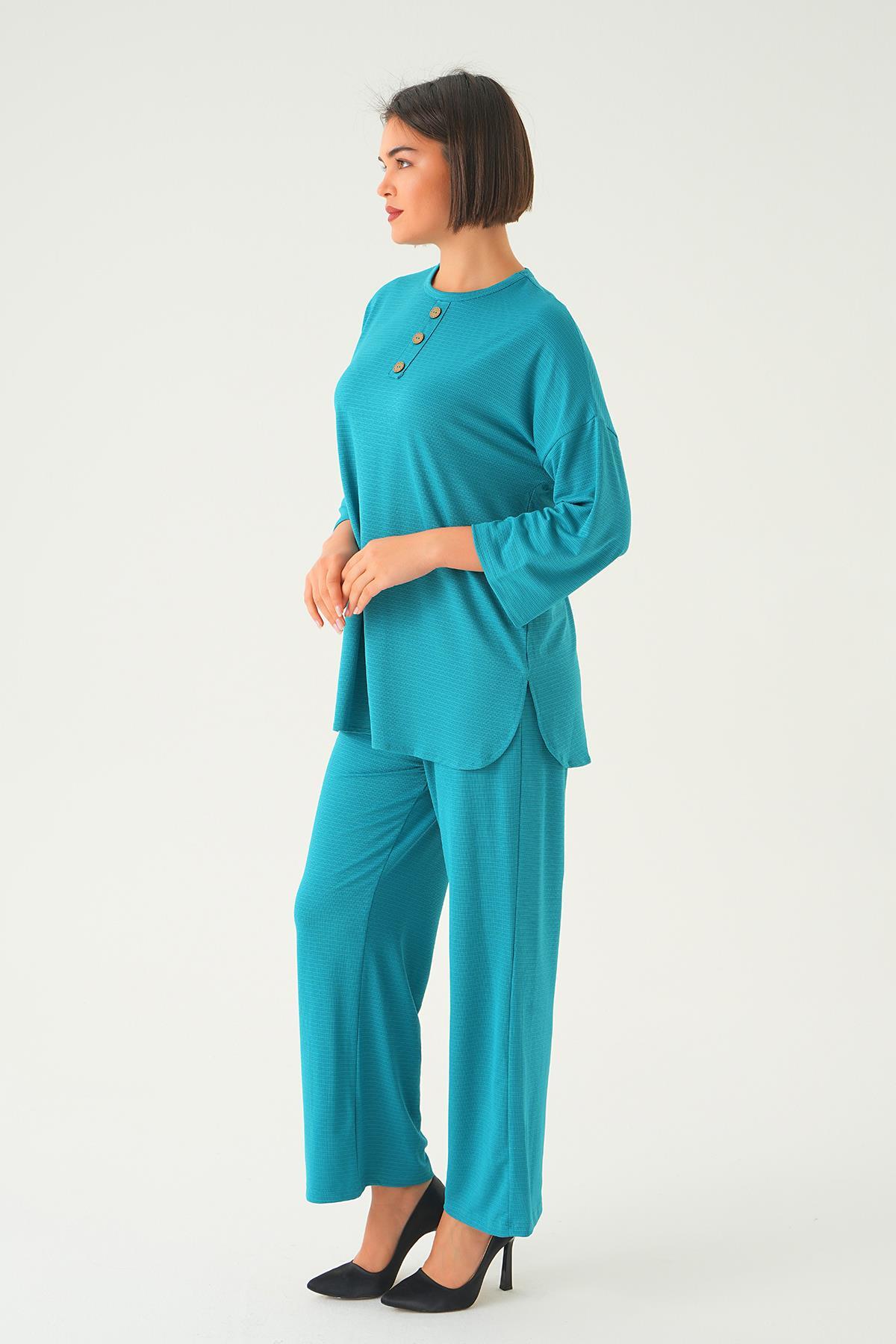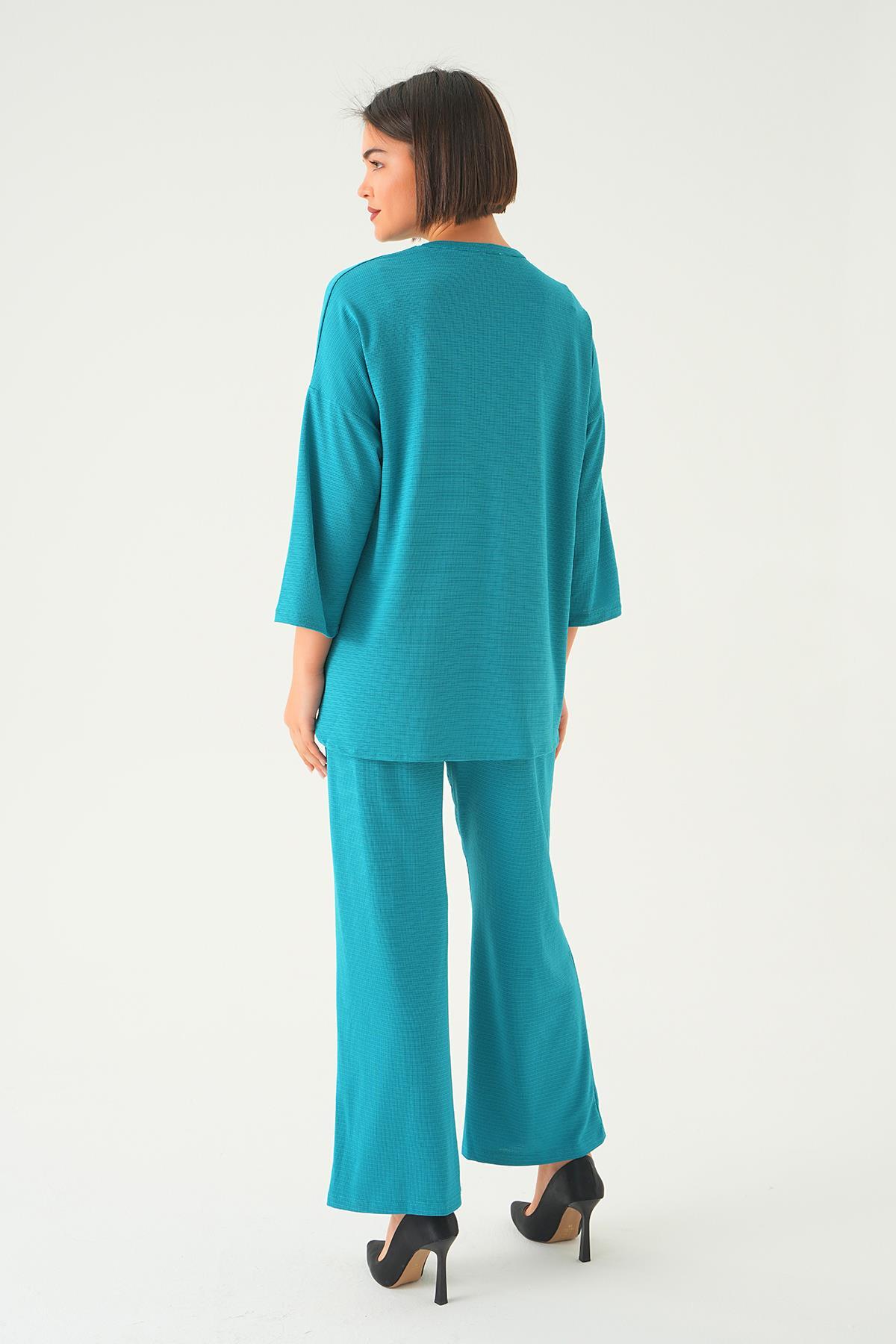 Petrol Bisiklet Yaka Pantolon Takım 9028M