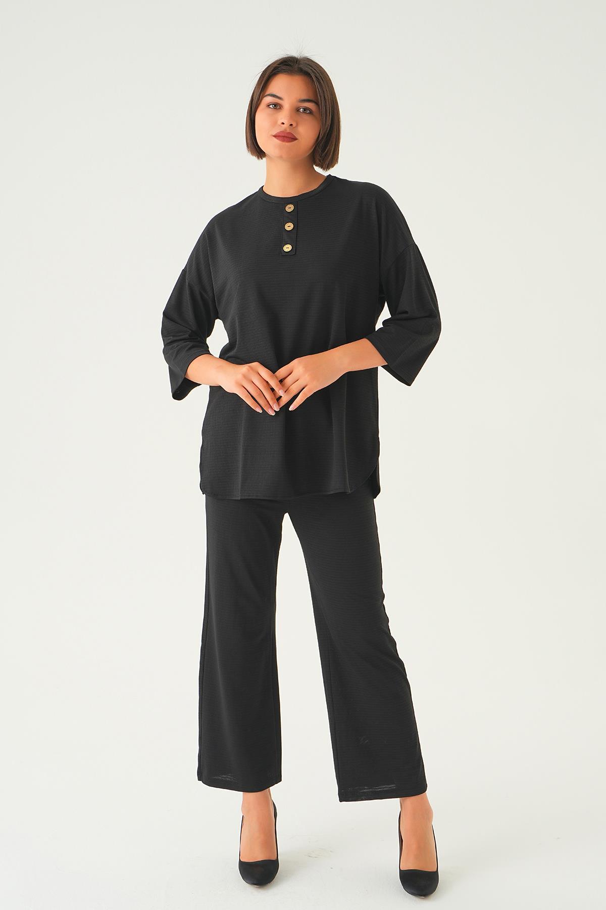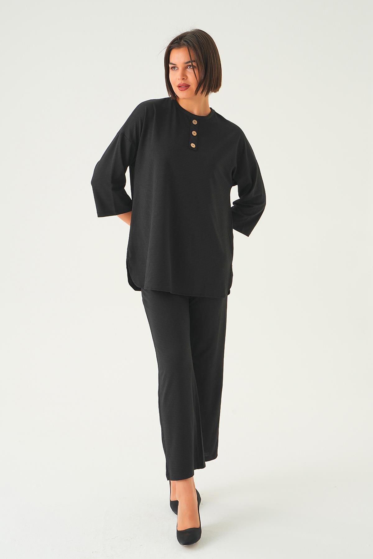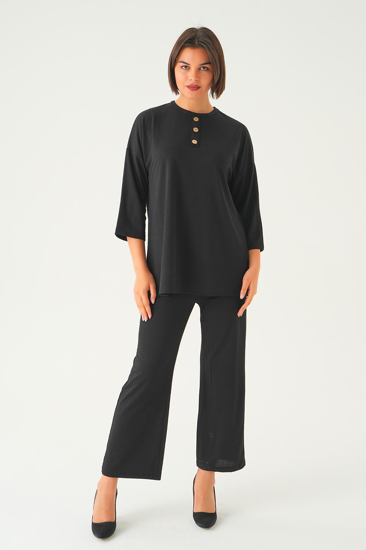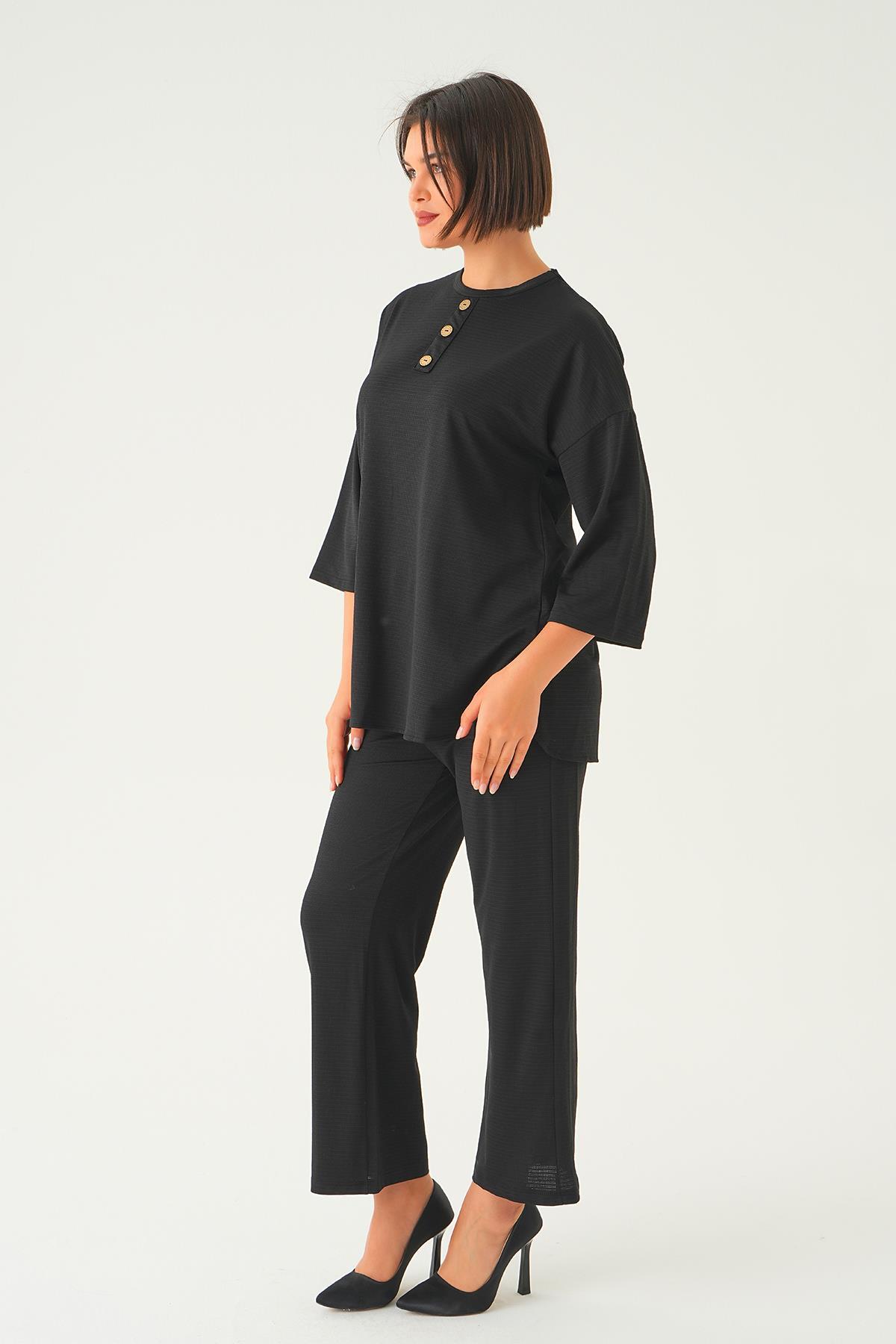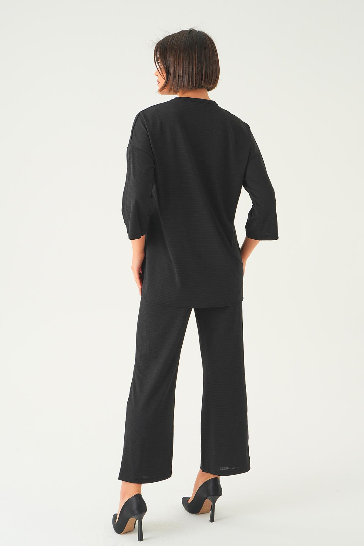 Siyah Bisiklet Yaka Pantolon Takım 9028M