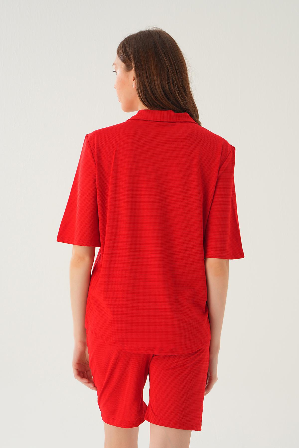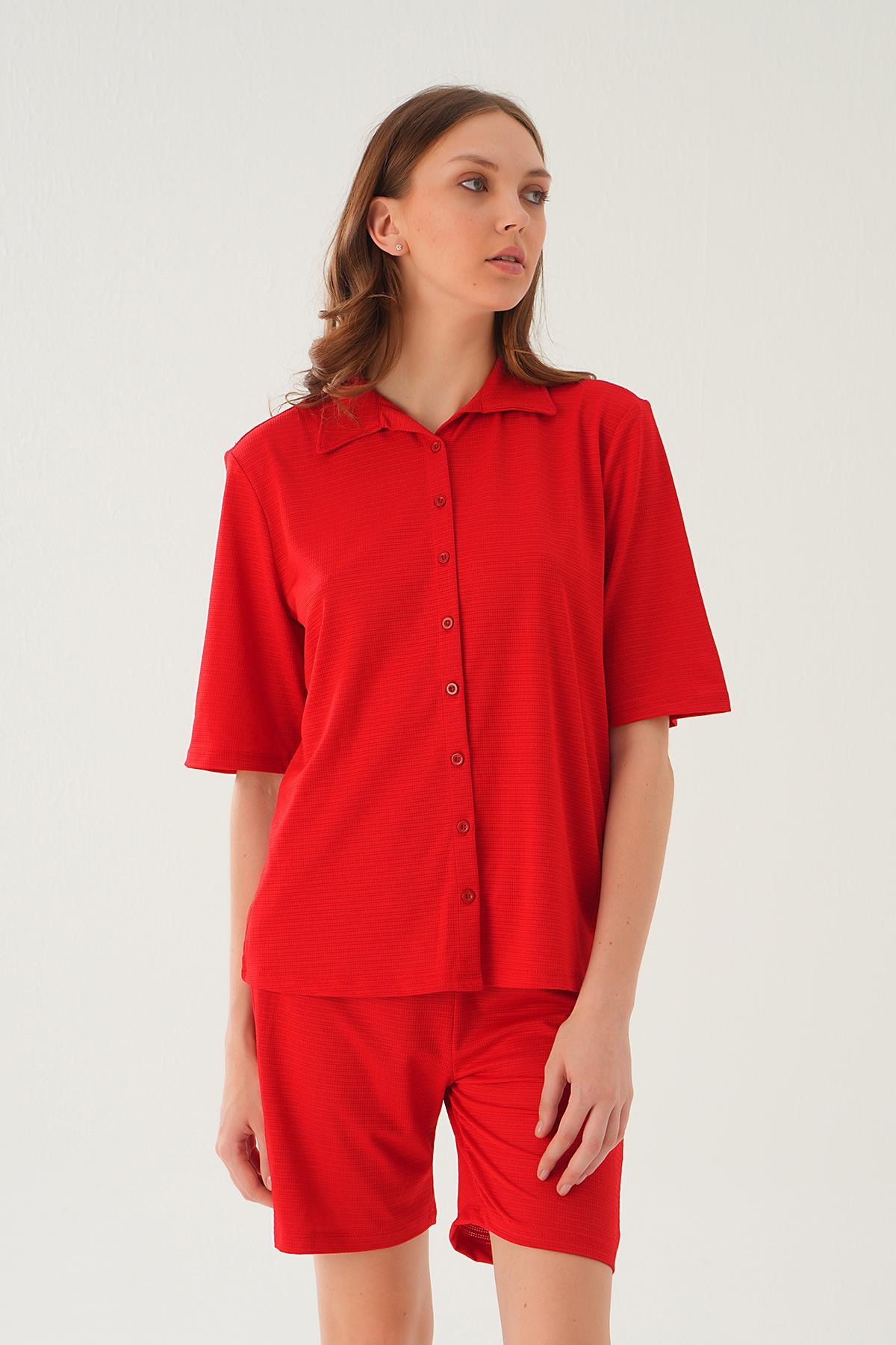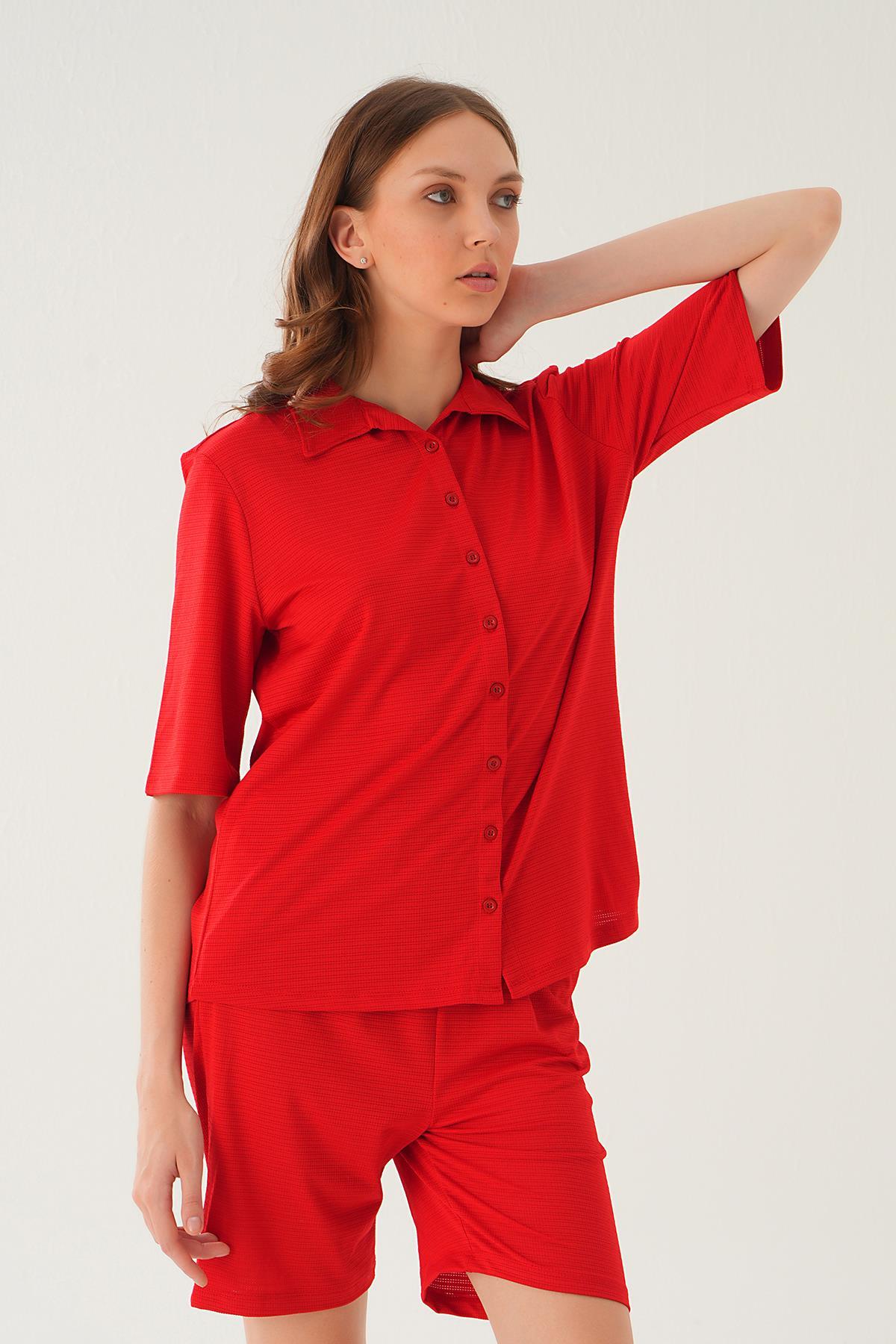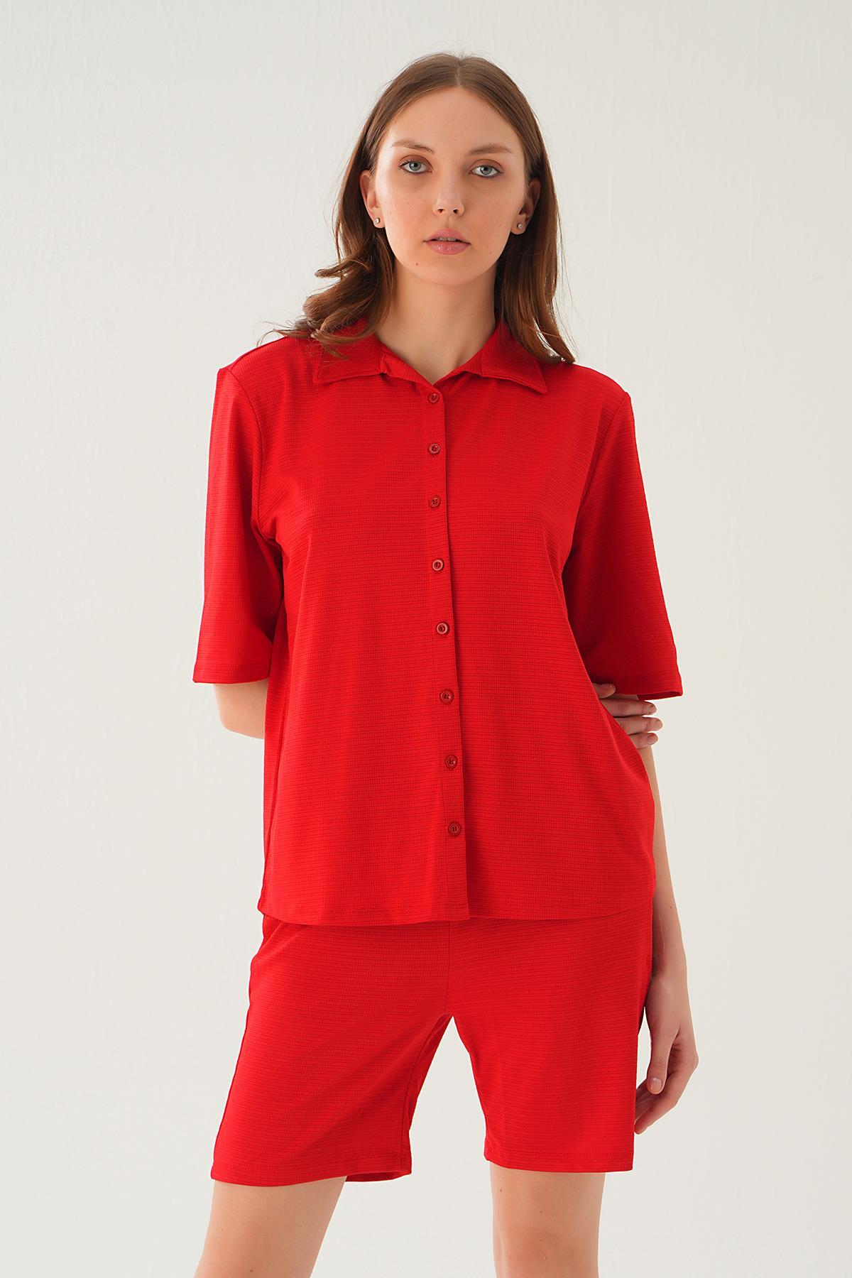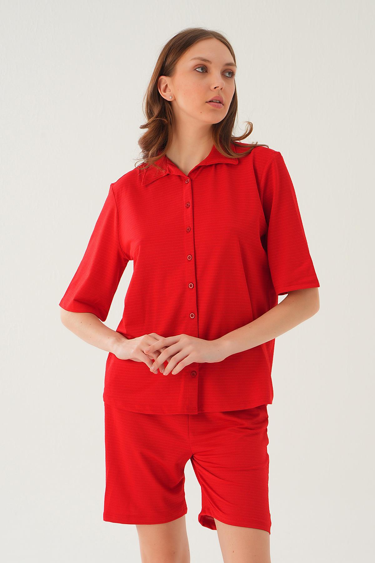 Kırmızı Gömlek Şort Takım 9031M