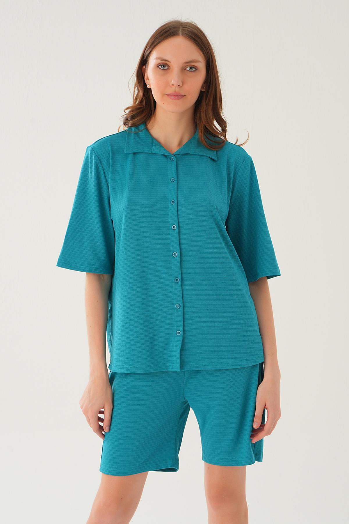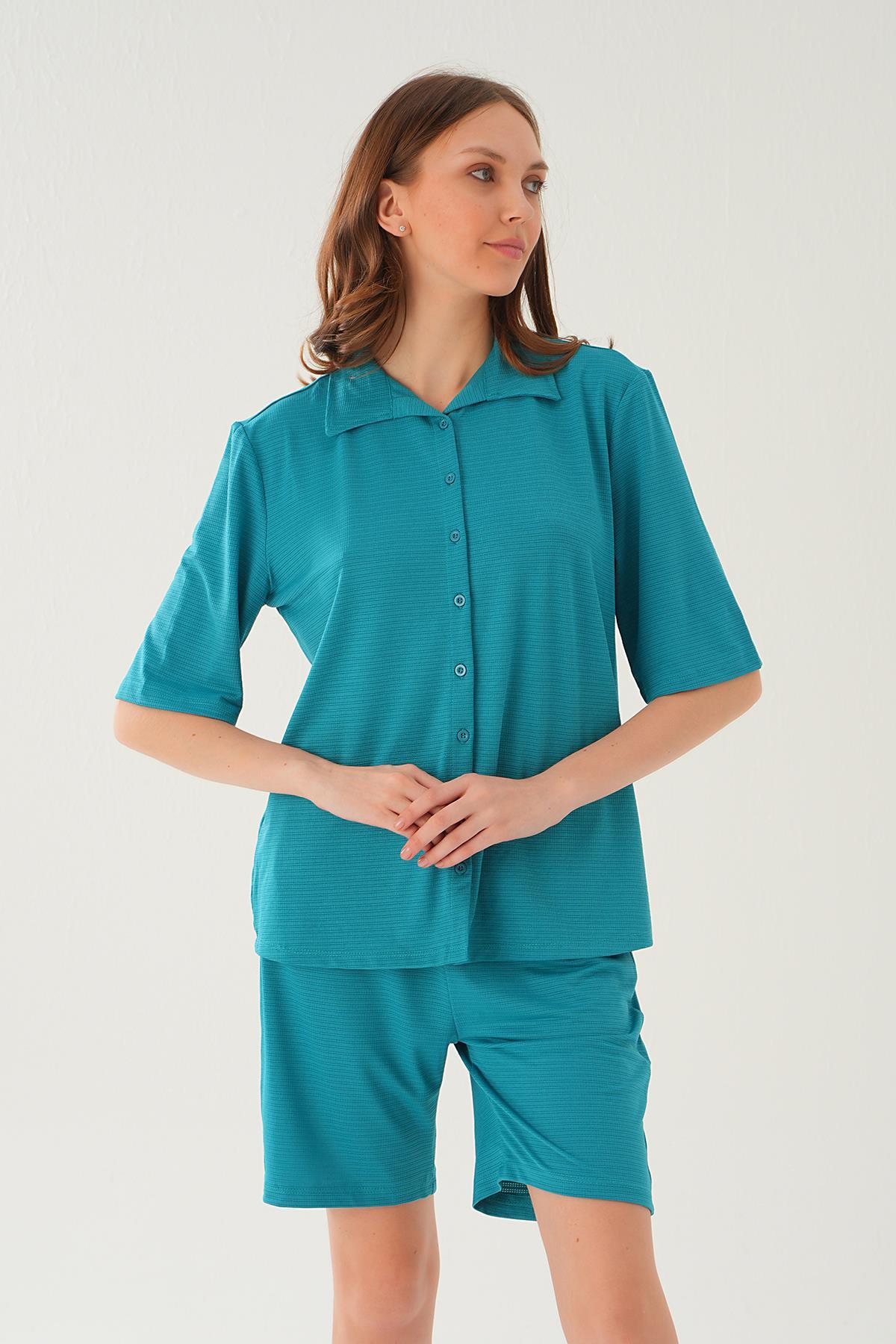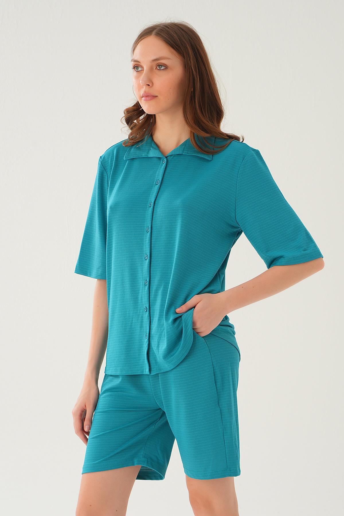Pembe Desenli Düğmeli Kadın Pijama Takımı 3000