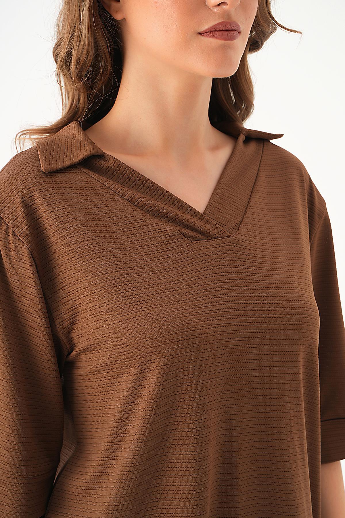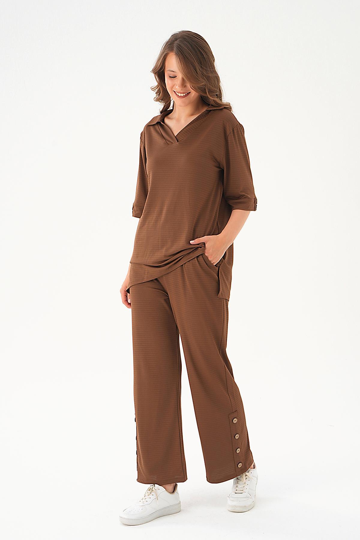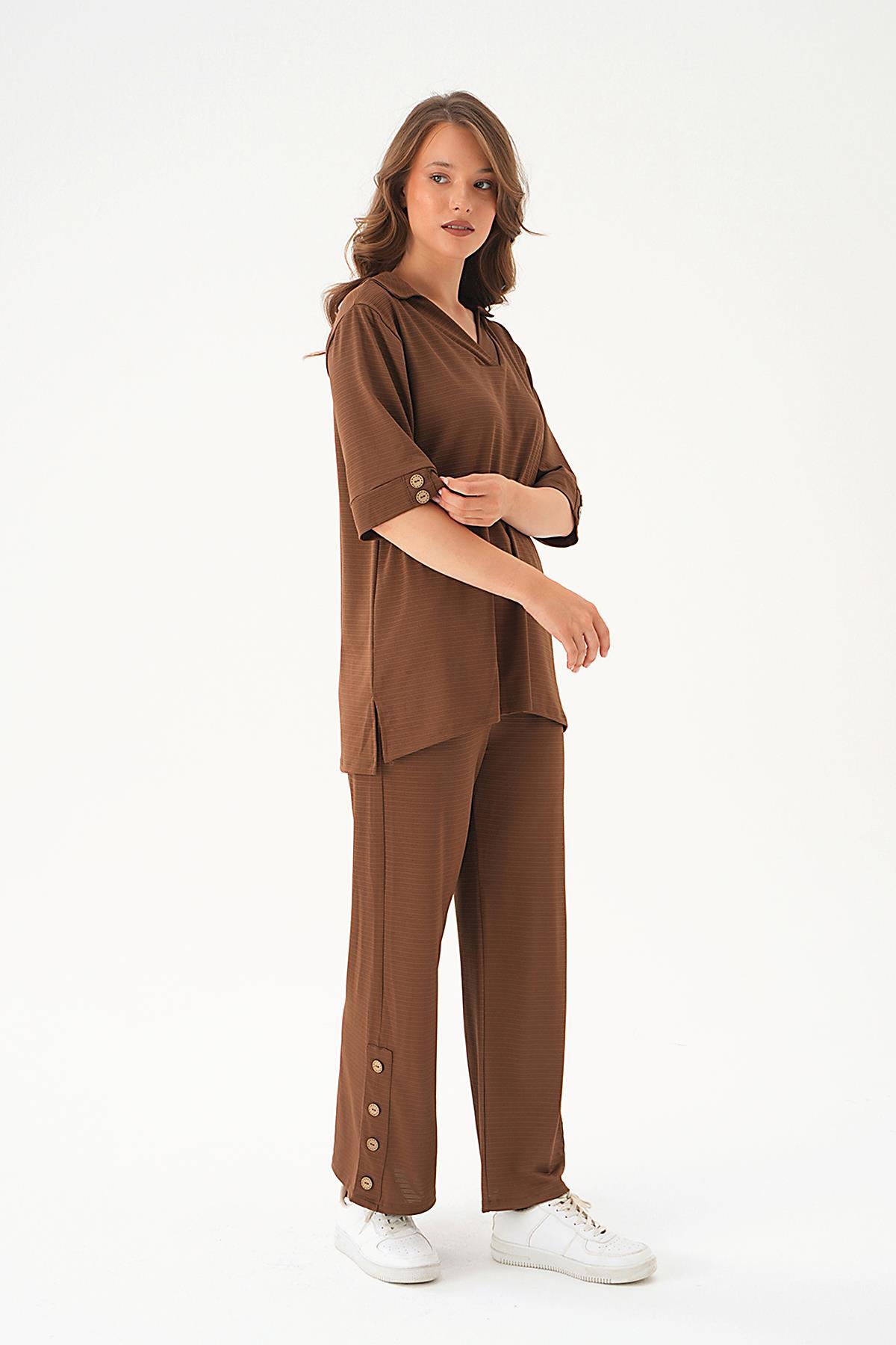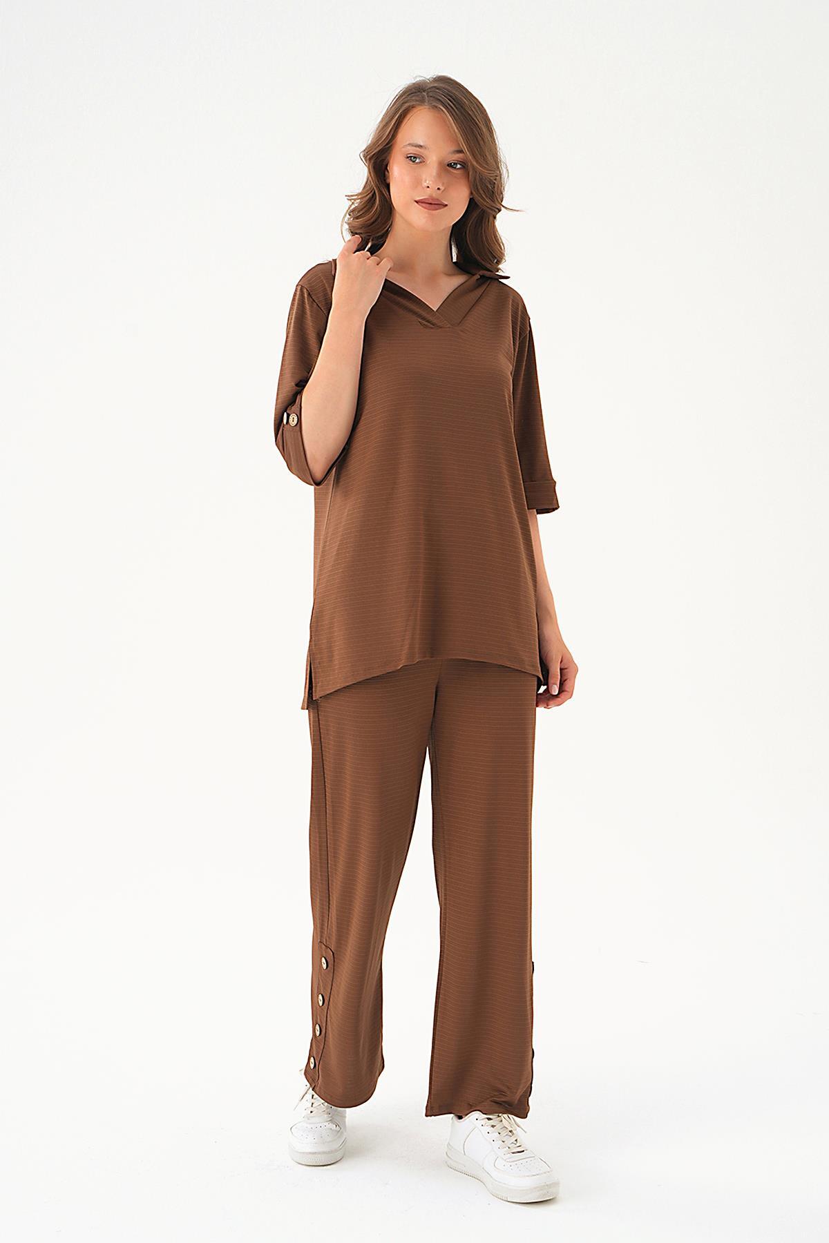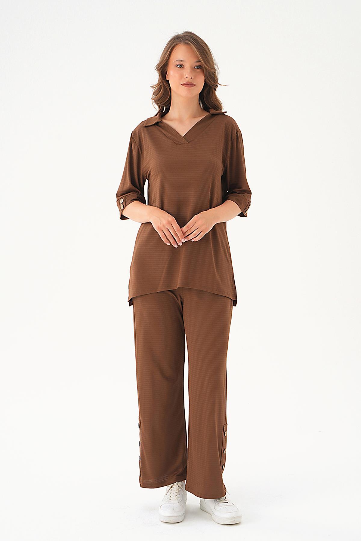 Kahve Gömlek Yaka Düğmeli Pantolon Takım 9032M