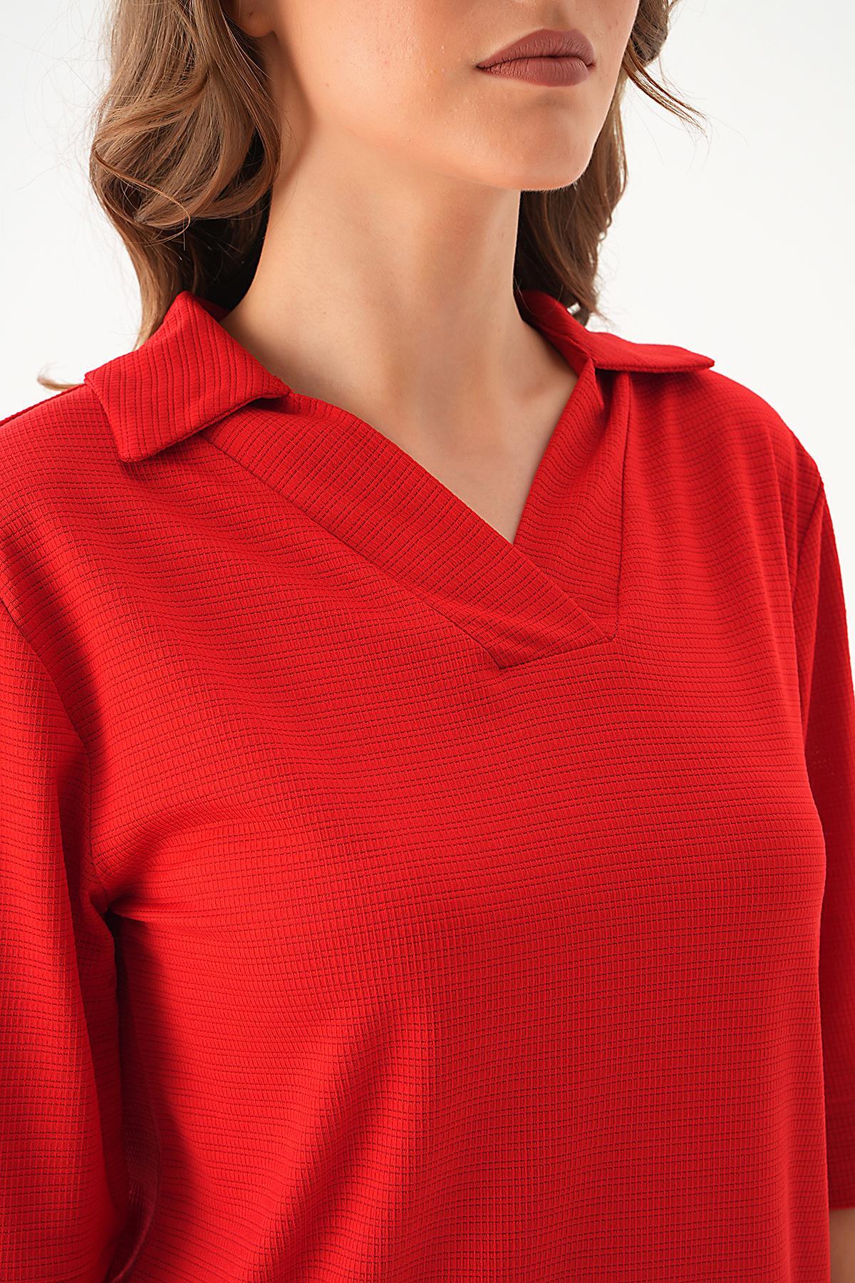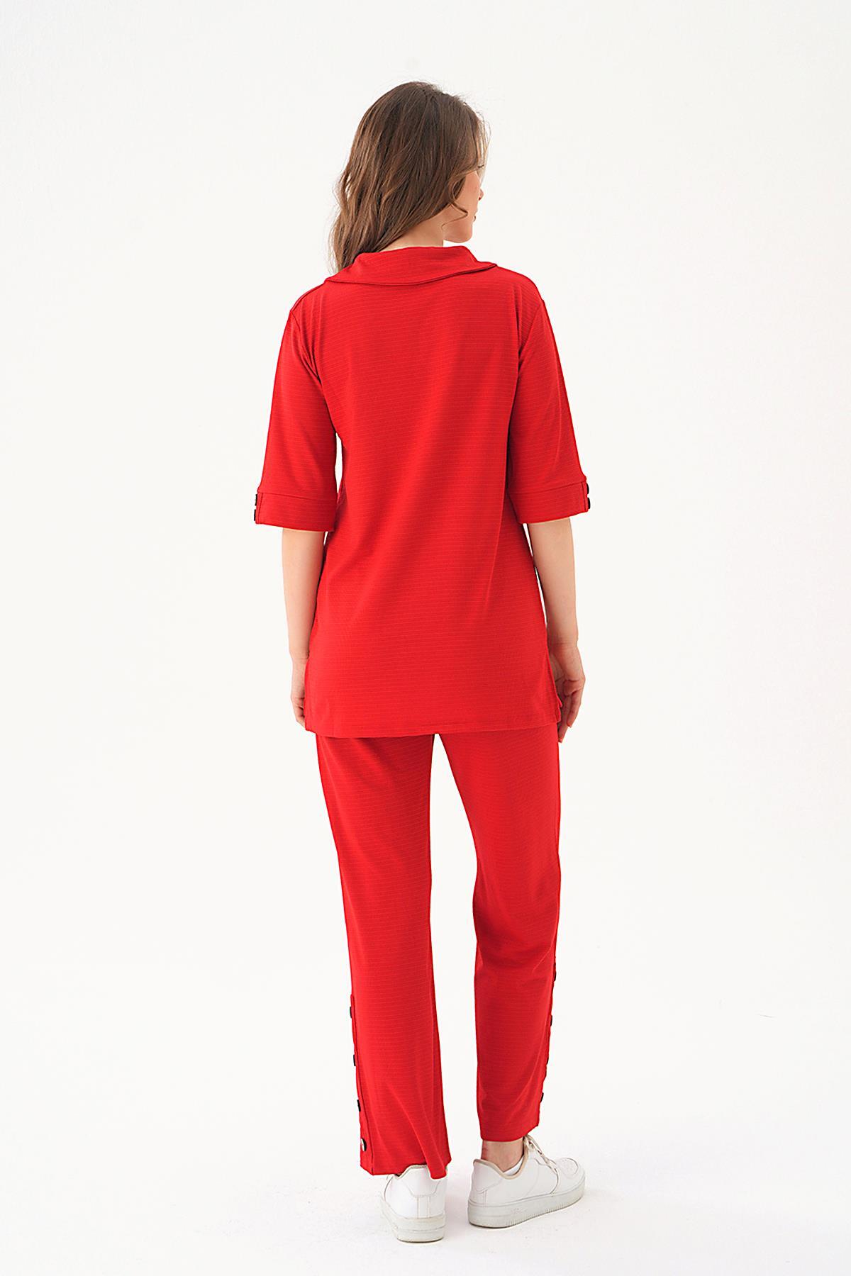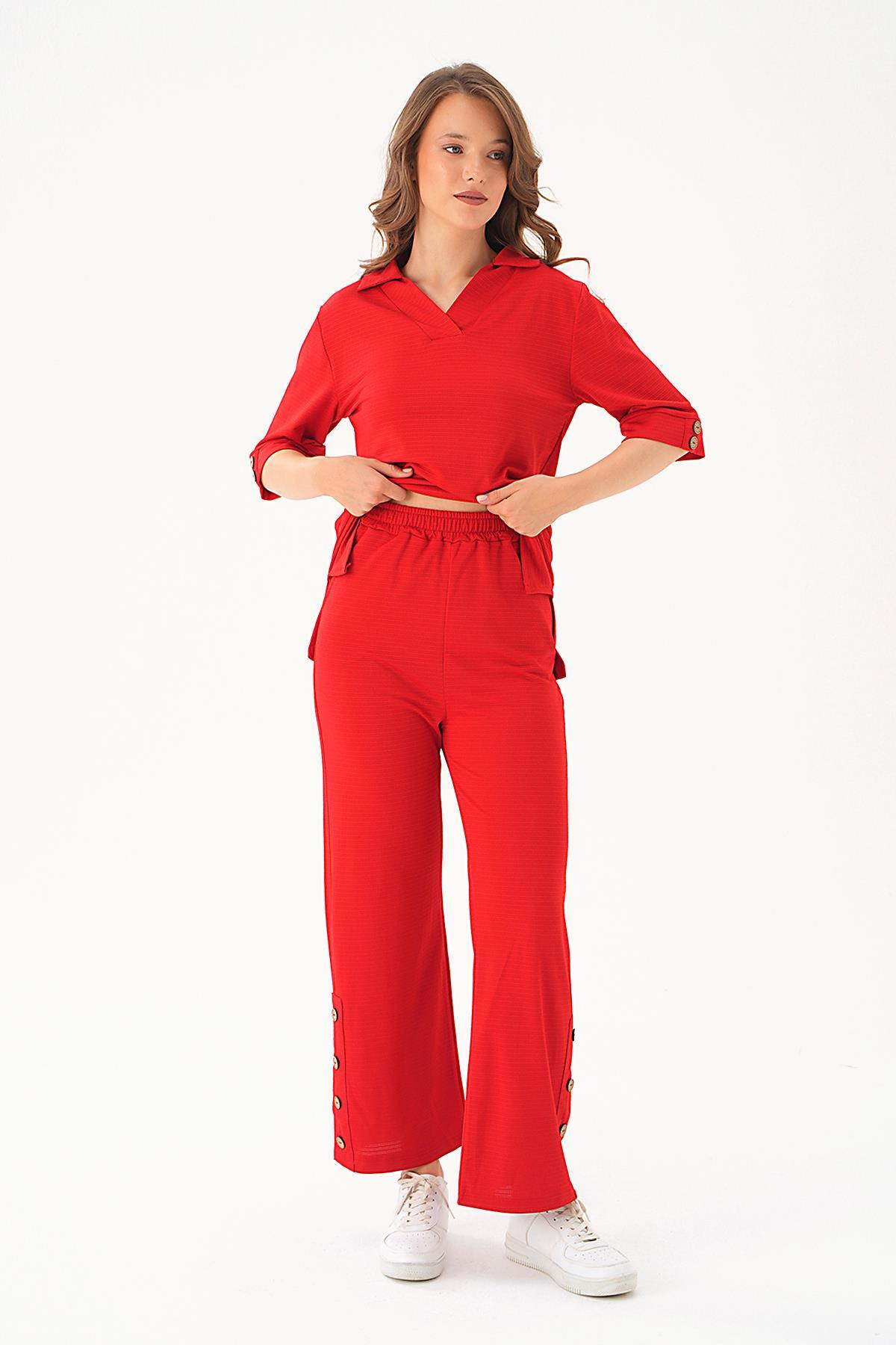 Kırmızı Gömlek Yaka Düğmeli Pantolon Takım 9032M