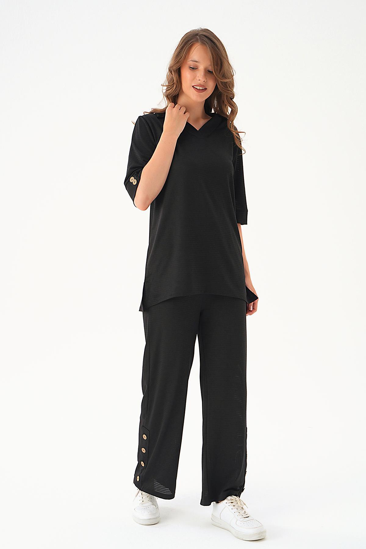 Siyah Bisiklet Yaka Kadın Pantolon Takım 8213A