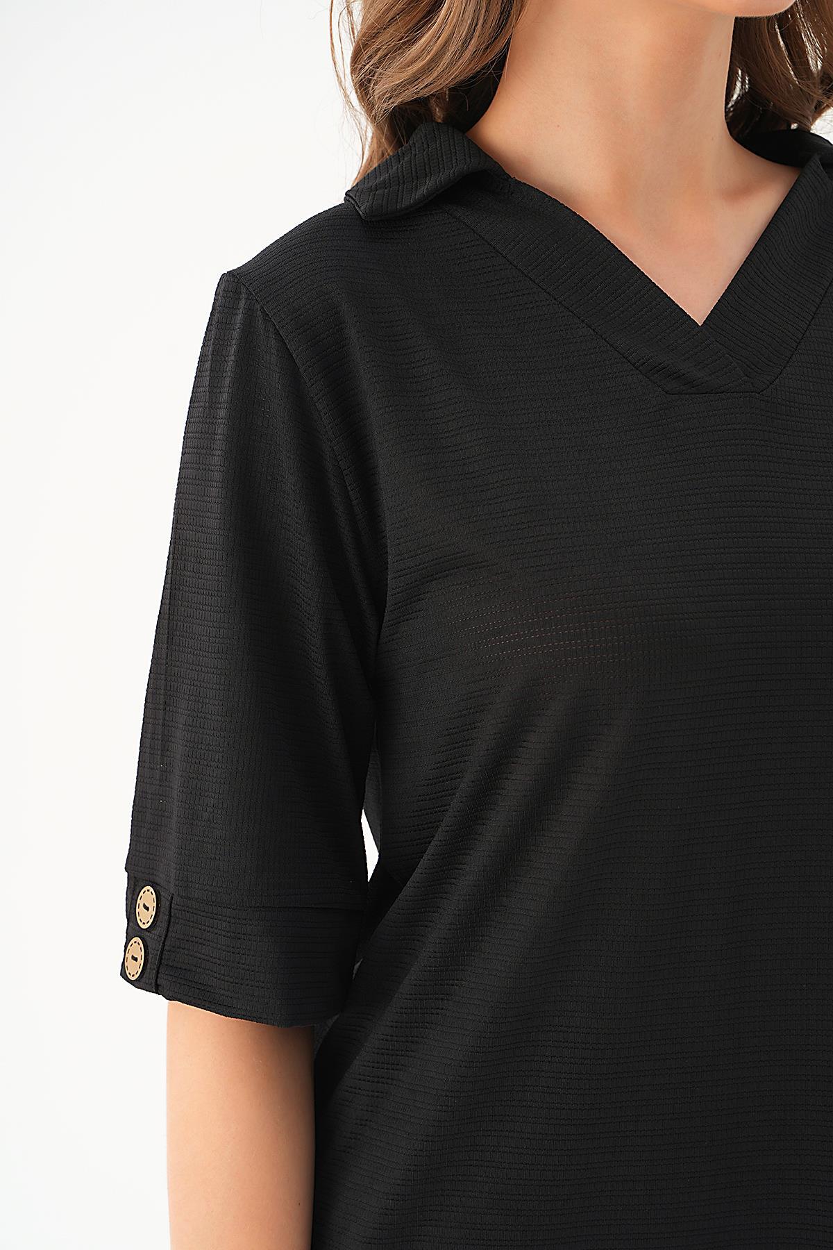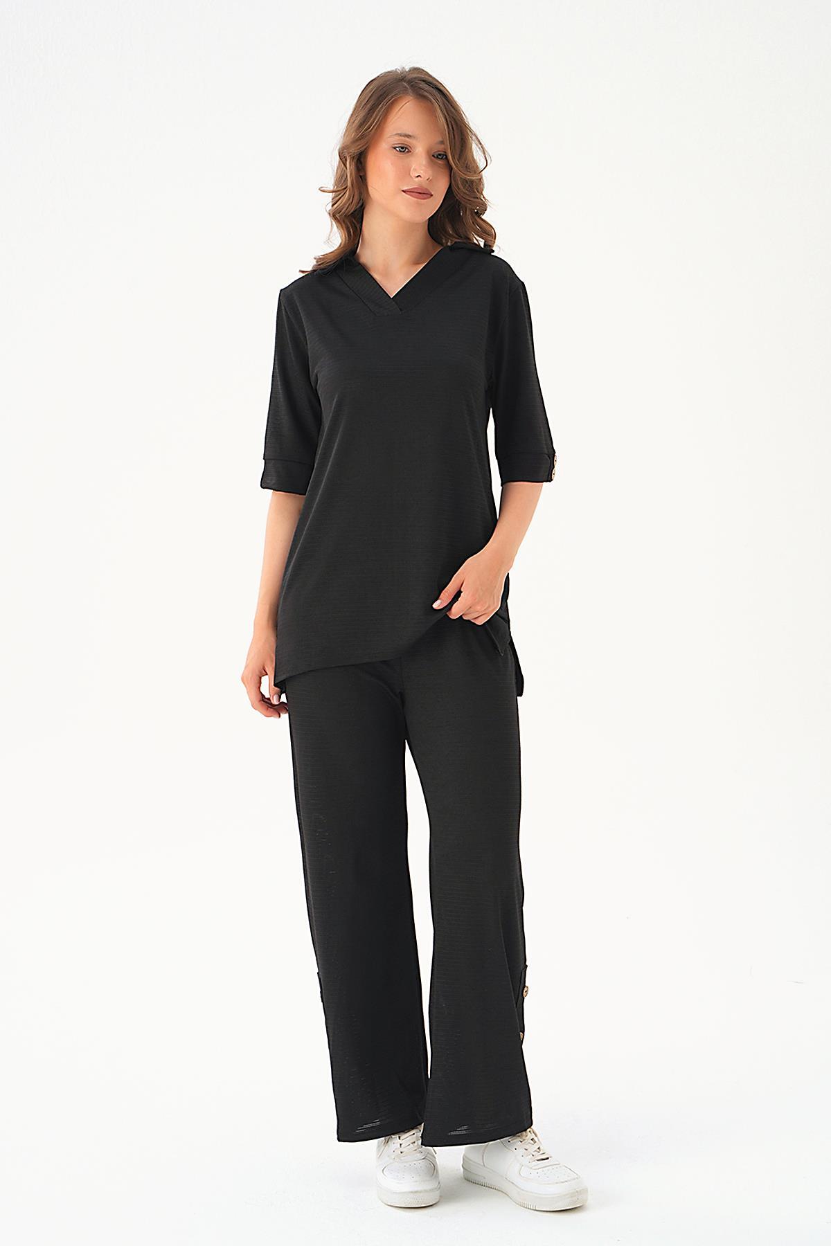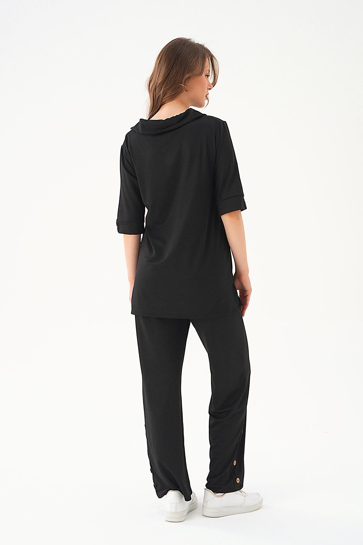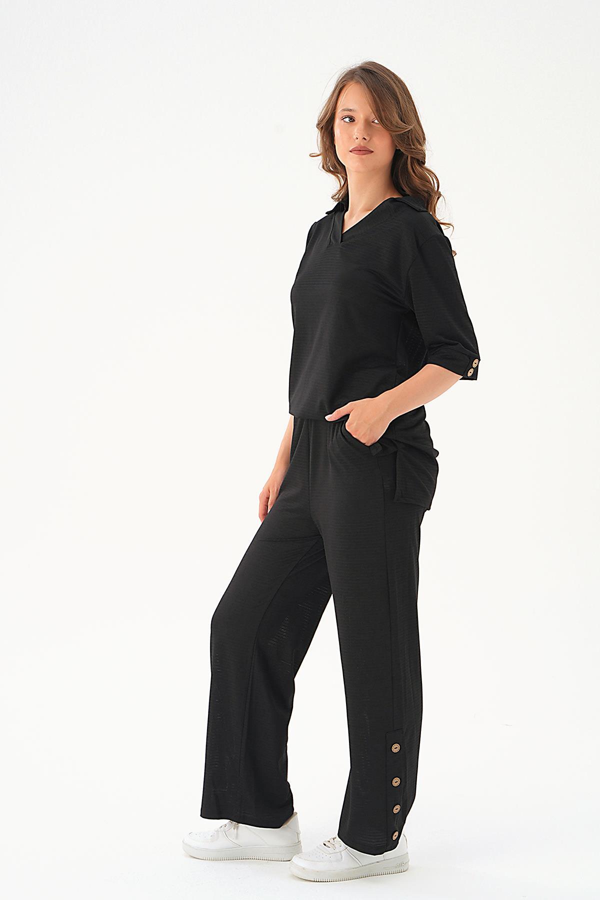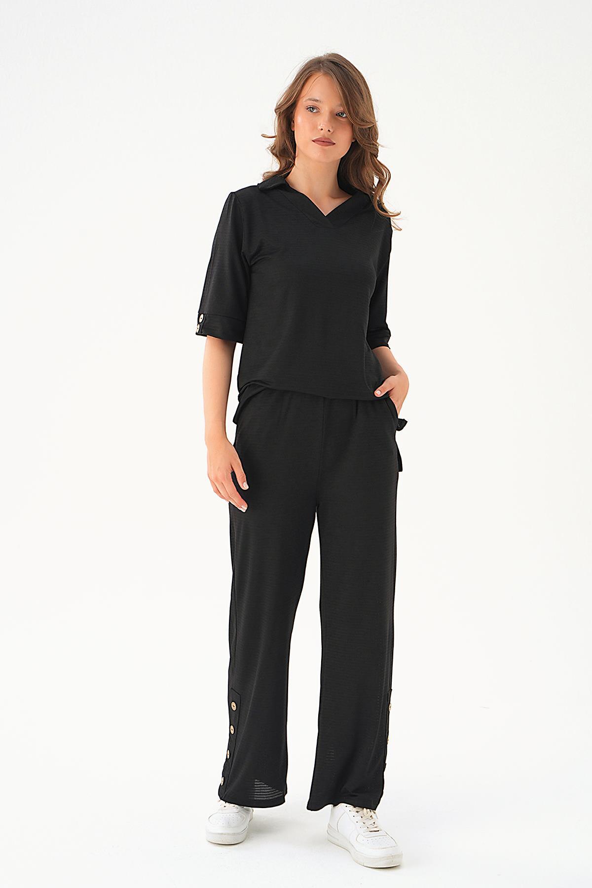 Siyah Gömlek Yaka Düğmeli Pantolon Takım 9032M