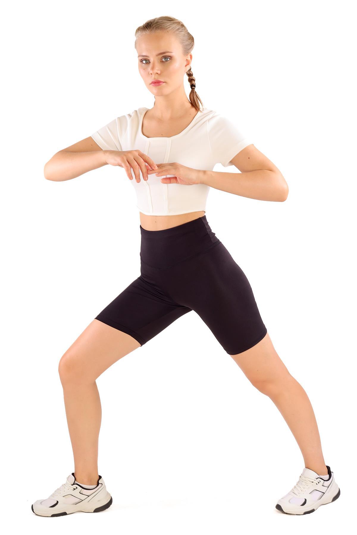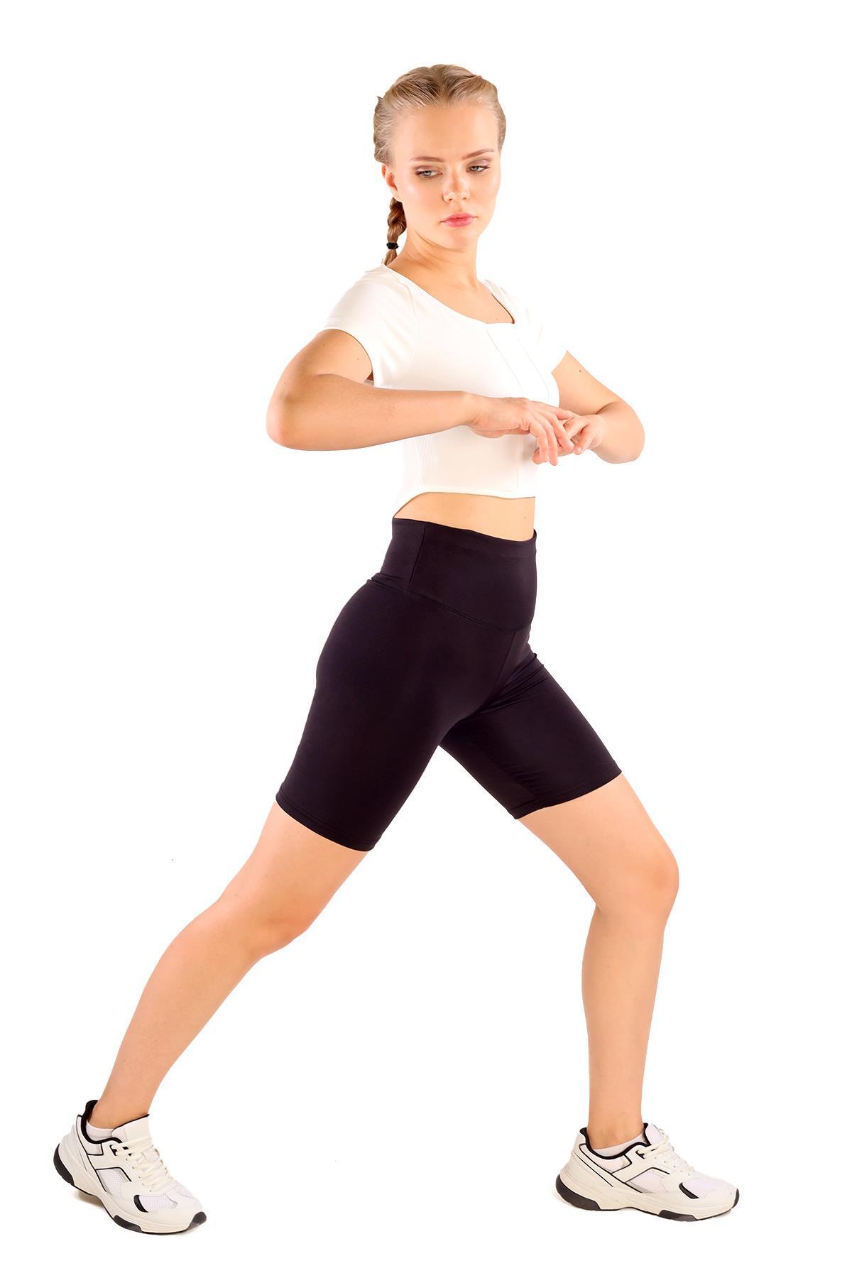 Siyah Yüksek Bel Toparlayıcı Spor Şort Tayt 9038M