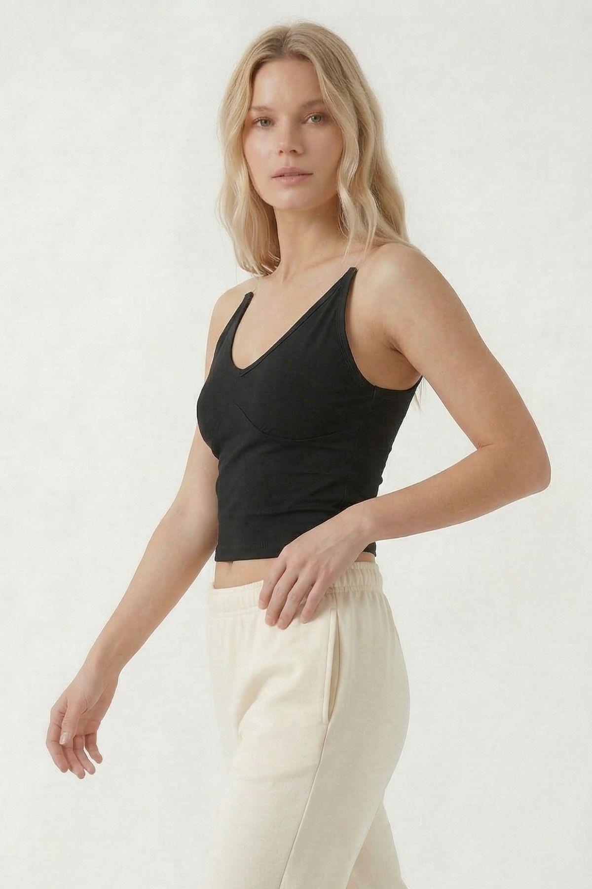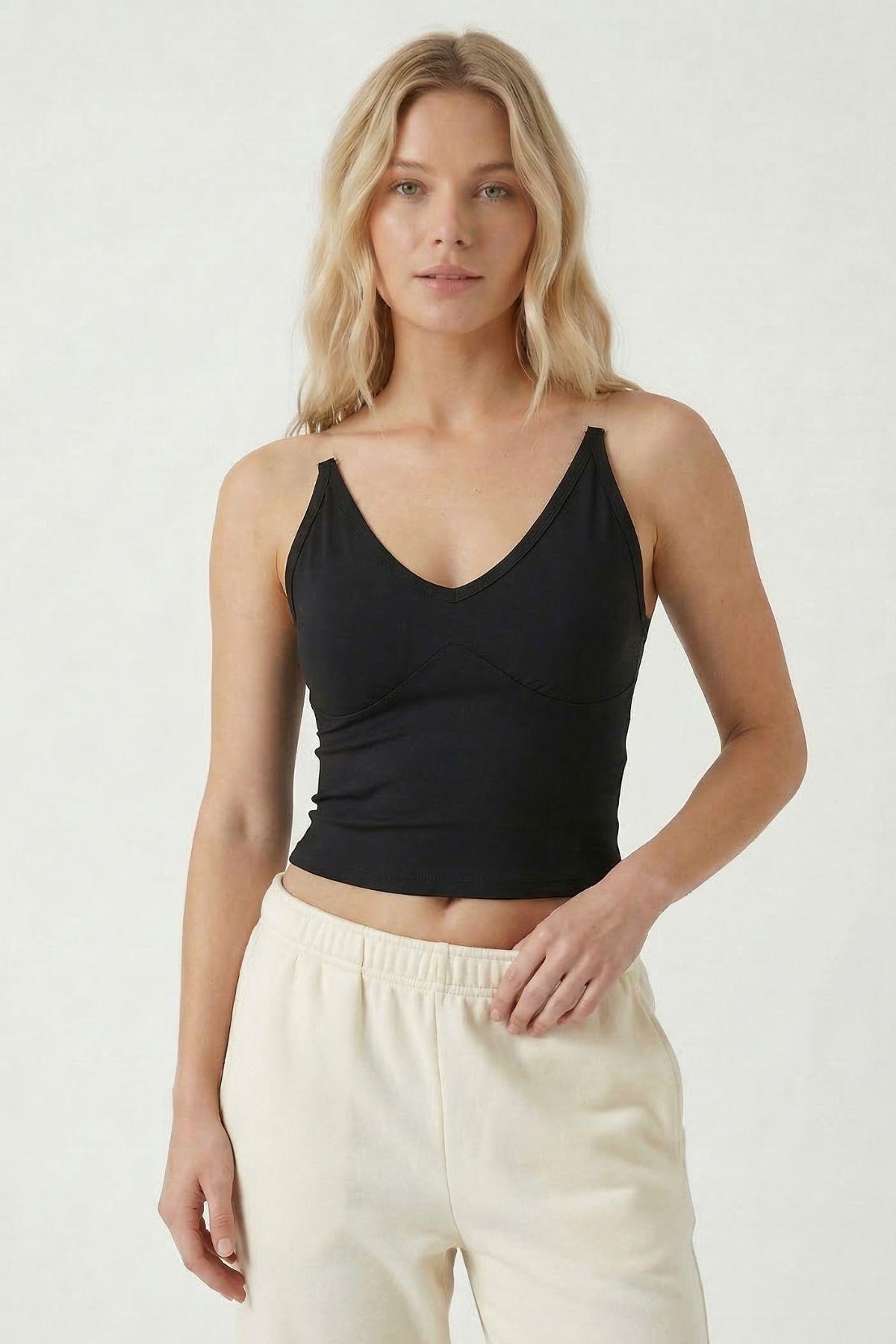 9053 Hayalet Askılı Bluz Siyah