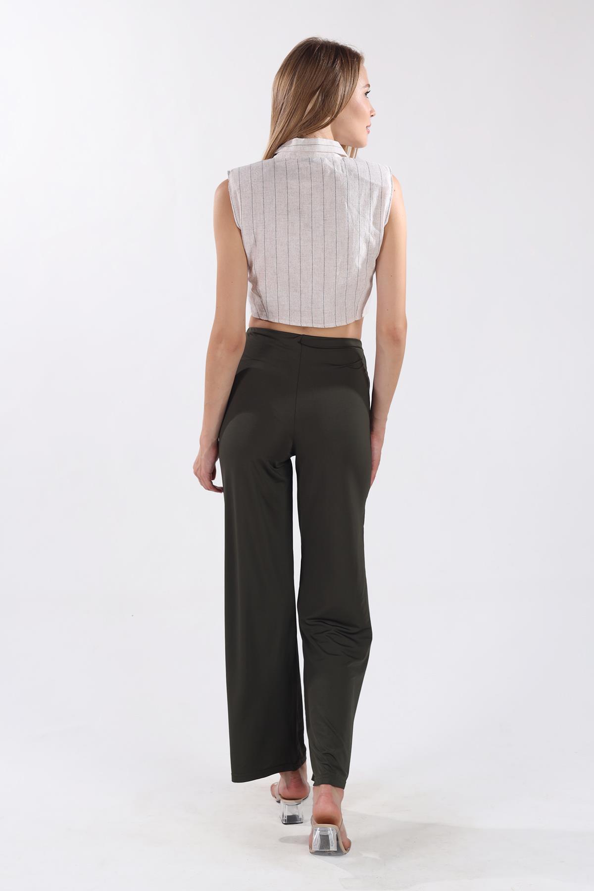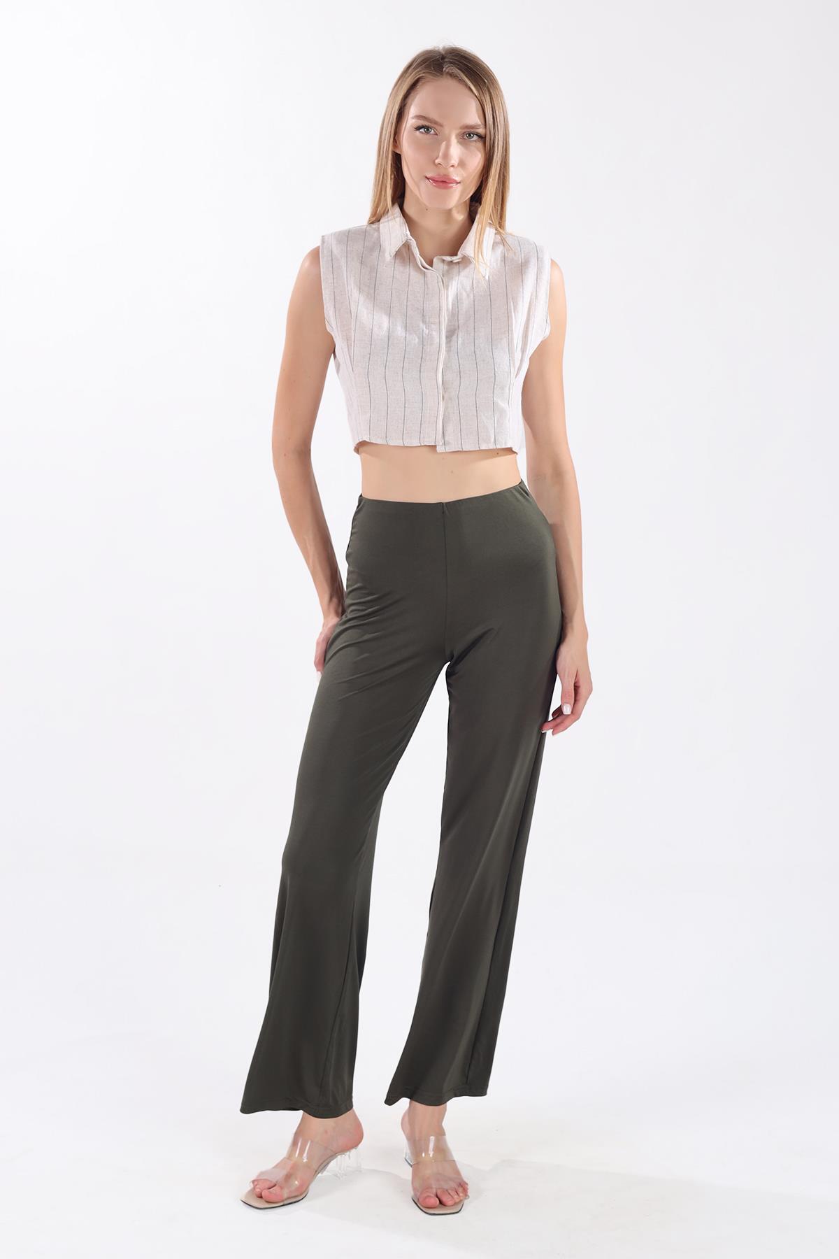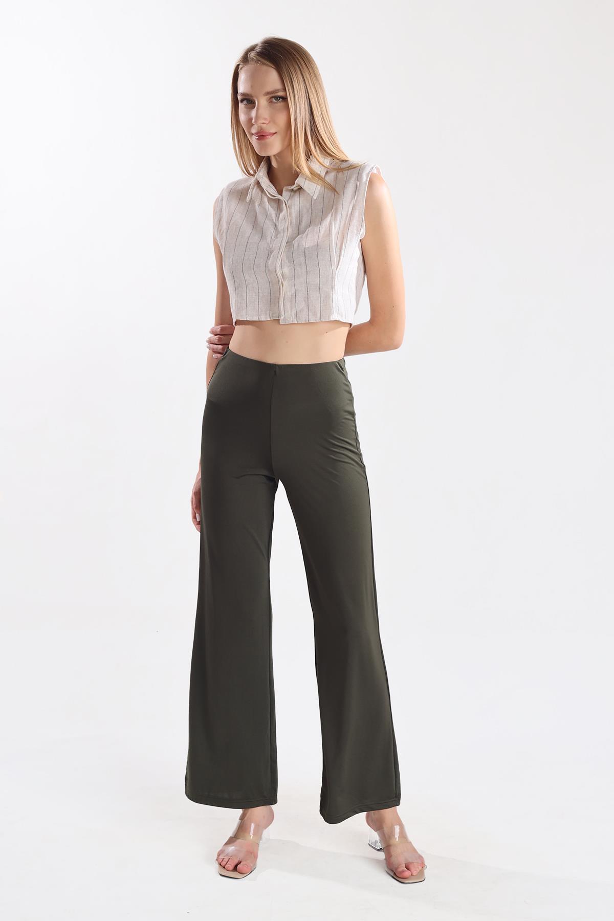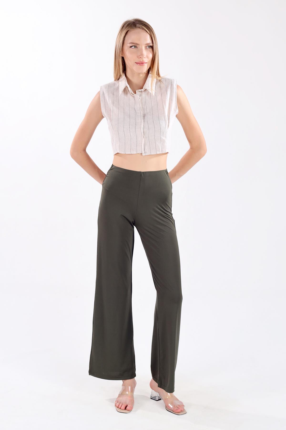 Haki Bel Lastikli Bol Paça Pantolon 9138M