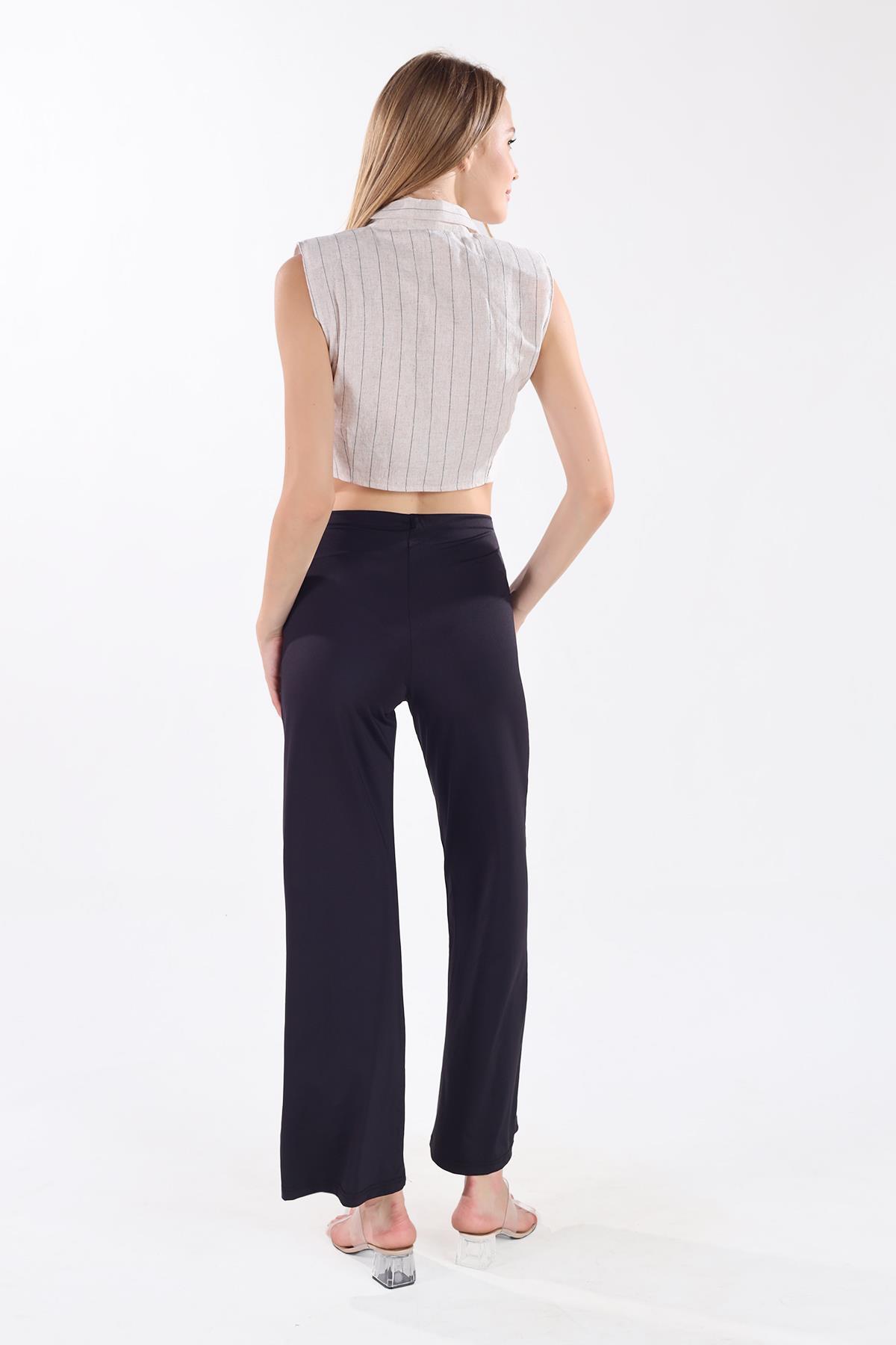 9138M Bel Lastikli Bol Paça Pantolon Siyah