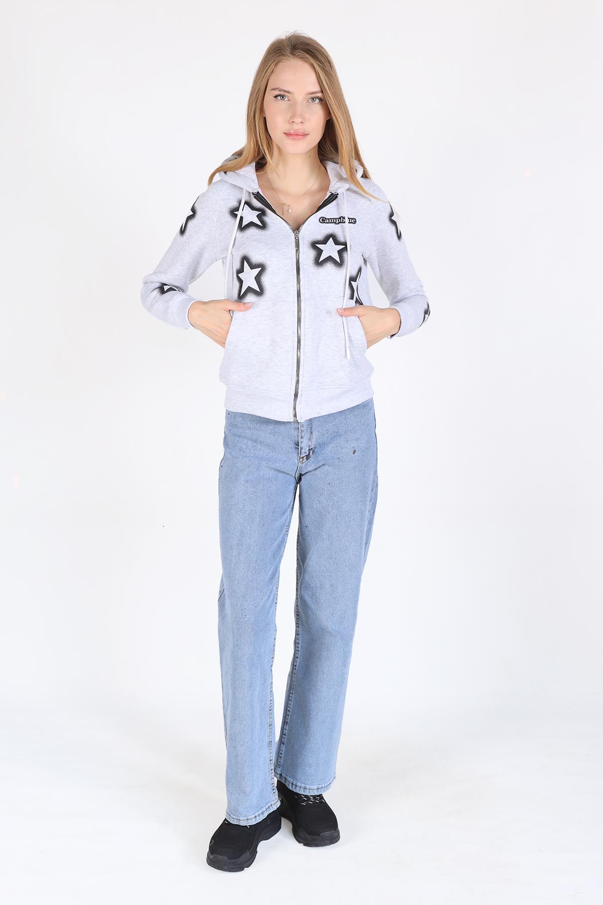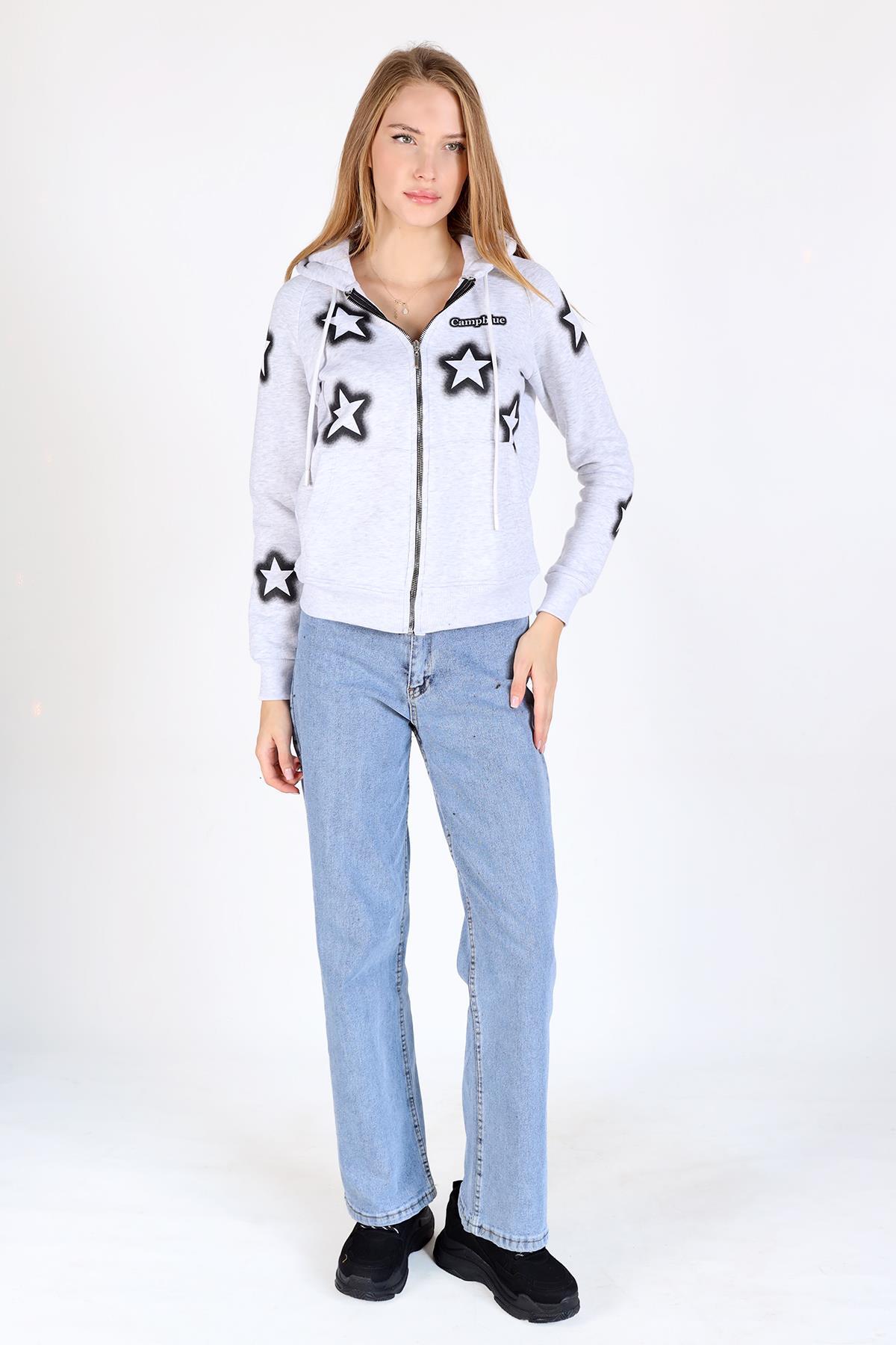 Karmelanj Yıldız Baskı Fermuarlı Sweat 9139M