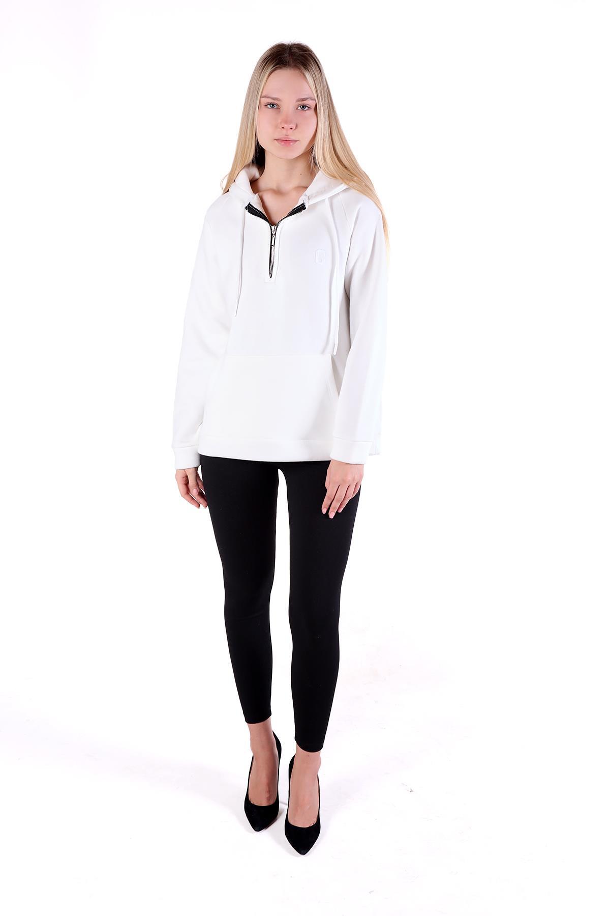 Ekru Yarım Fermuar Detay Cepli Sweat 9140M