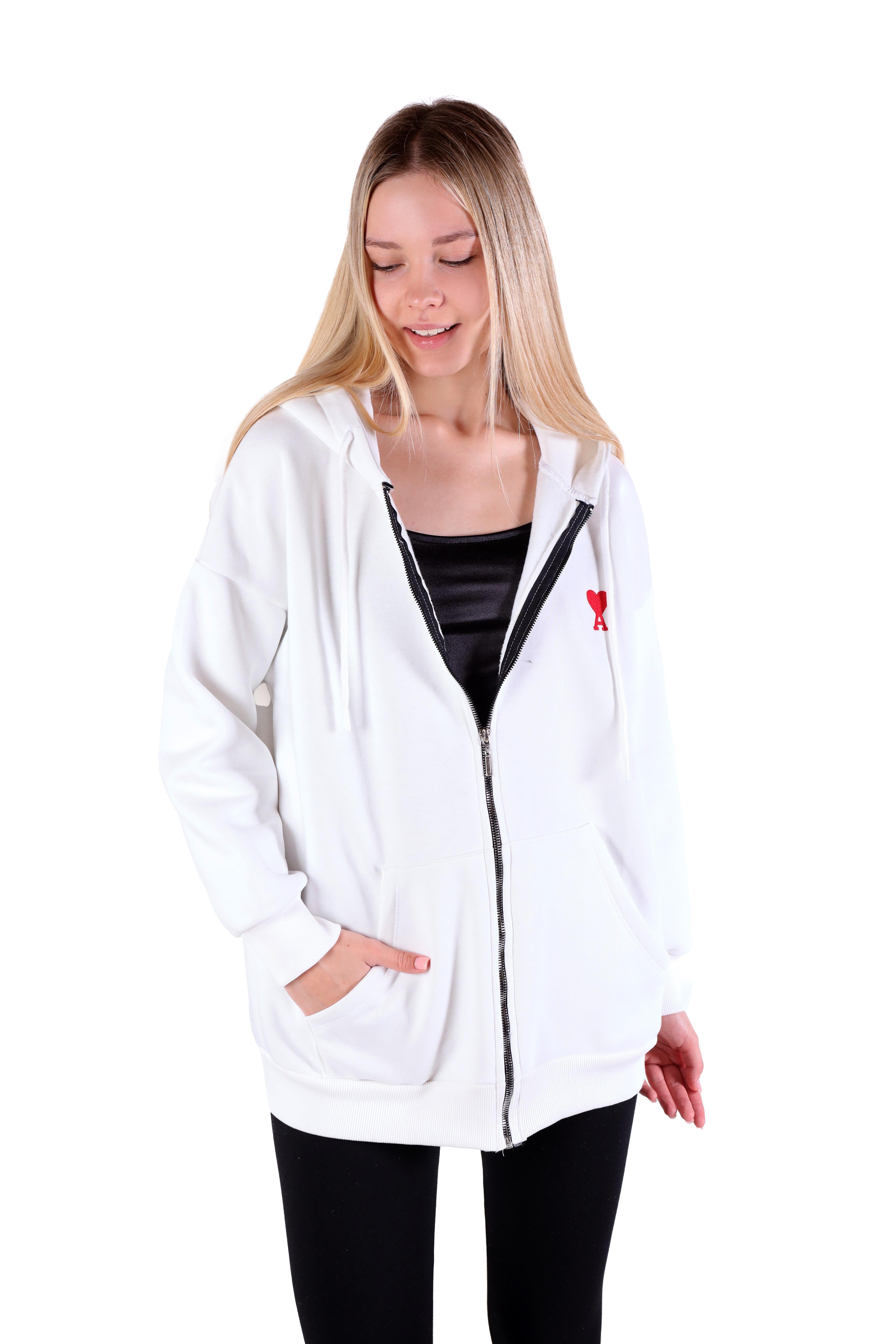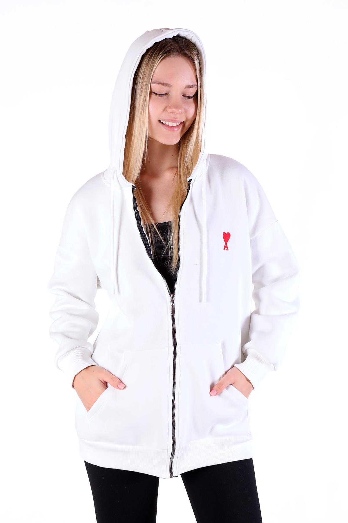 Ekru Kalp Nakış Detay Fermuarlı Sweat 9142M